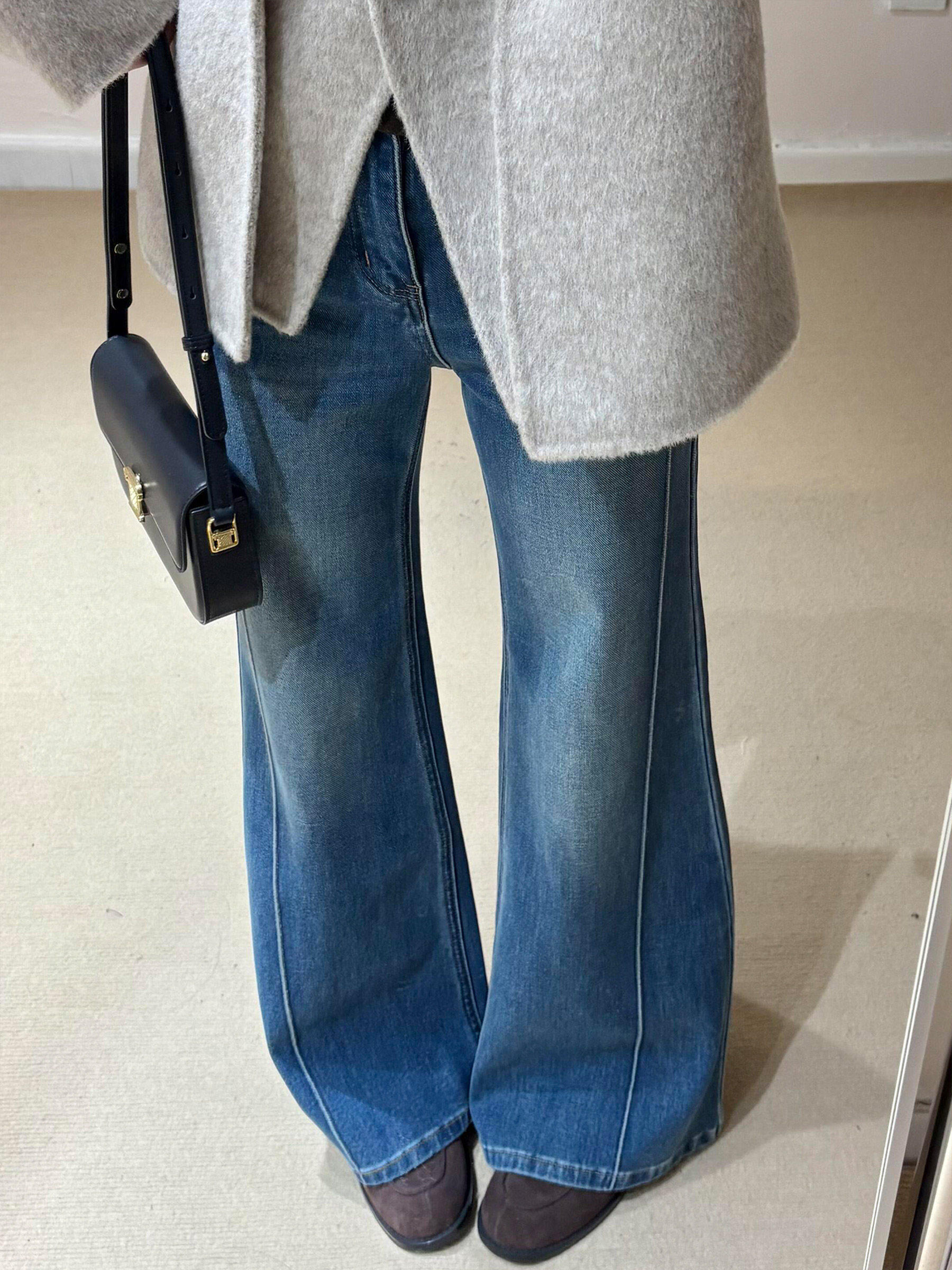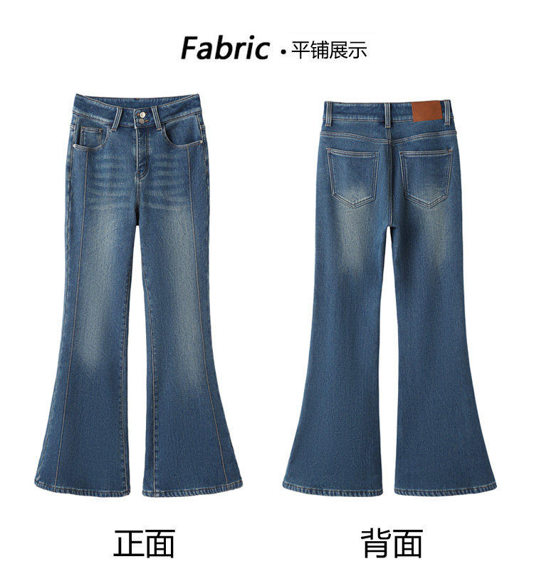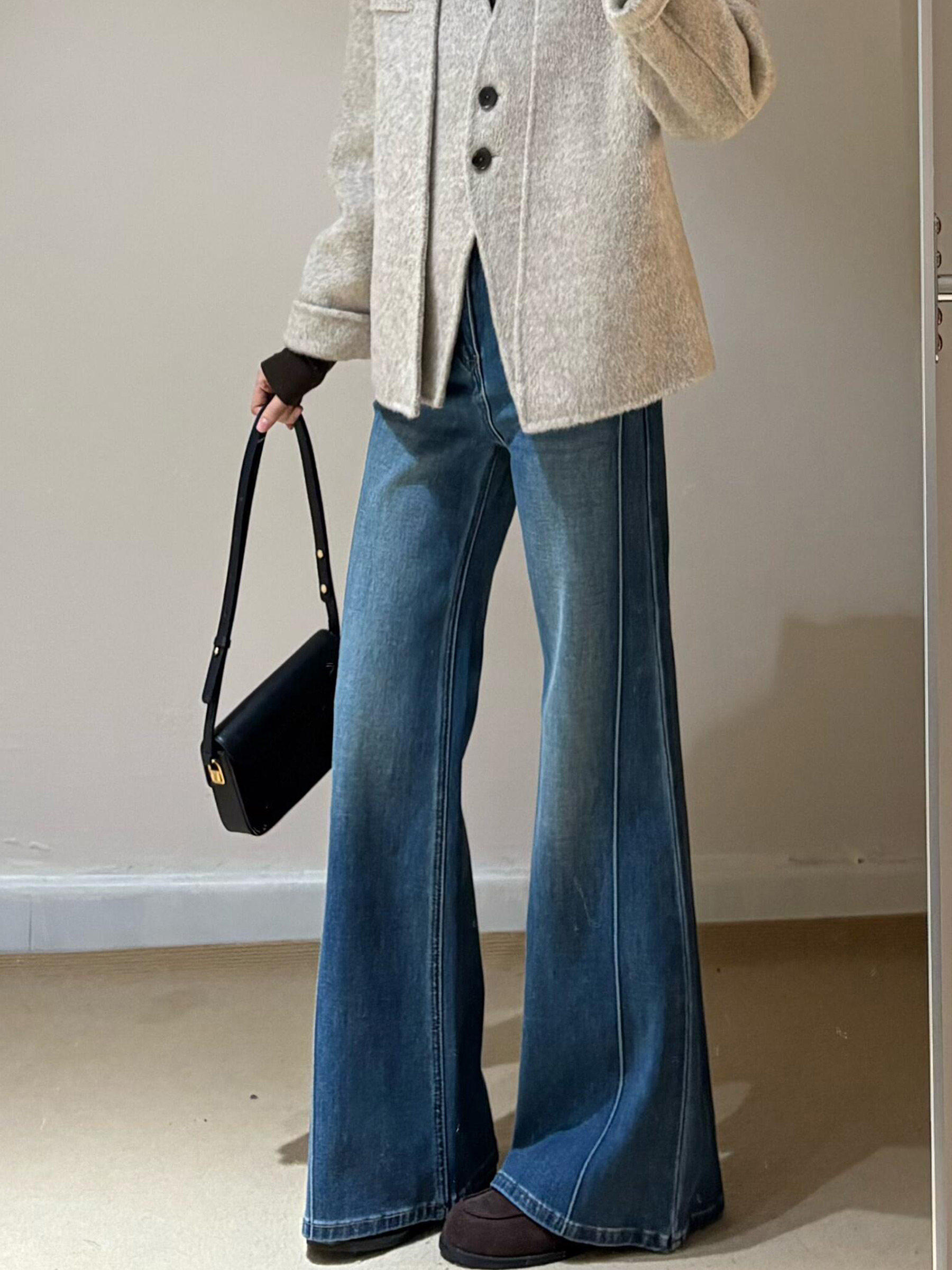 La Chapelle American retro bootcut jeans for women in winter, plus velvet and thickening, loose and non-leg-fitting, horseshoe flared pants