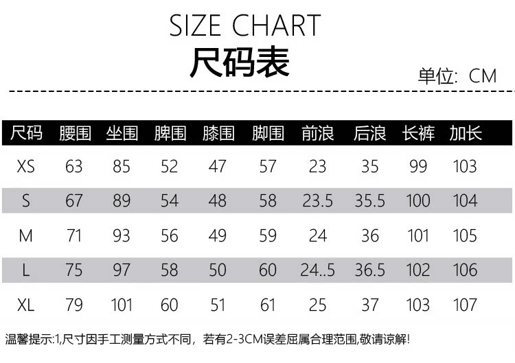 Outseam (cm) 99 cm 101.5 cm 104 cm 106.5 cm 109 cm