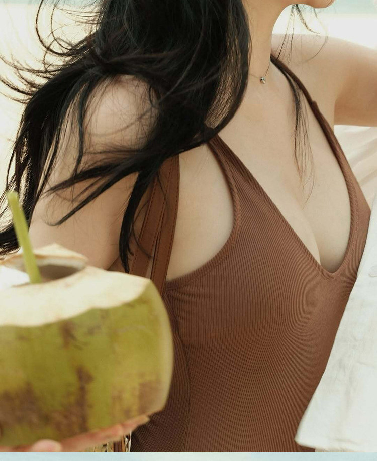 Sexy Deep V-Neck One-Piece Swimsuit for Women, Pure Desire Style, Sleeveless, Slim-Fitting, Flattering, Beach Vacation Style Swimwear