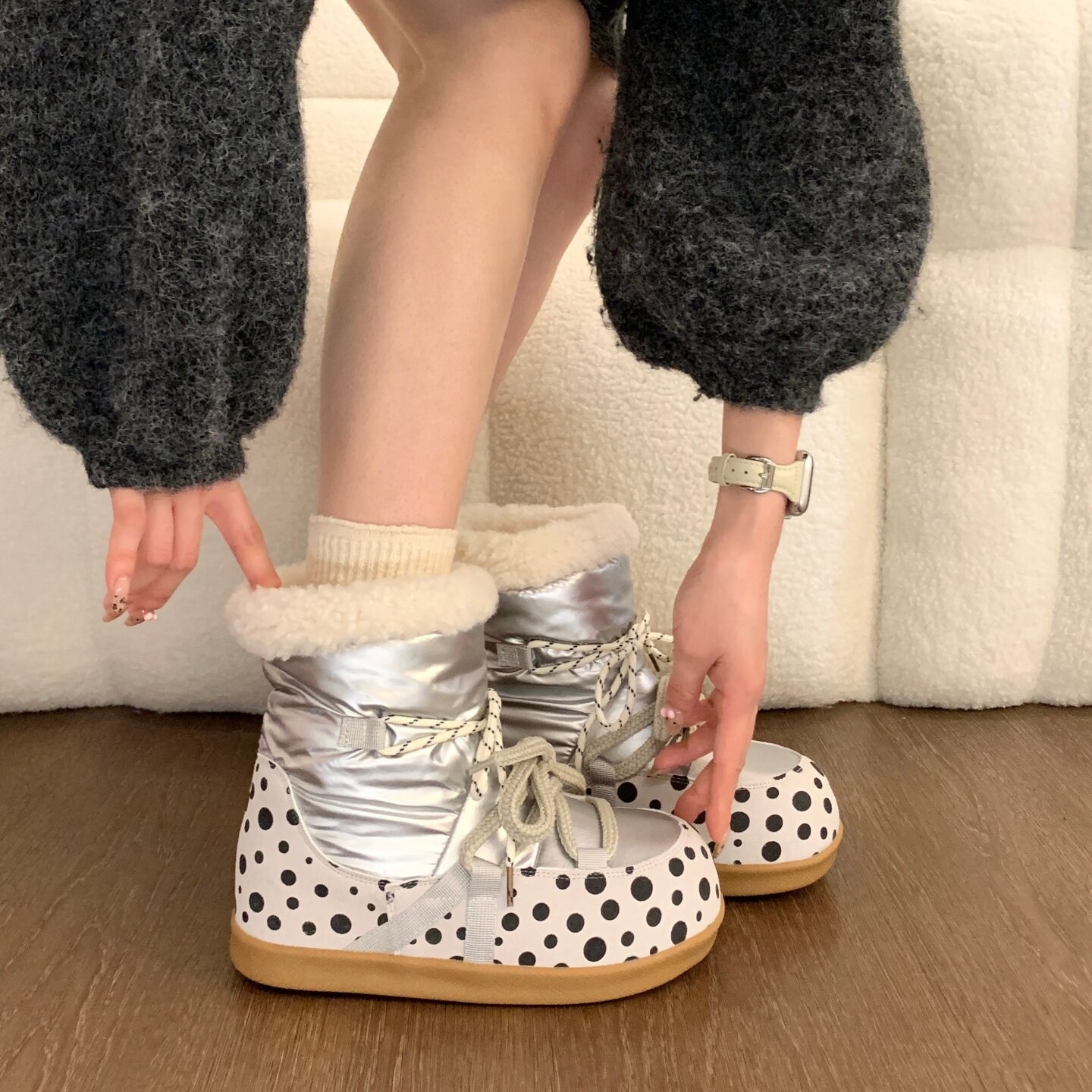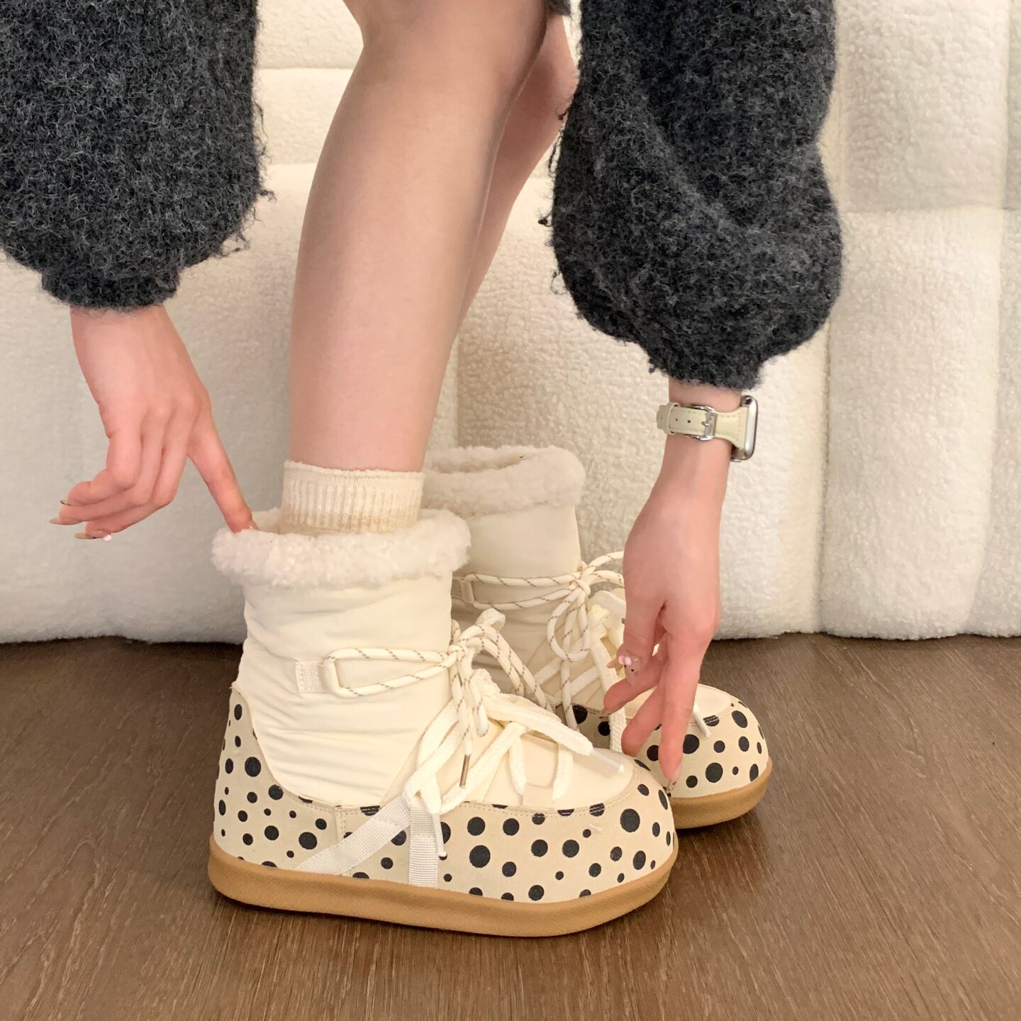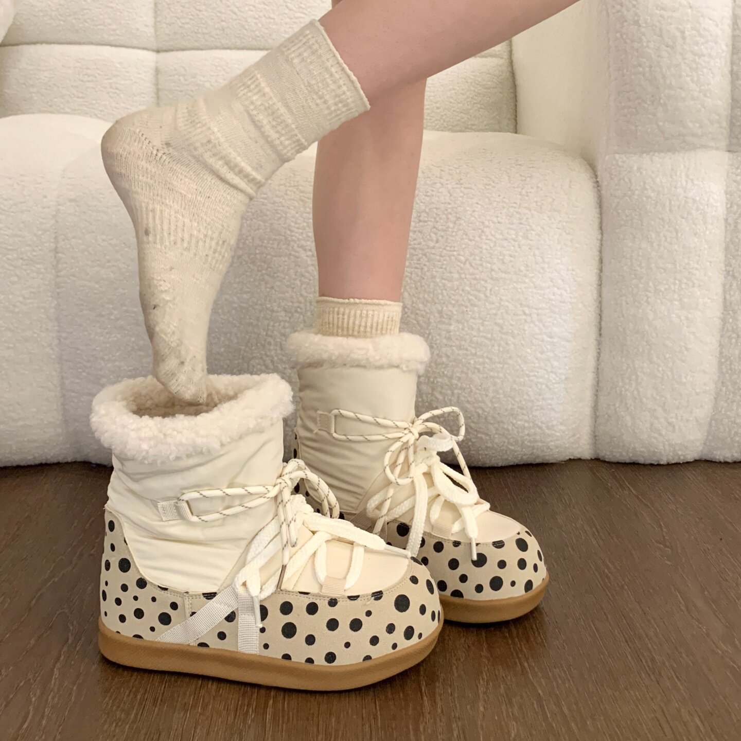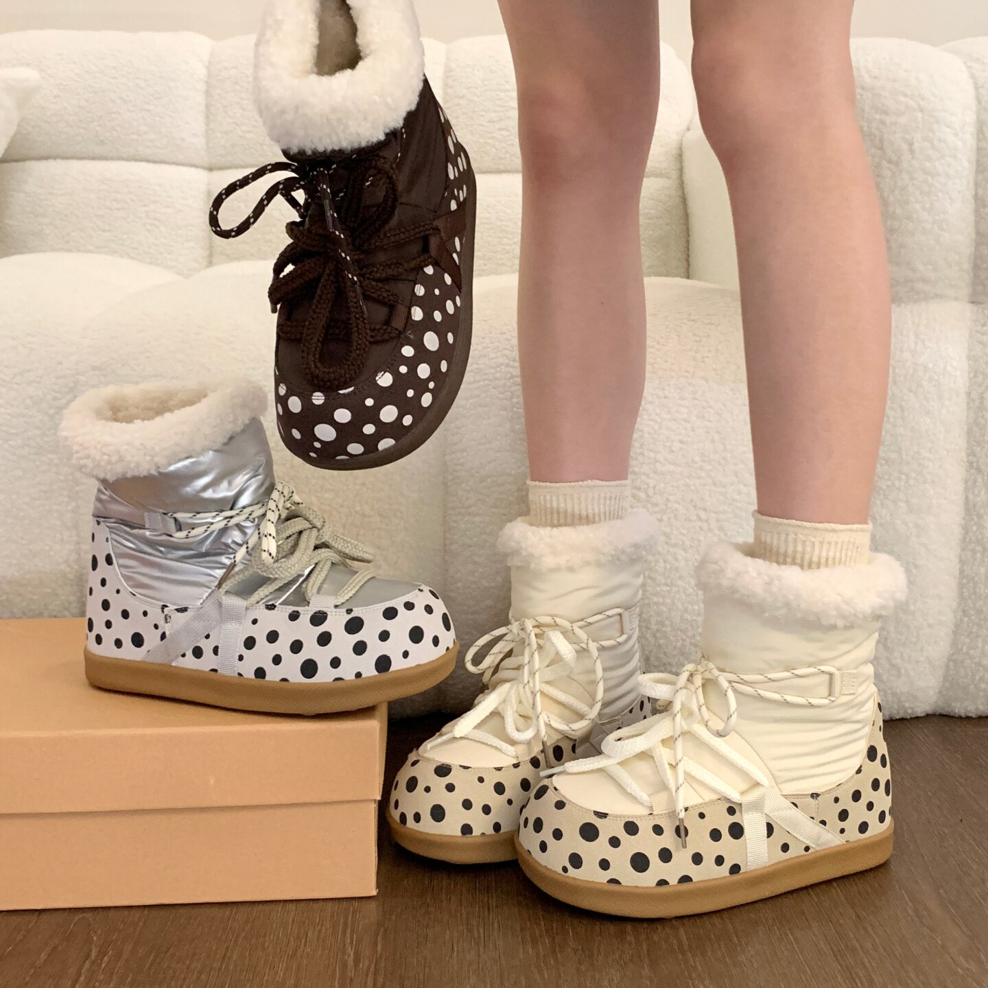 Thick-soled snow boots for women 2025 new winter velvet snow cotton warm cotton shoes with increased plush short boots