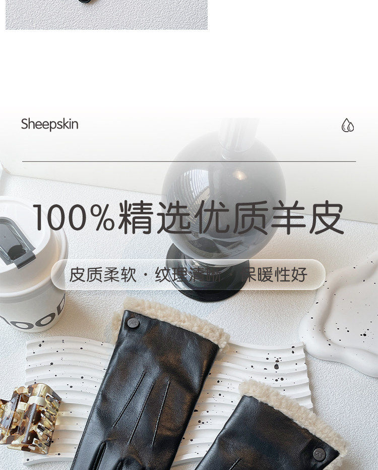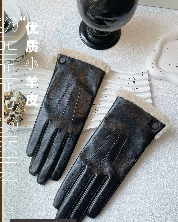 Hong Kong Bng Genuine Leather Gloves for Women, Autumn and Winter Short Sheepskin Gloves, Leather Gloves for Women, Winter Warm Leather Gloves for Women