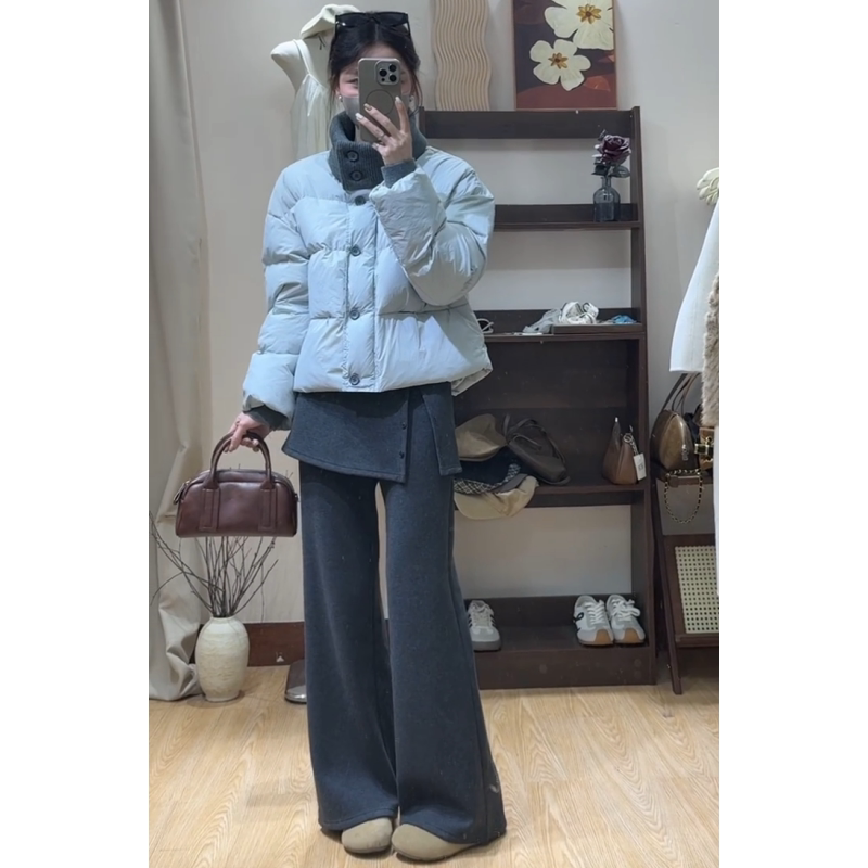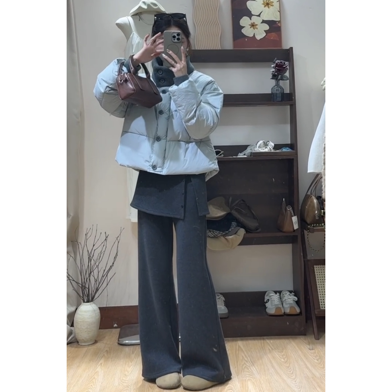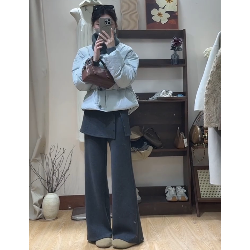 La Chapelle detachable butt curtain cashmere boot-cut pants for women winter new high-waisted casual warm flared glutinous rice pants