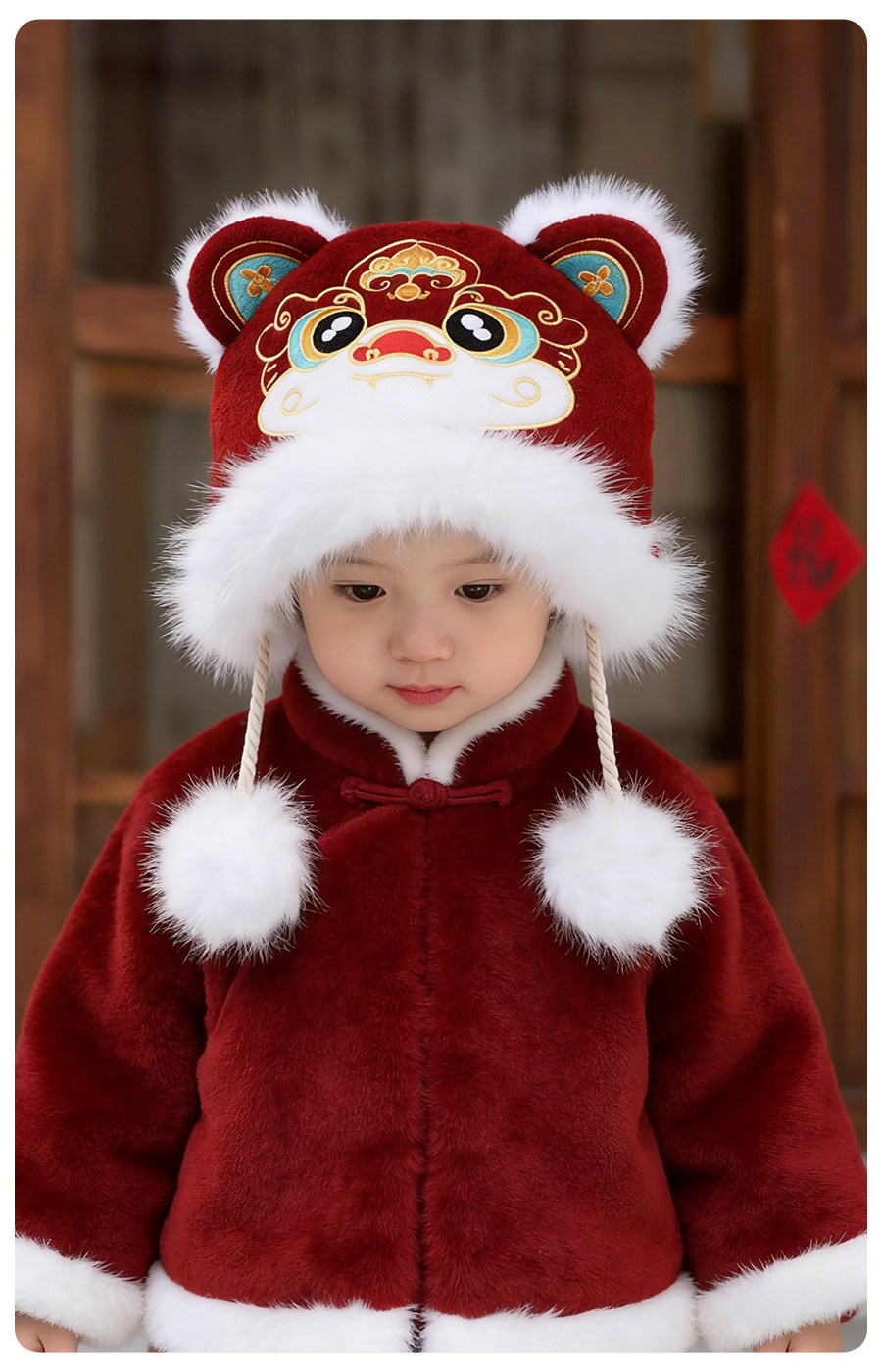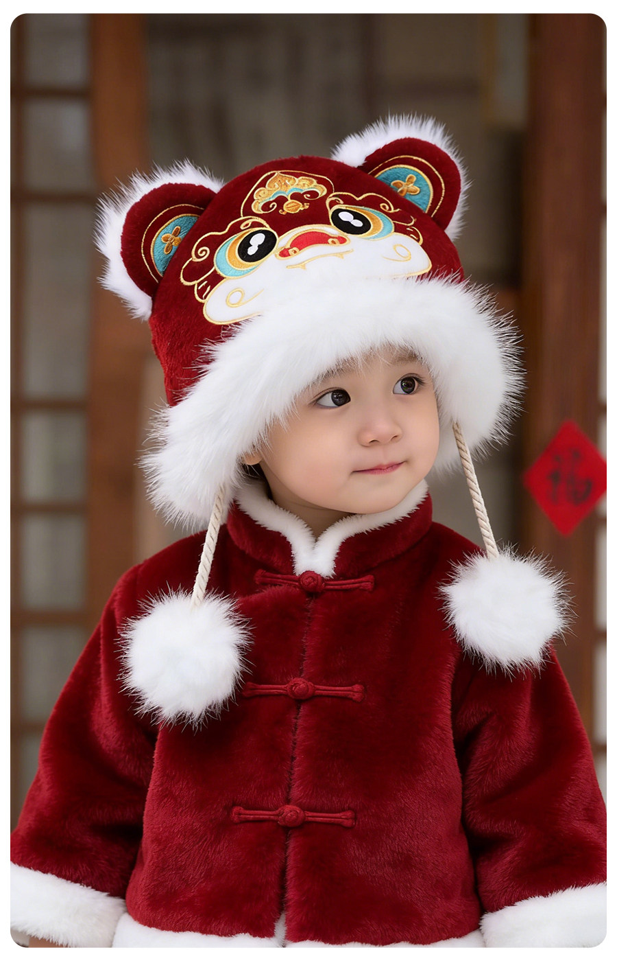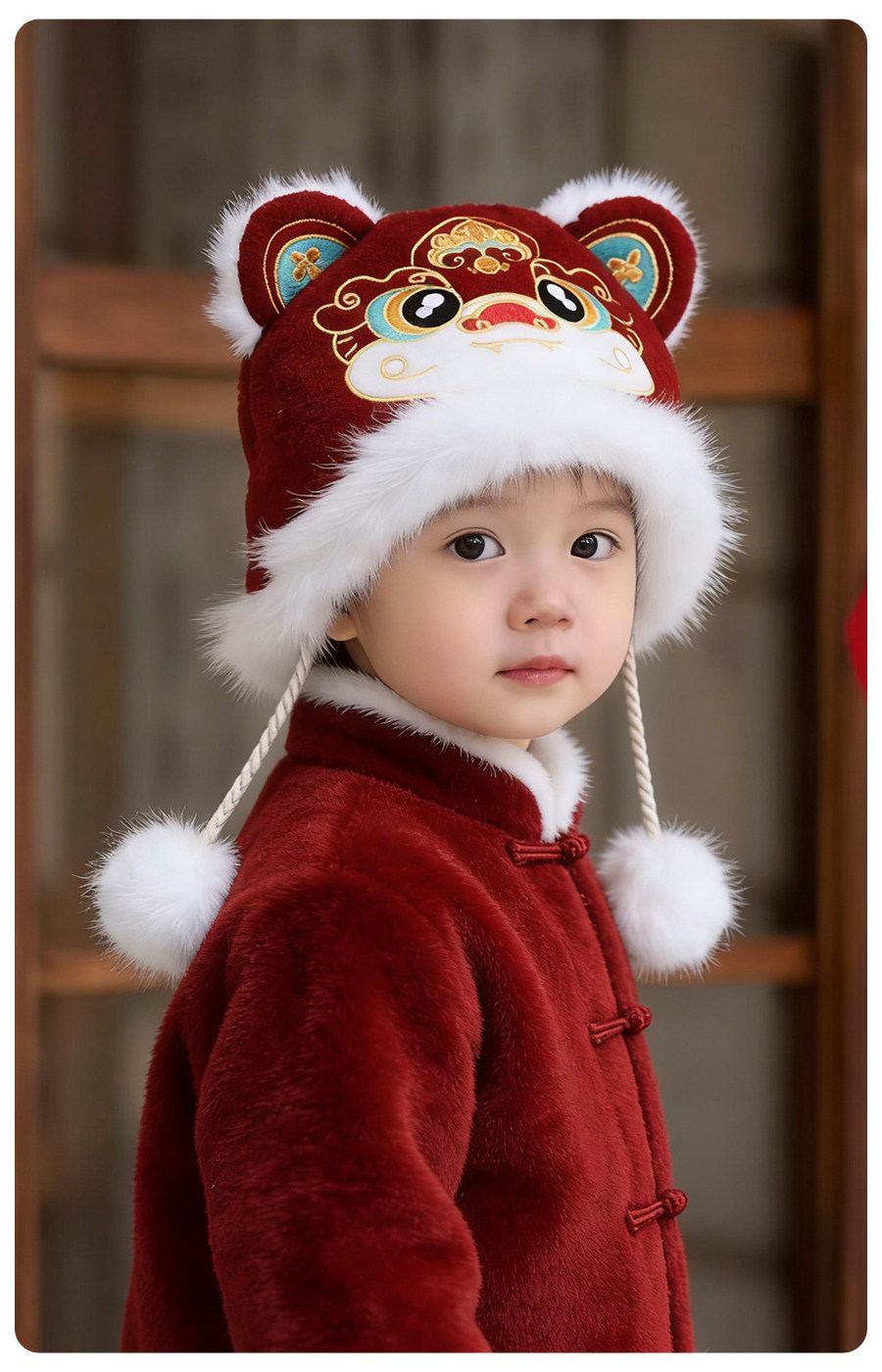 Red Baby Hat for Autumn and Winter, Baby Ear Protection Hat, New Year Tiger Head Hat, Plush Hat for Boys, Warm Hat for Girls, Children's Hat