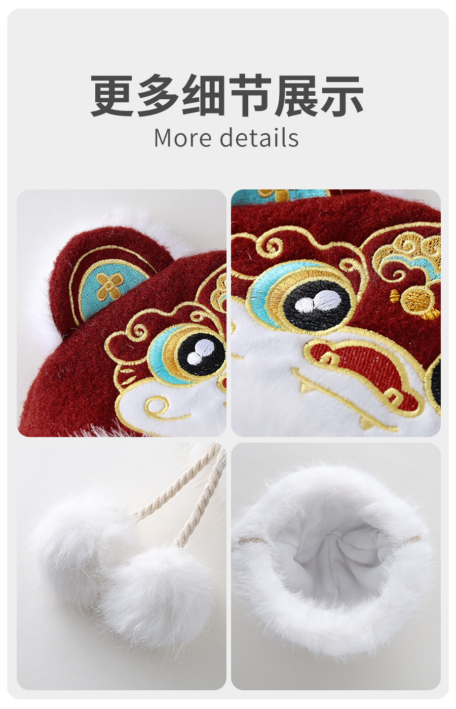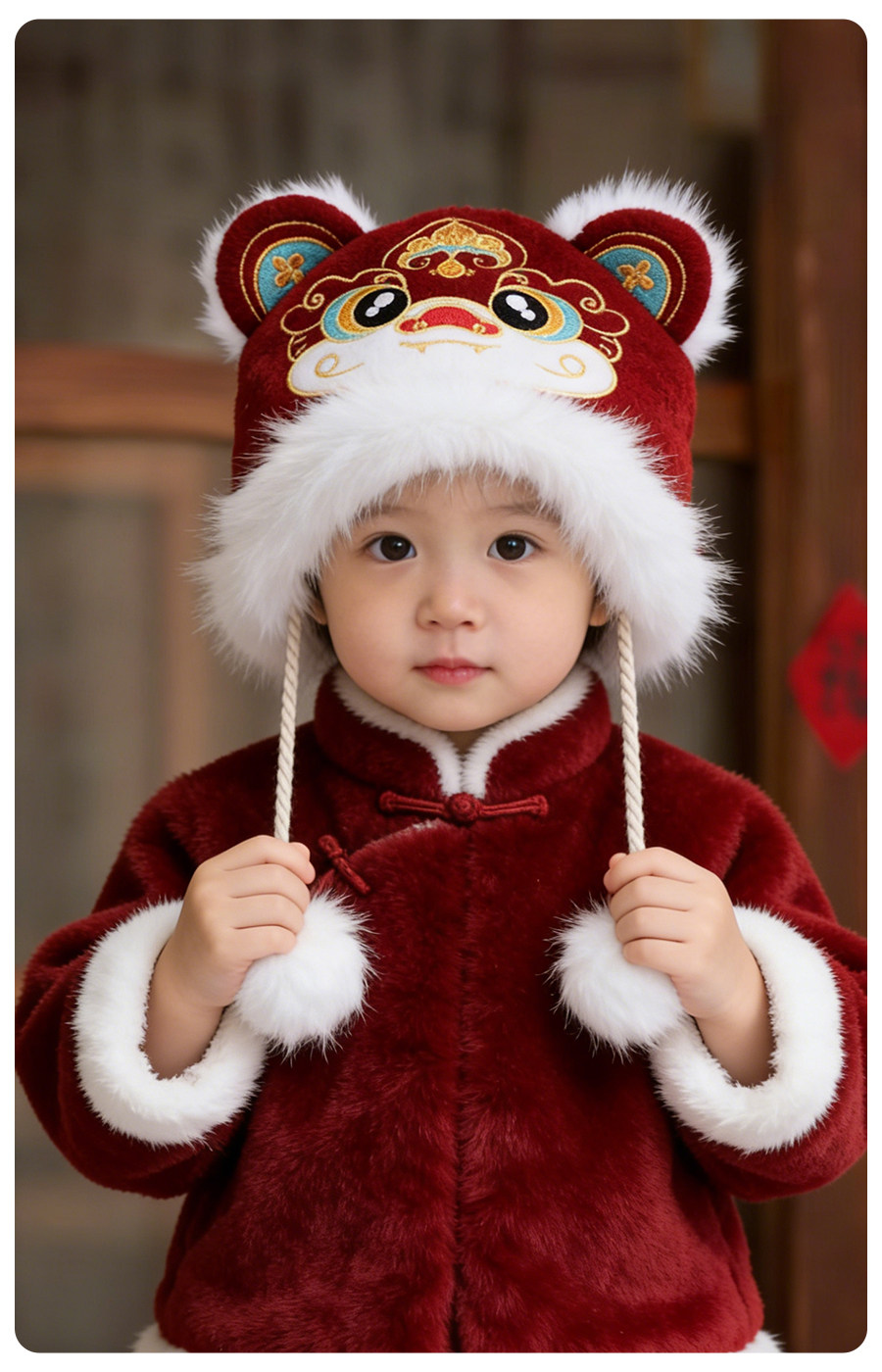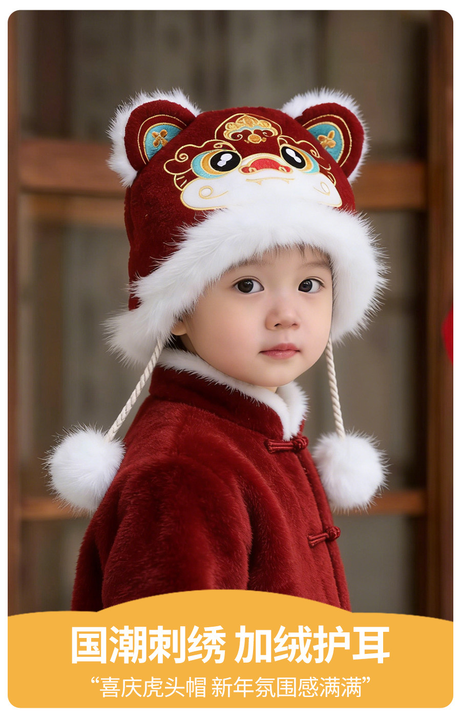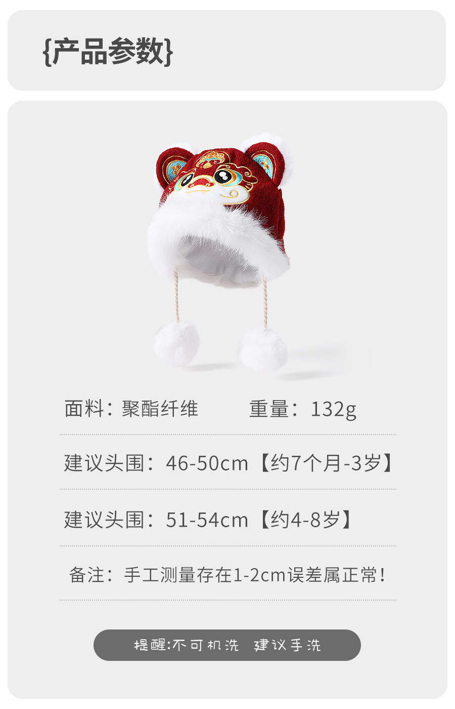 Red Baby Hat for Autumn and Winter, Baby Ear Protection Hat, New Year Tiger Head Hat, Plush Hat for Boys, Warm Hat for Girls, Children's Hat