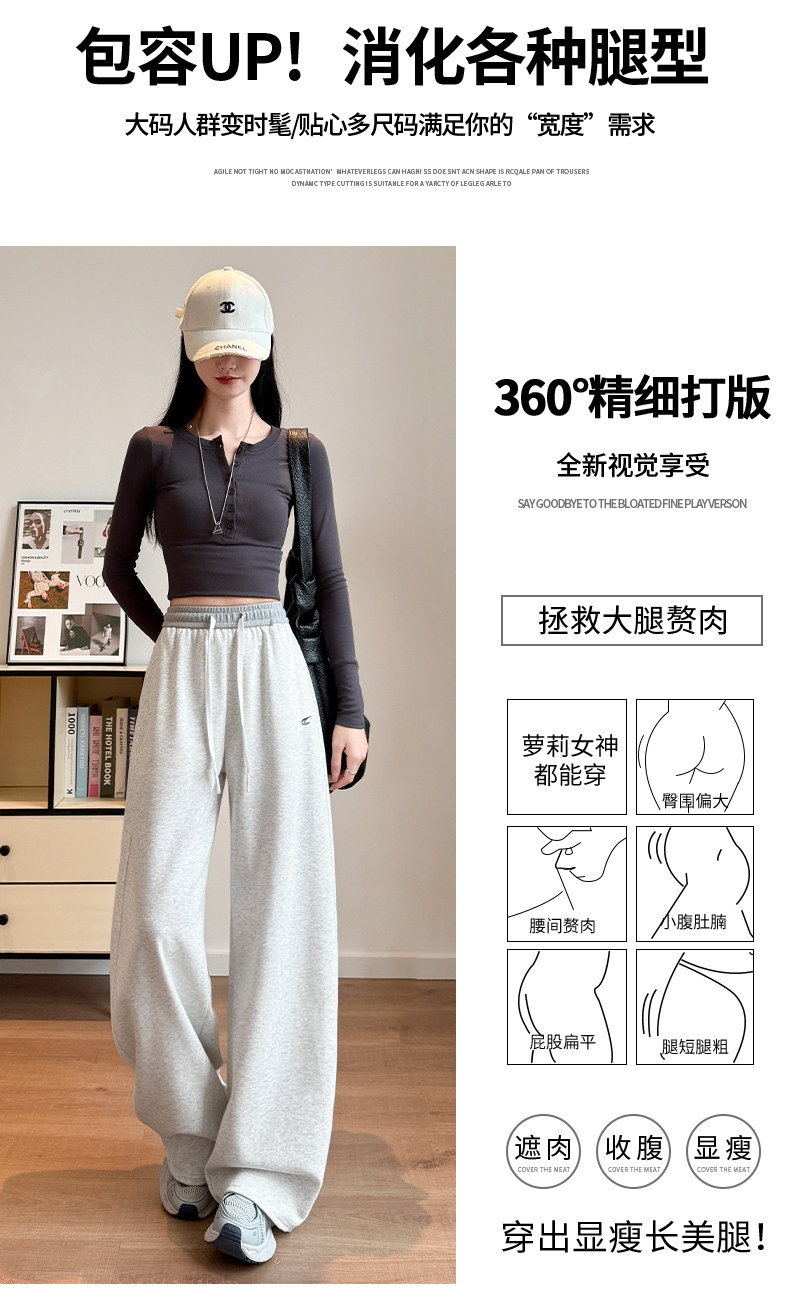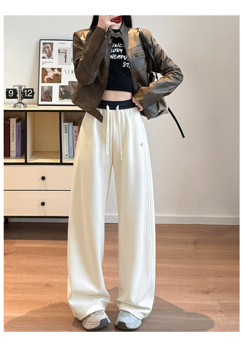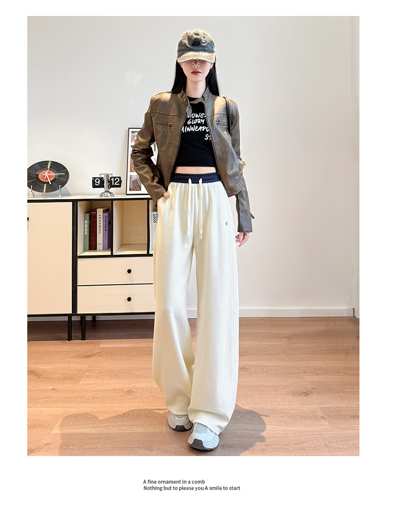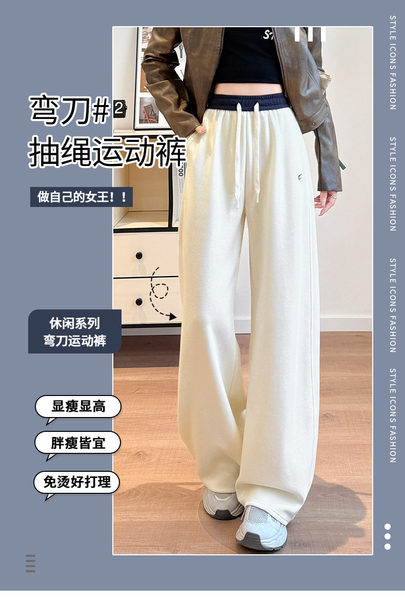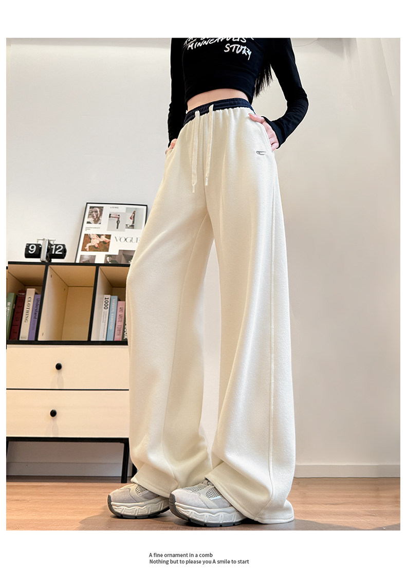 White velvet sports pants 2025 new winter machete sweatpants small sickle pants narrow version straight wide leg pants