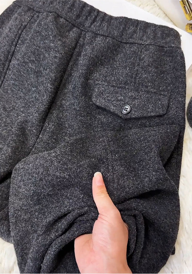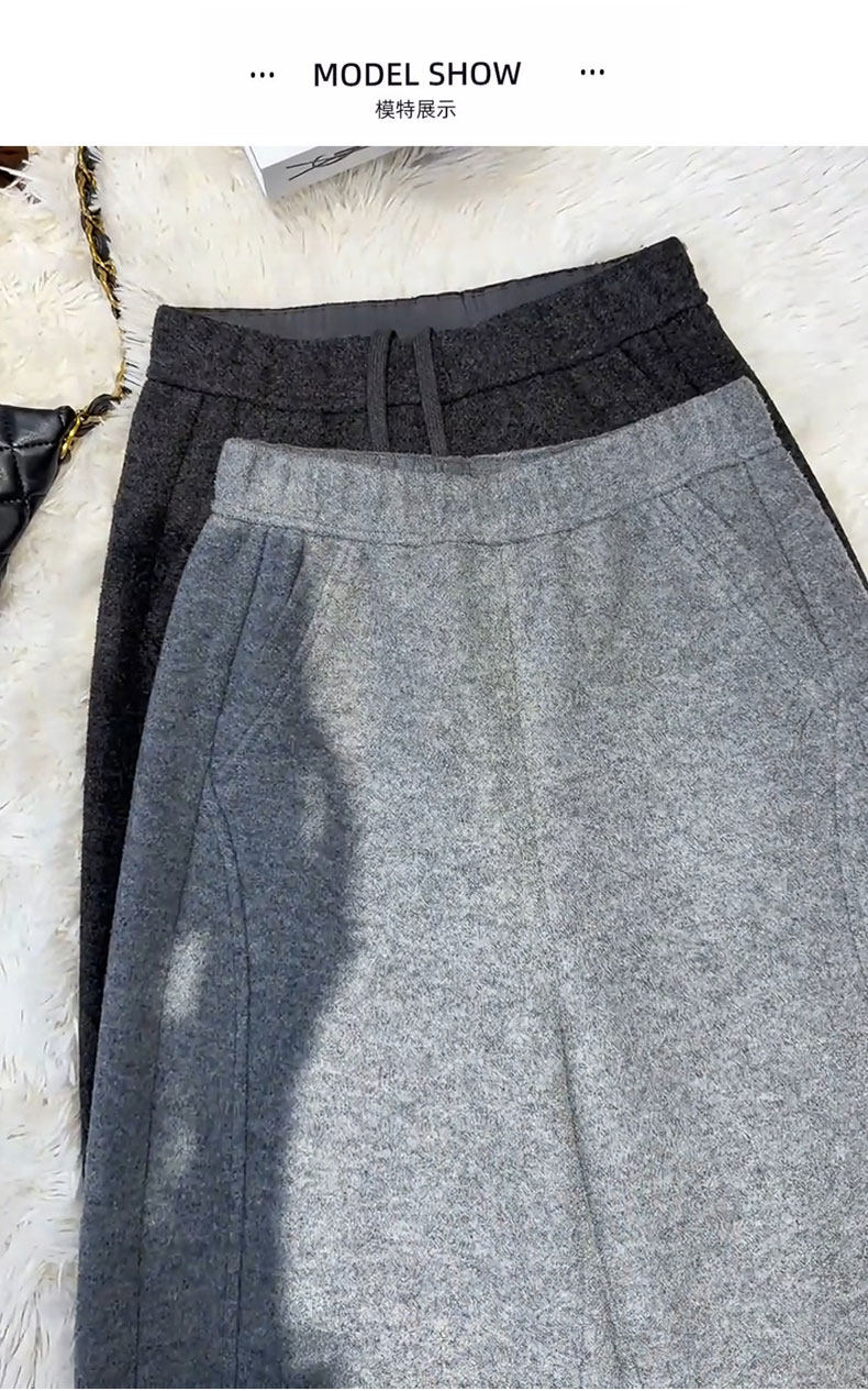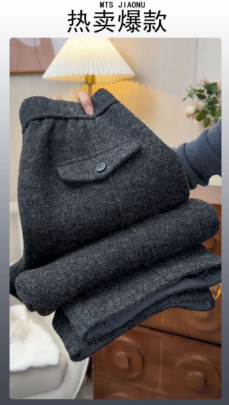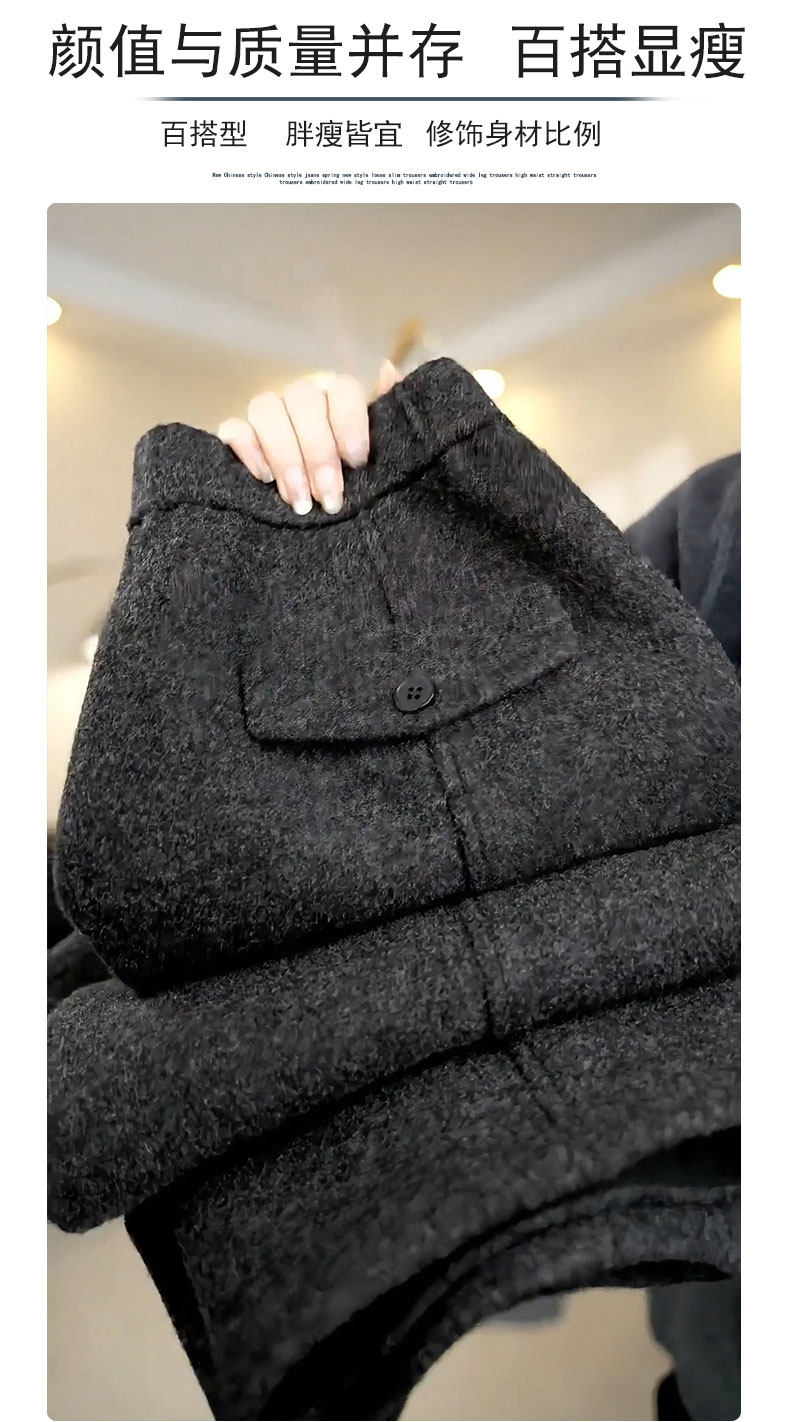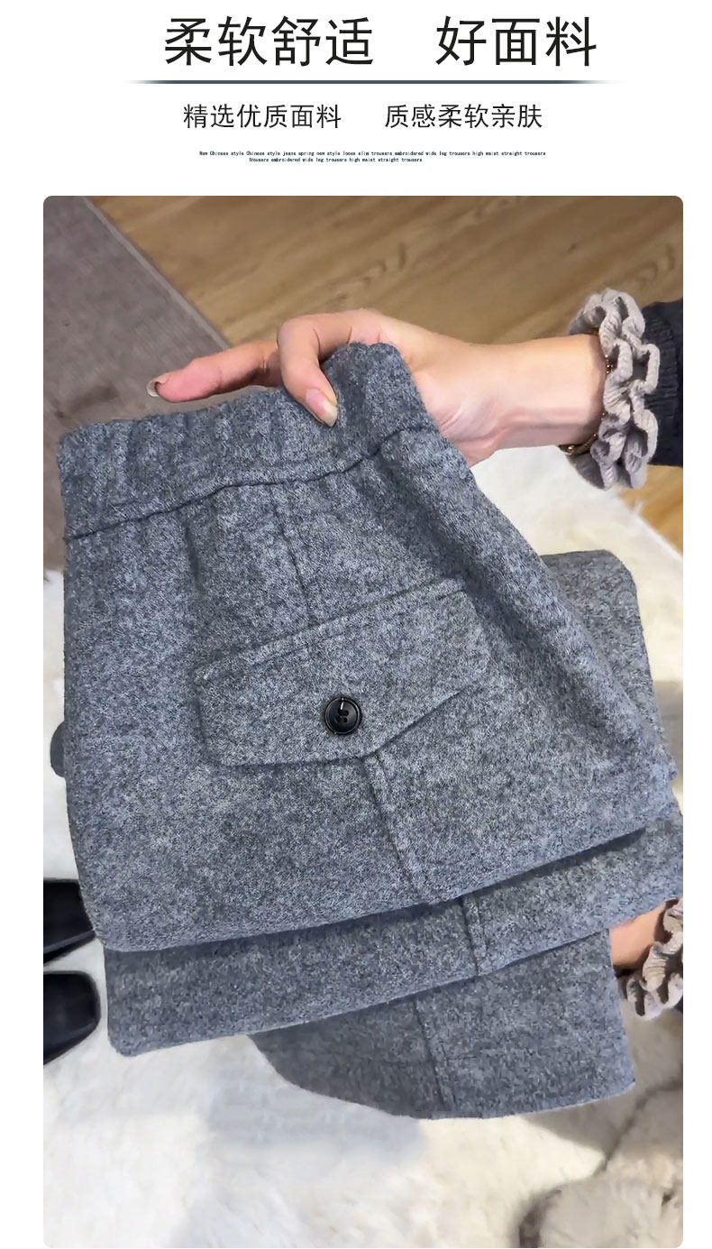 Dark gray woolen casual scimitar pants for women 2025 autumn and winter new style plus velvet thickened glutinous rice pants wide leg pants