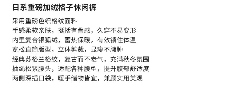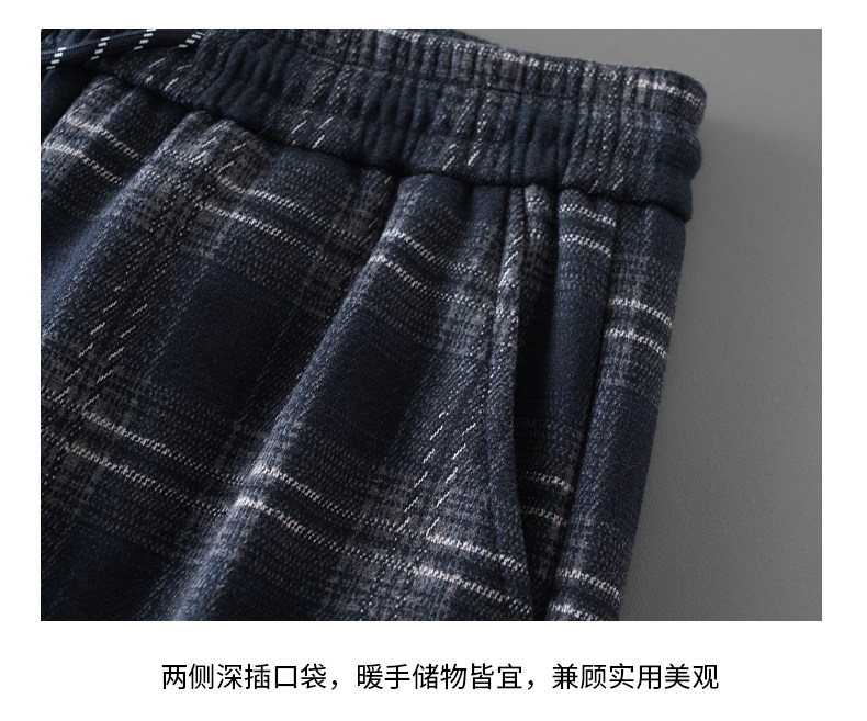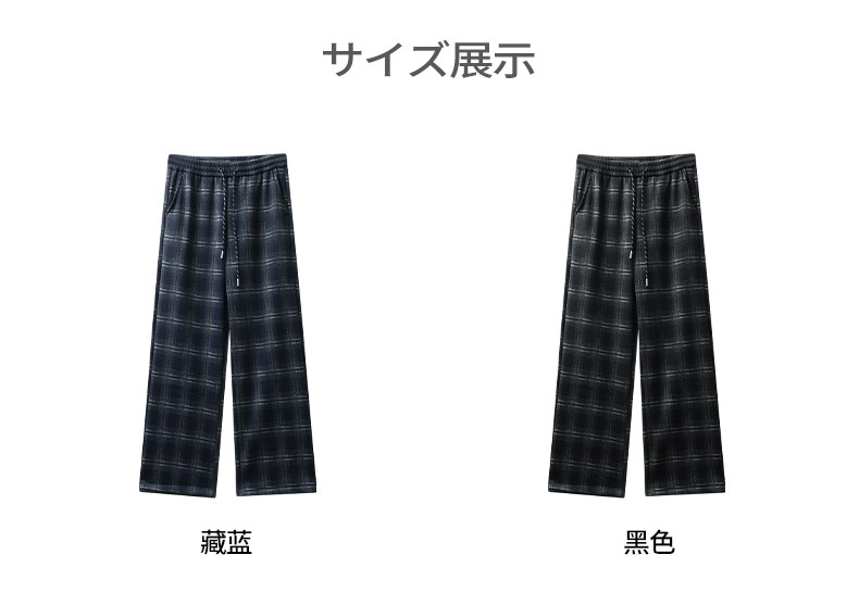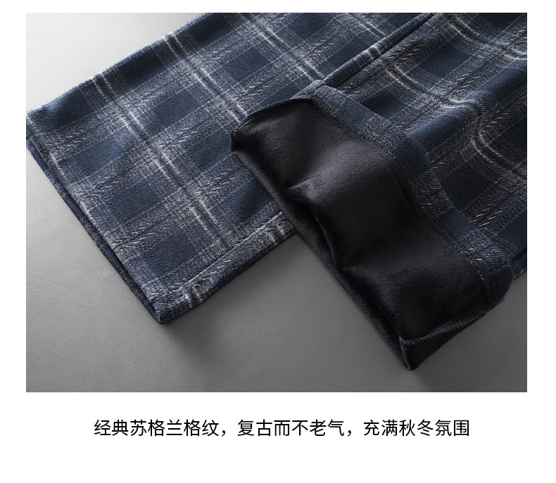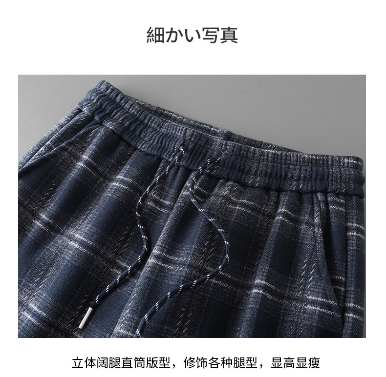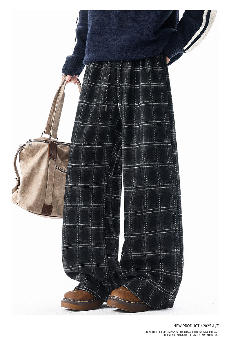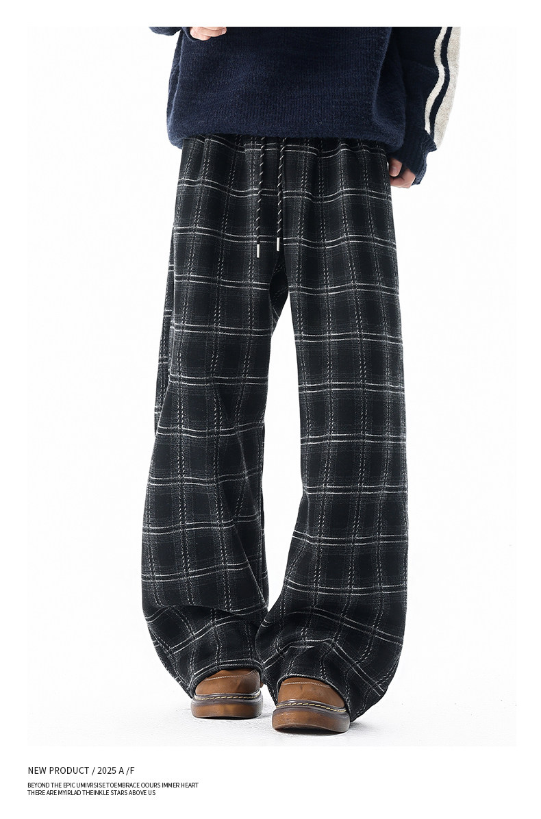 Pure heavyweight plus velvet plaid casual pants for men in winter, thickened and warm, American retro loose wide-leg straight trousers