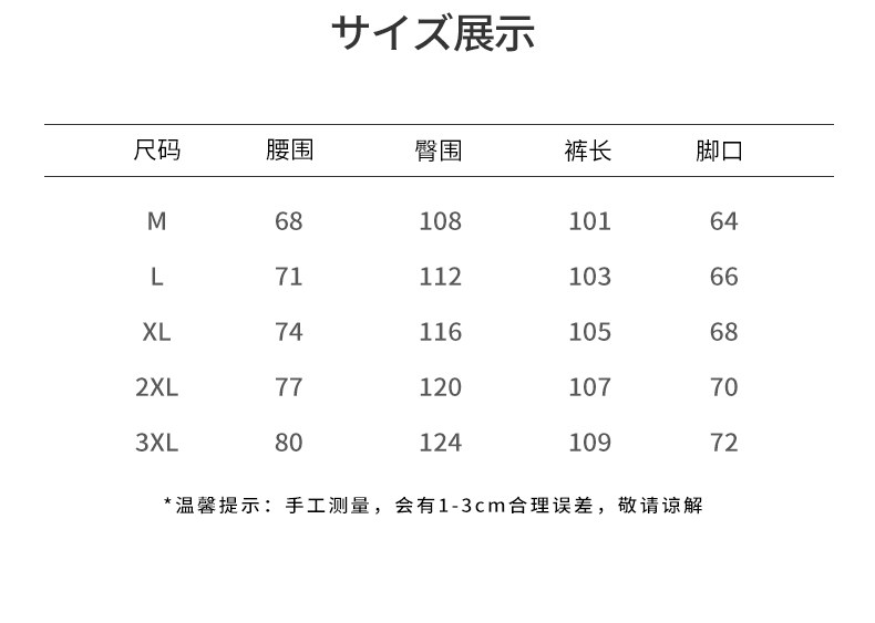 Outseam (cm) 99 cm 101.5 cm 104 cm 106.5 cm 109 cm