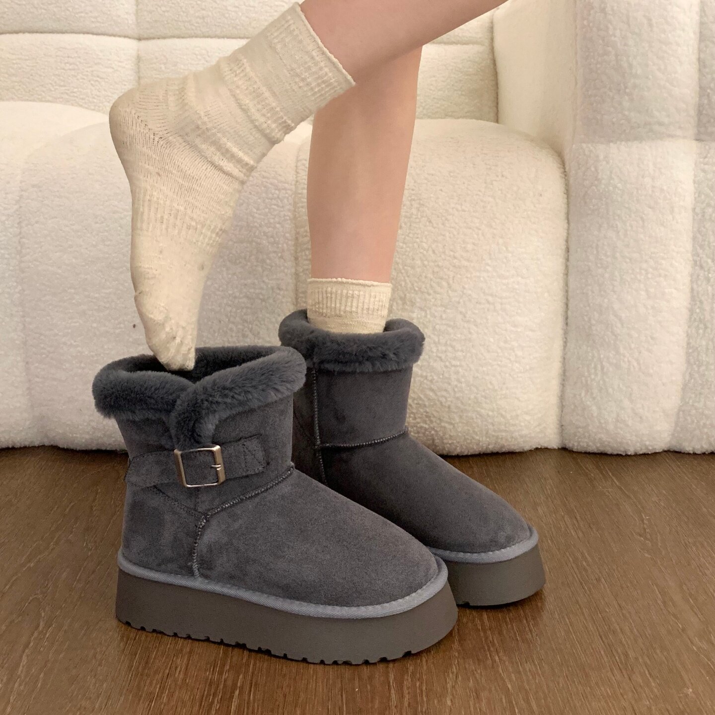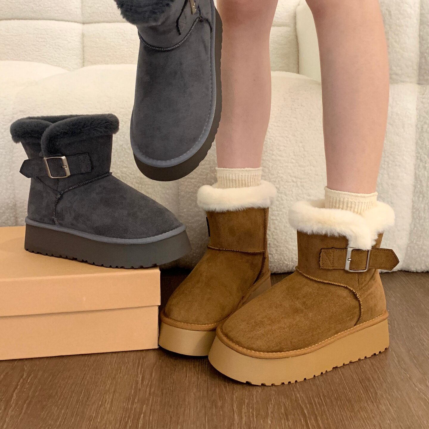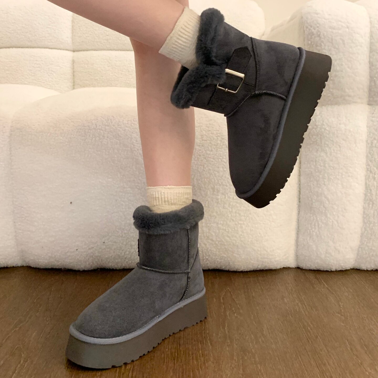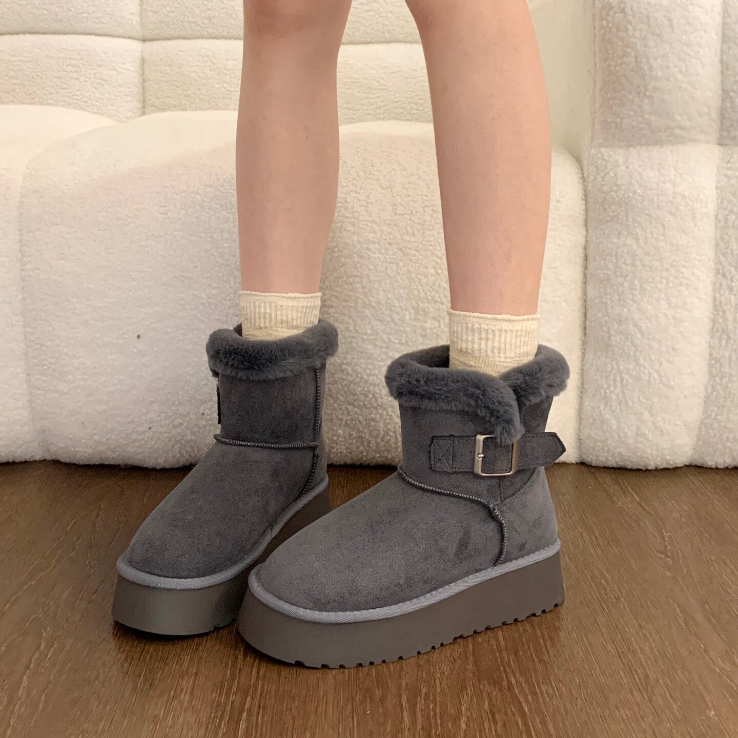 Thick-soled fur integrated plus velvet warm mid-calf snow boots for women 2025 new winter thickened Northeast gray cotton shoes