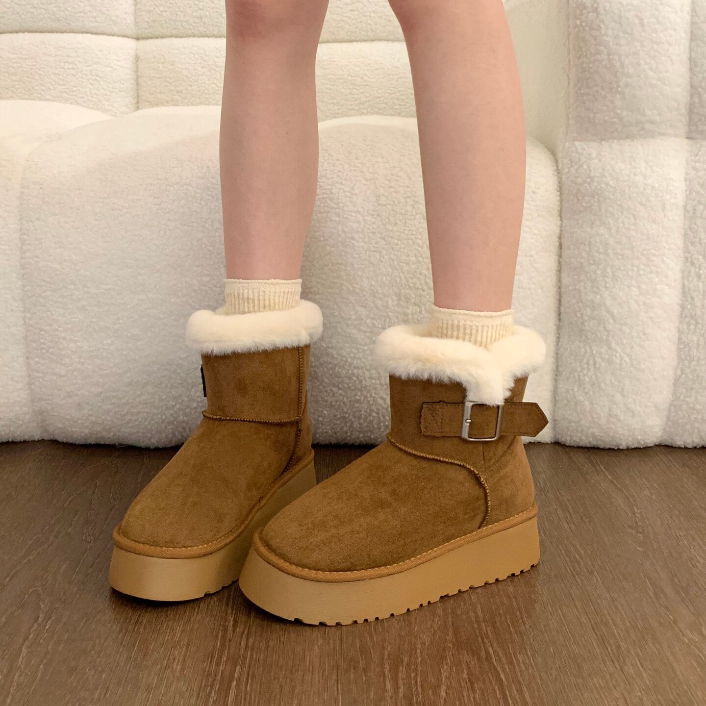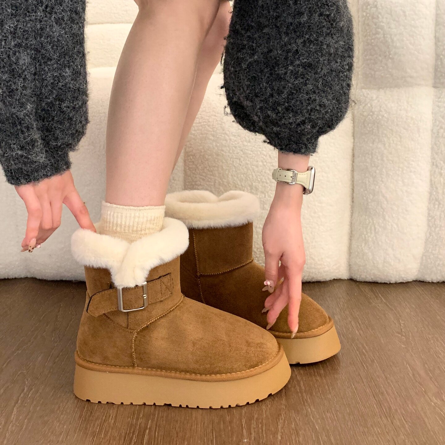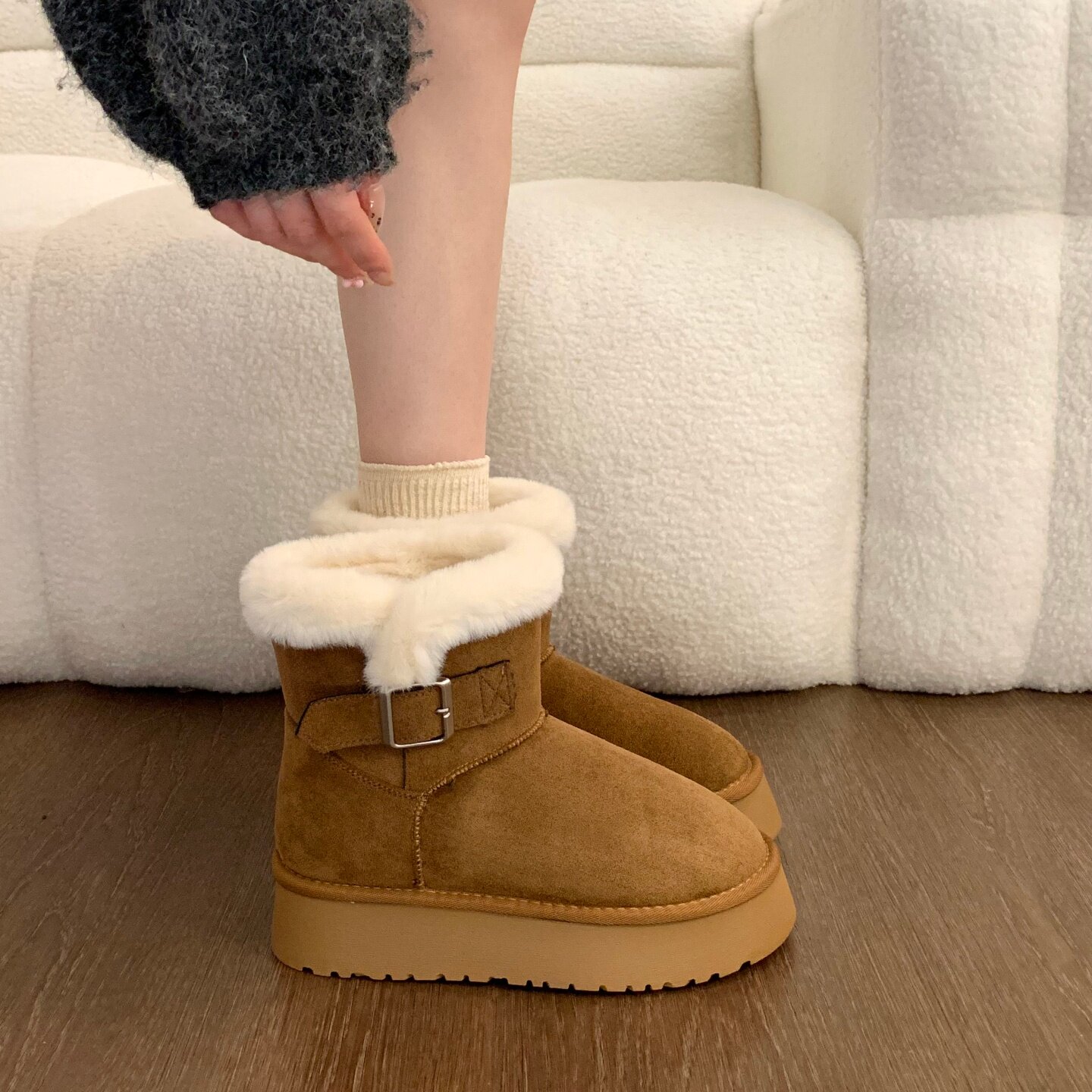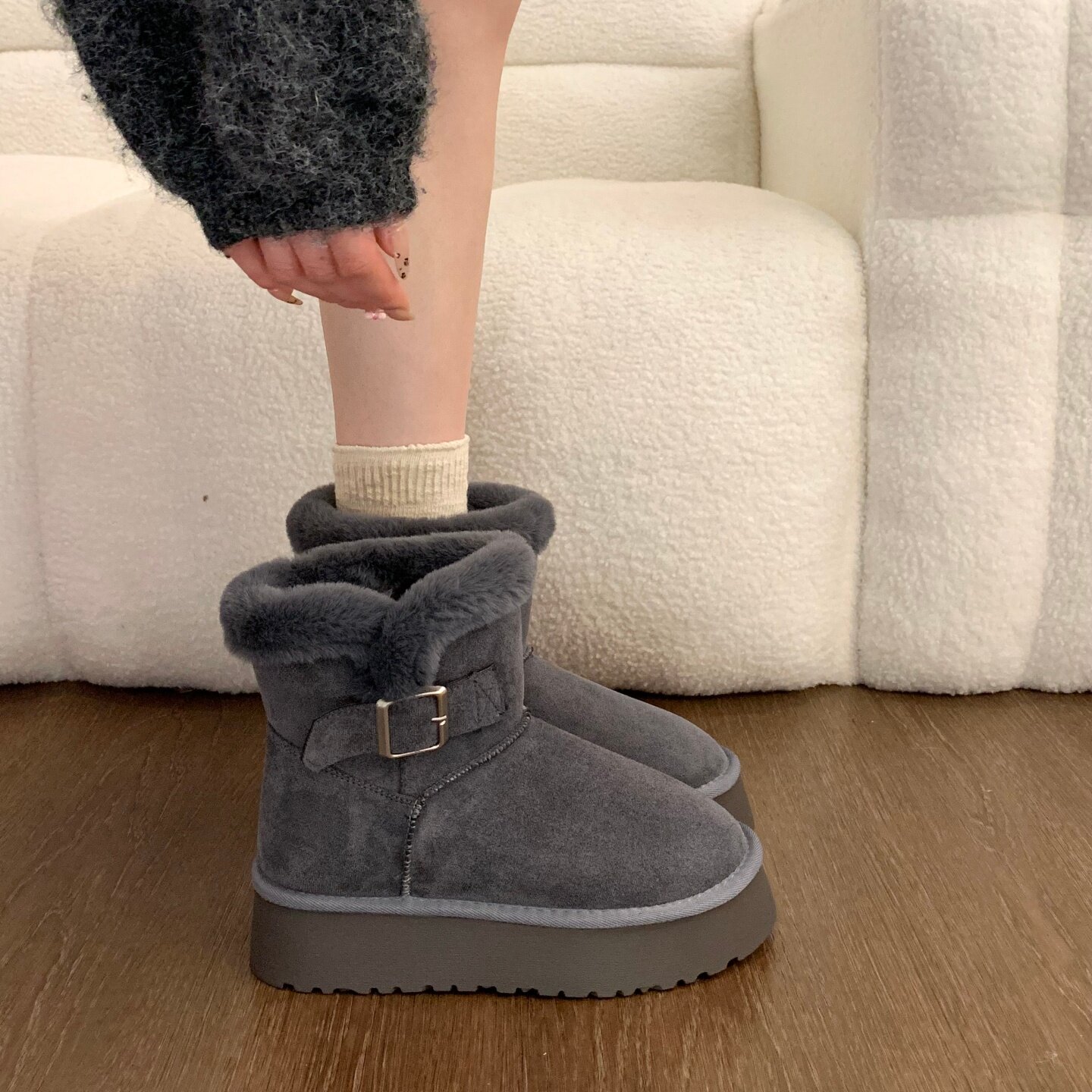 Thick-soled fur integrated plus velvet warm mid-calf snow boots for women 2025 new winter thickened Northeast gray cotton shoes
