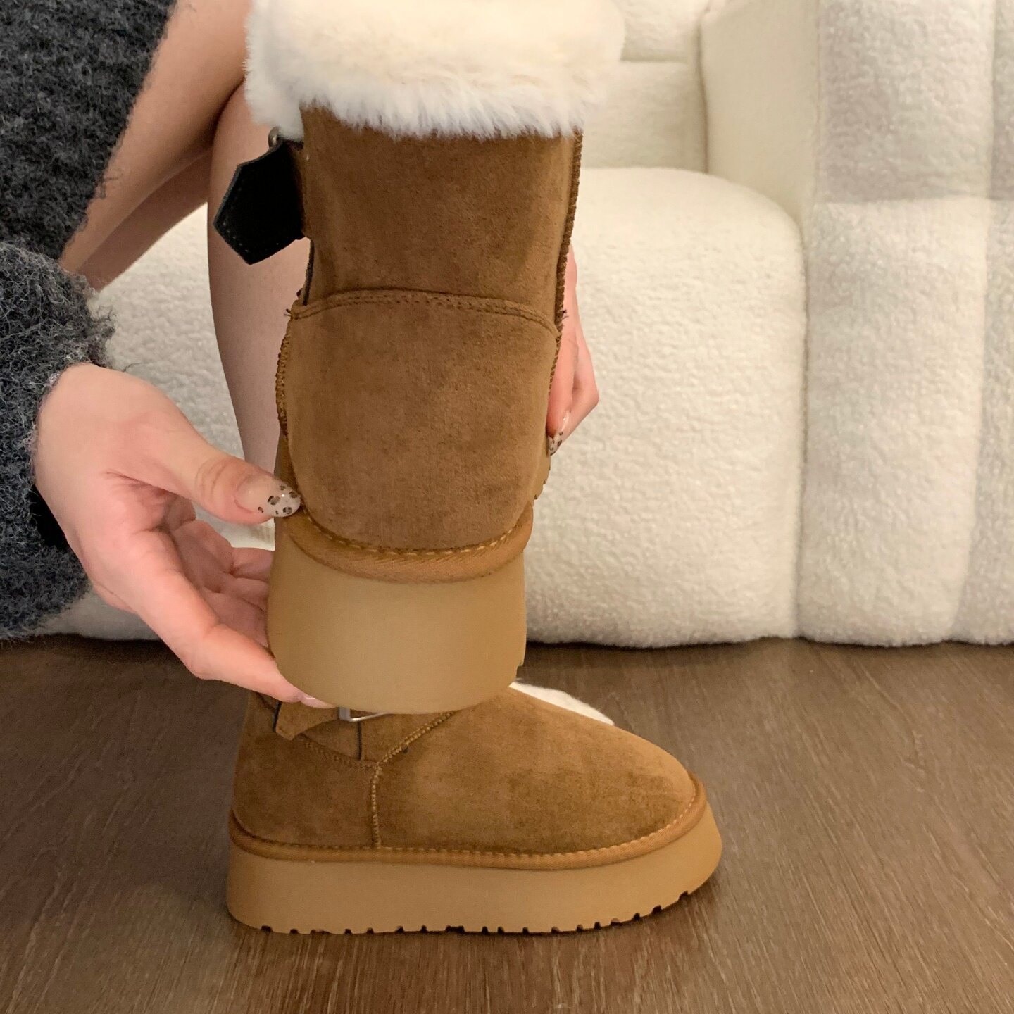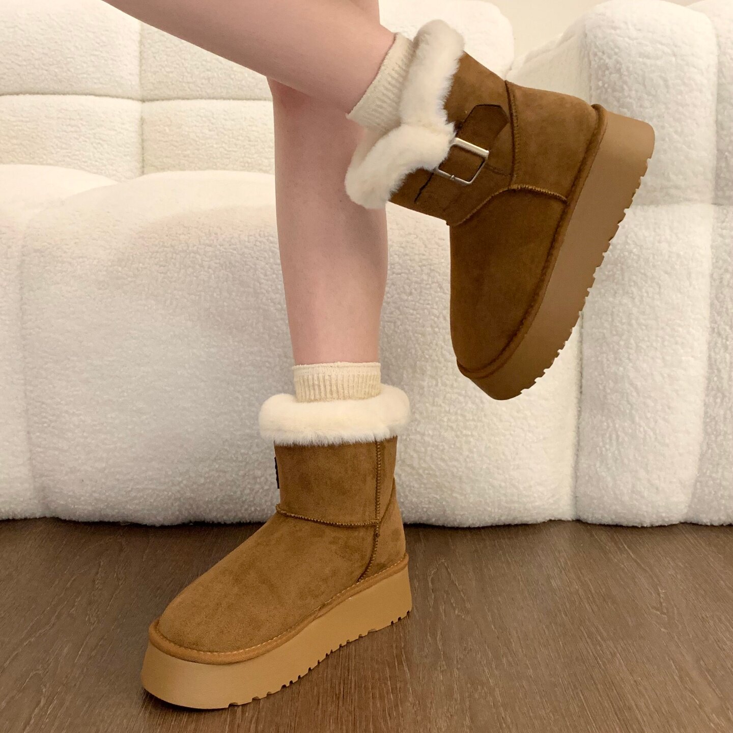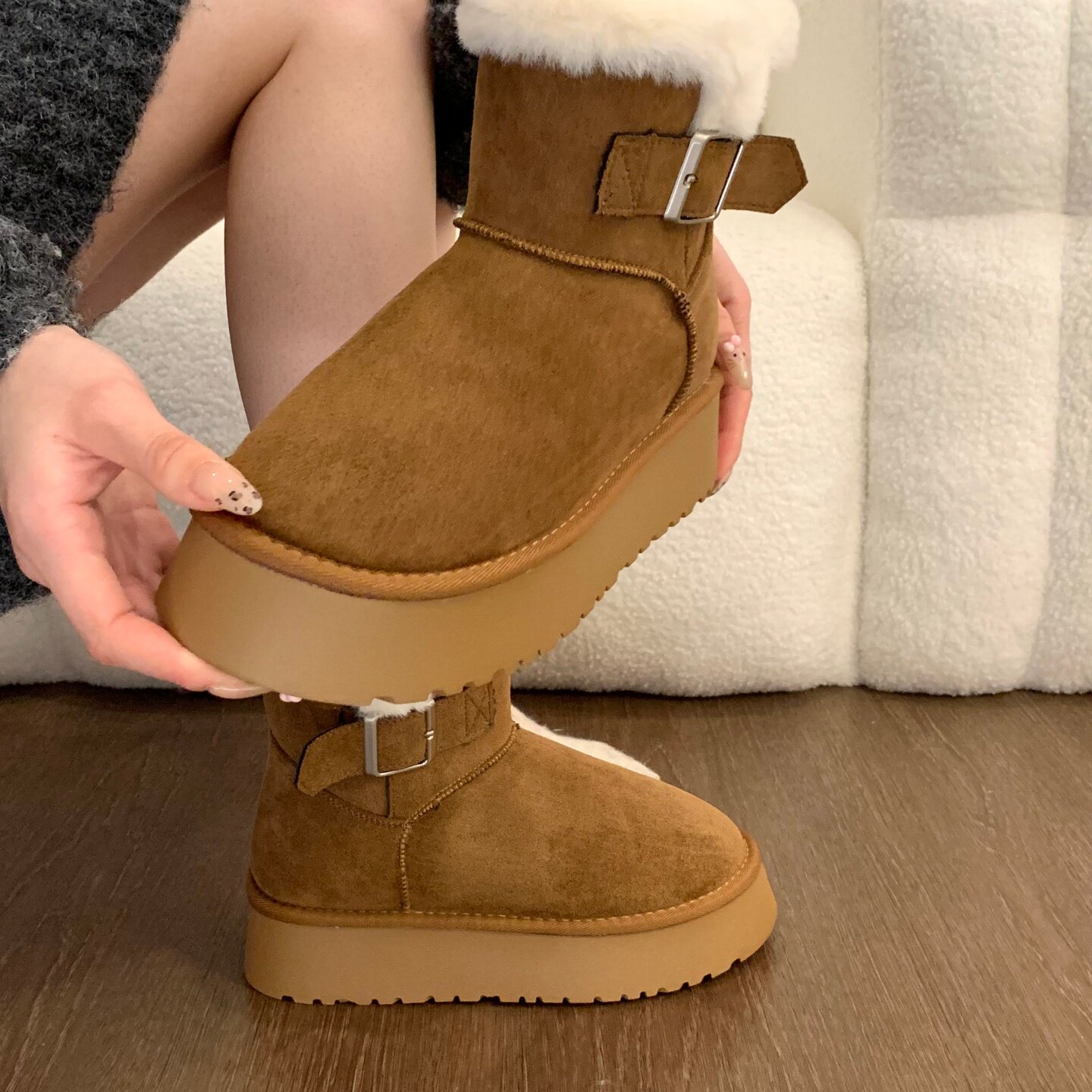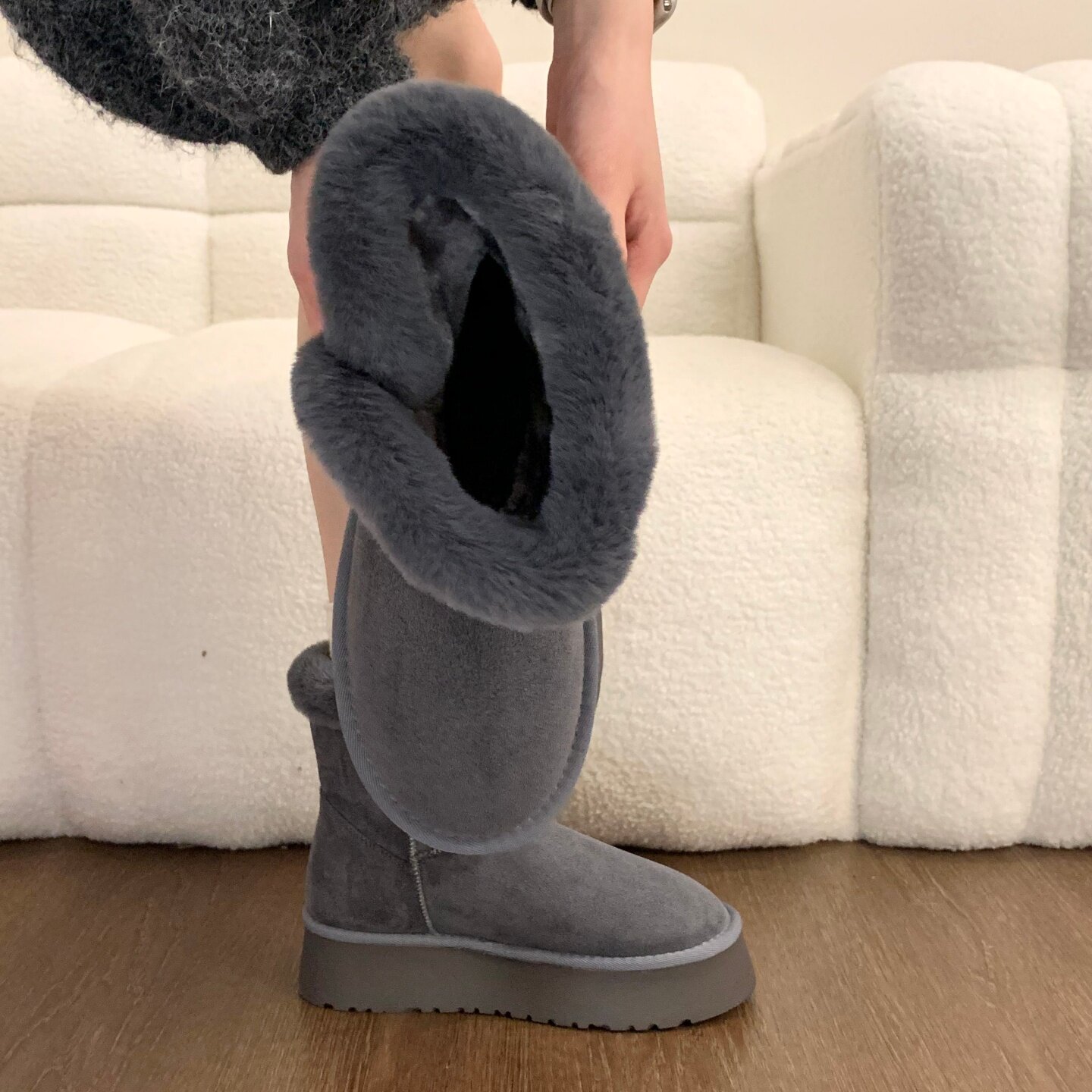 Thick-soled fur integrated plus velvet warm mid-calf snow boots for women 2025 new winter thickened Northeast gray cotton shoes
