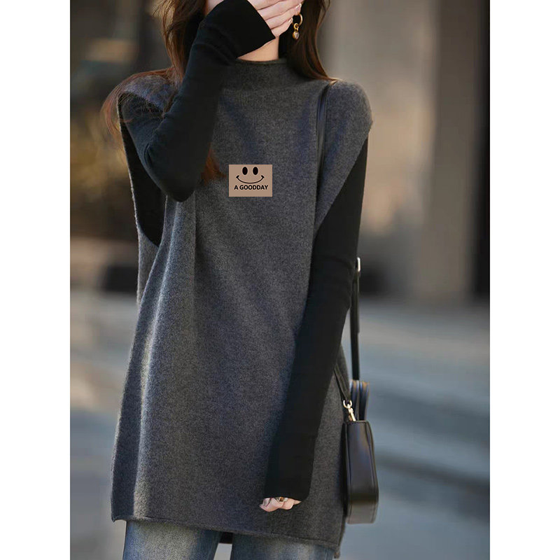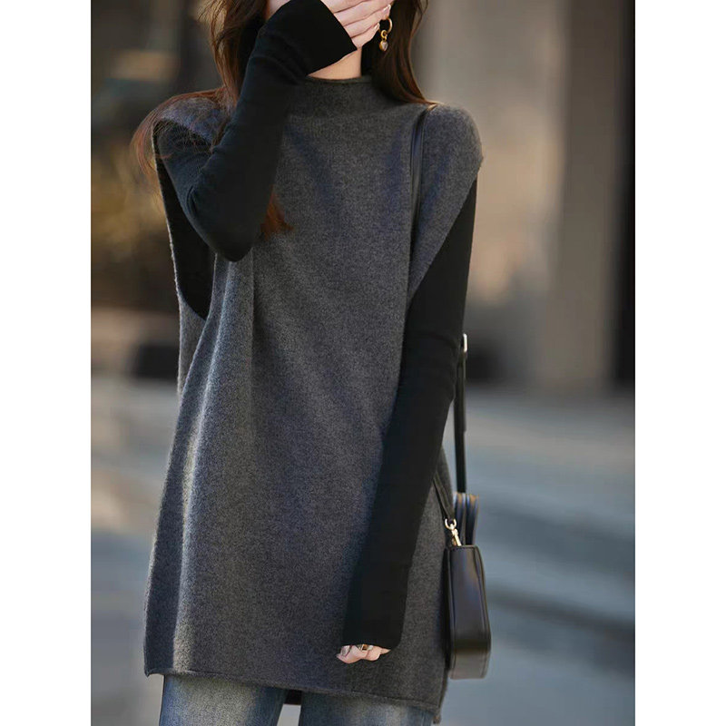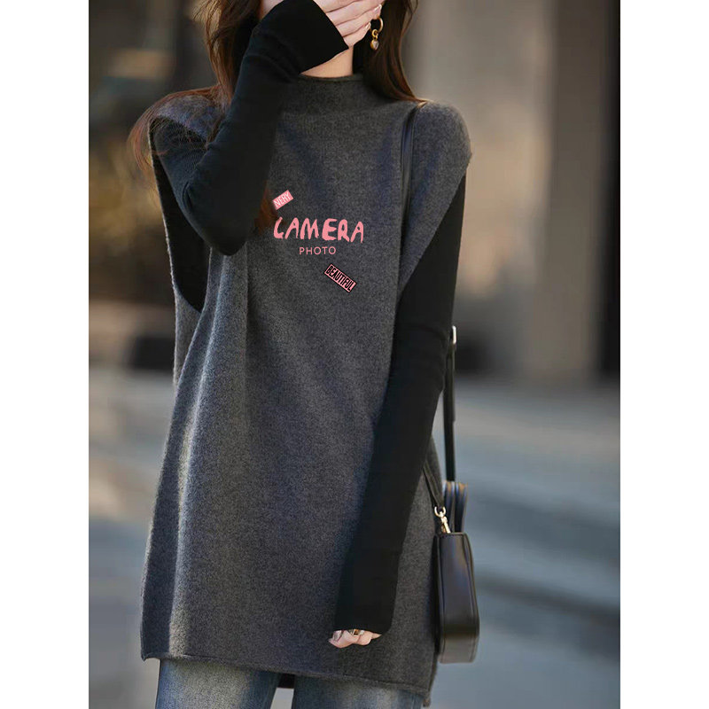Fake two-piece German velvet thickened T-shirt for women in autumn and winter new half-high collar gray mid-length crotch-covering T-shirt with shark pants