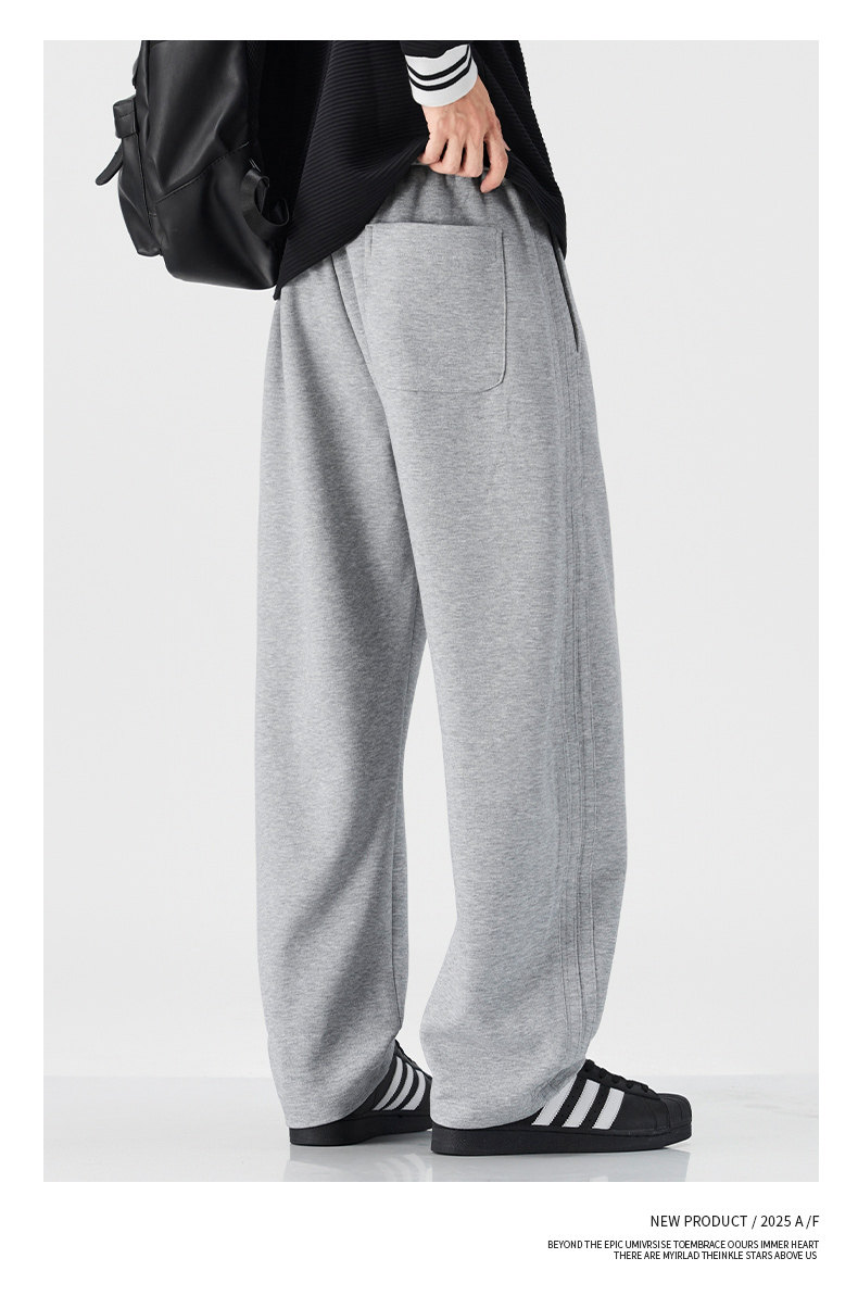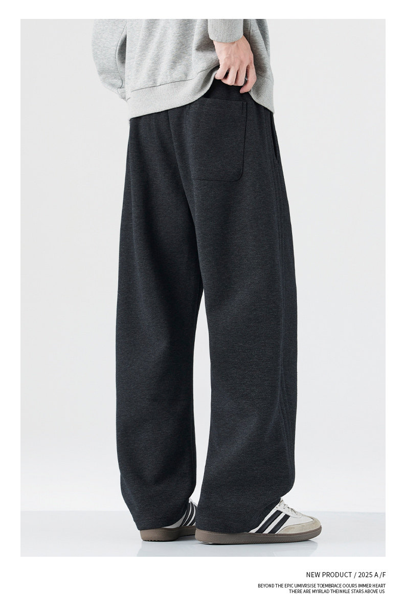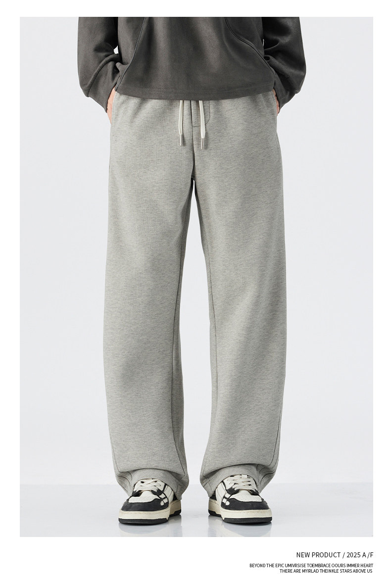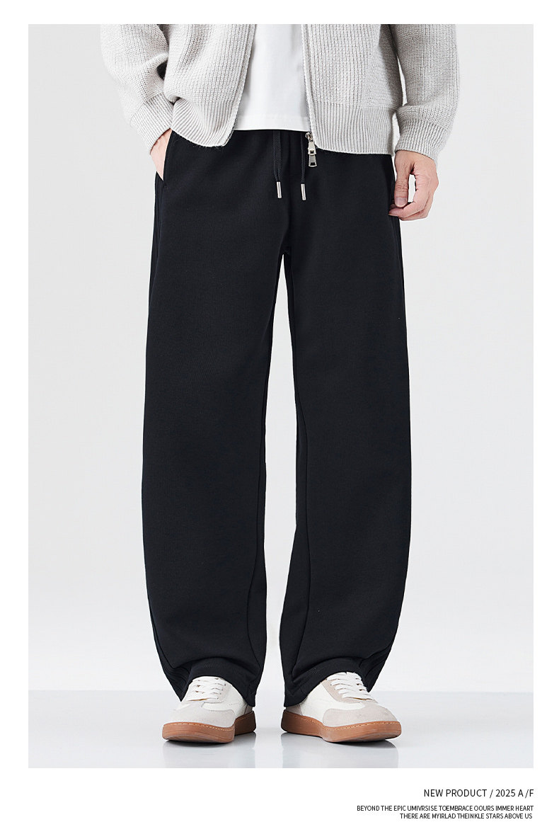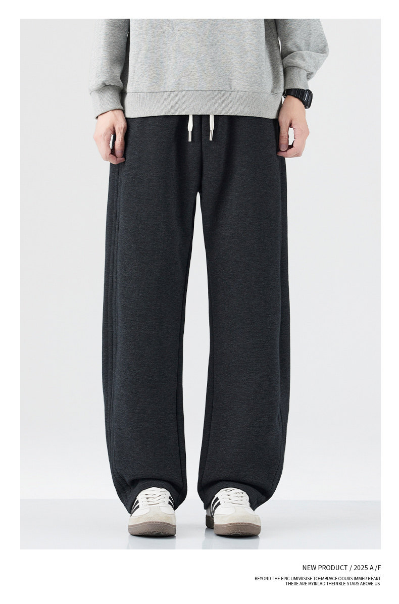 Pure Cotton 460g Heavyweight Curved Hem Sweatpants for Men, Winter Fleece-Lined, Warm, Loose Fit, Wide-Leg Straight Casual Pants for Teenagers