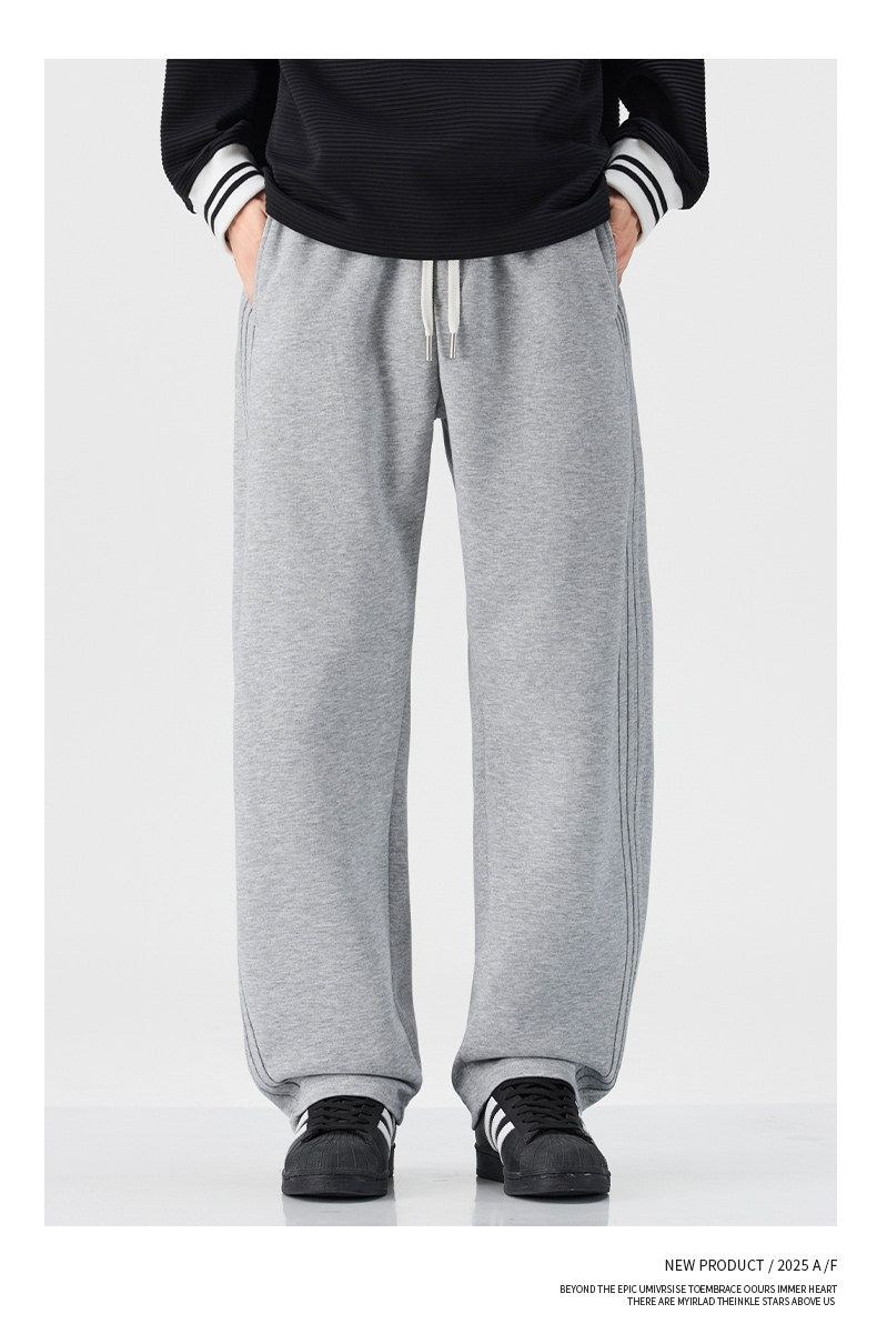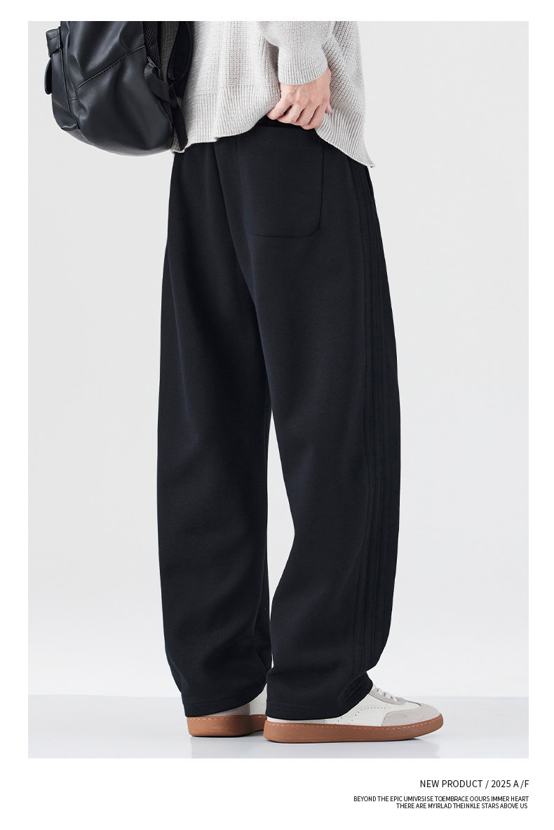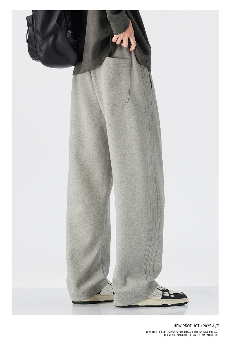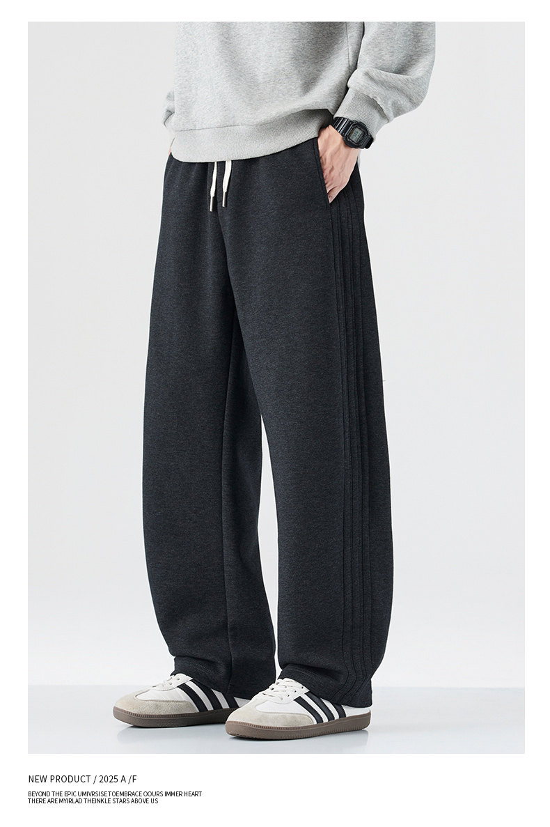 Pure Cotton 460g Heavyweight Curved Hem Sweatpants for Men, Winter Fleece-Lined, Warm, Loose Fit, Wide-Leg Straight Casual Pants for Teenagers