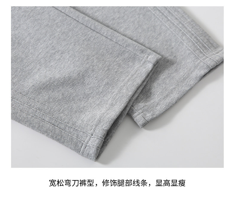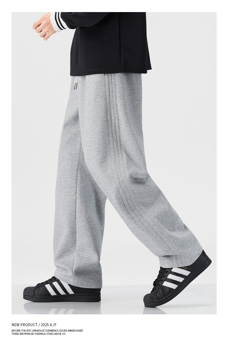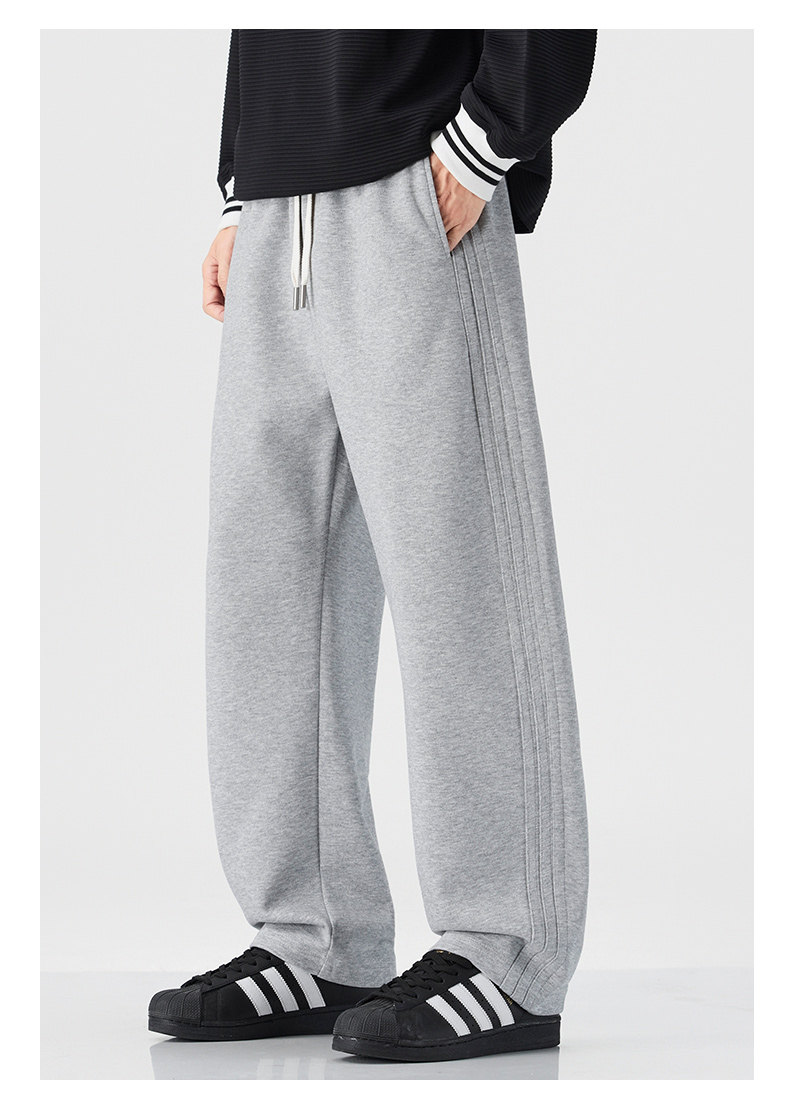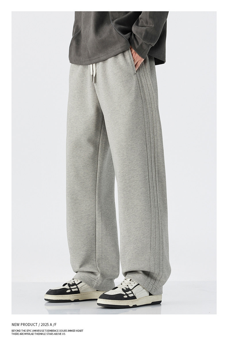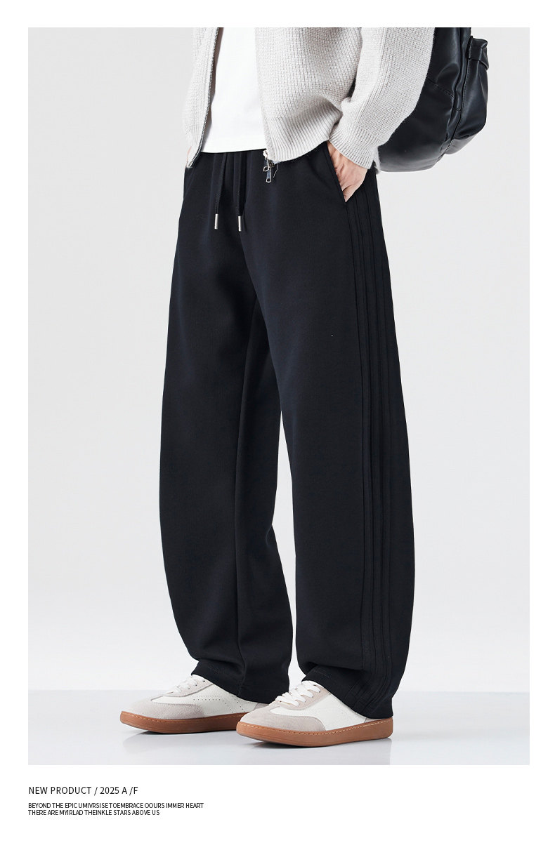 Pure Cotton 460g Heavyweight Curved Hem Sweatpants for Men, Winter Fleece-Lined, Warm, Loose Fit, Wide-Leg Straight Casual Pants for Teenagers