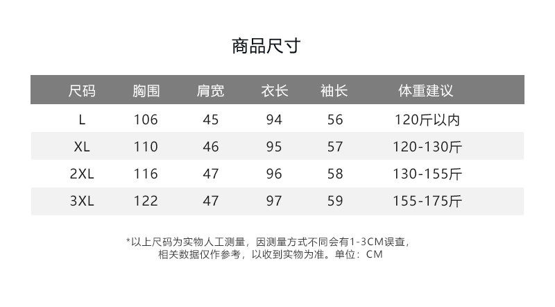 China (cm) 165 / 88-90 170 / 96-98 175 / 108-110 180 / 118-122 185 / 126-130