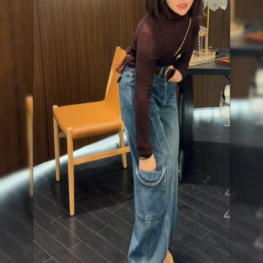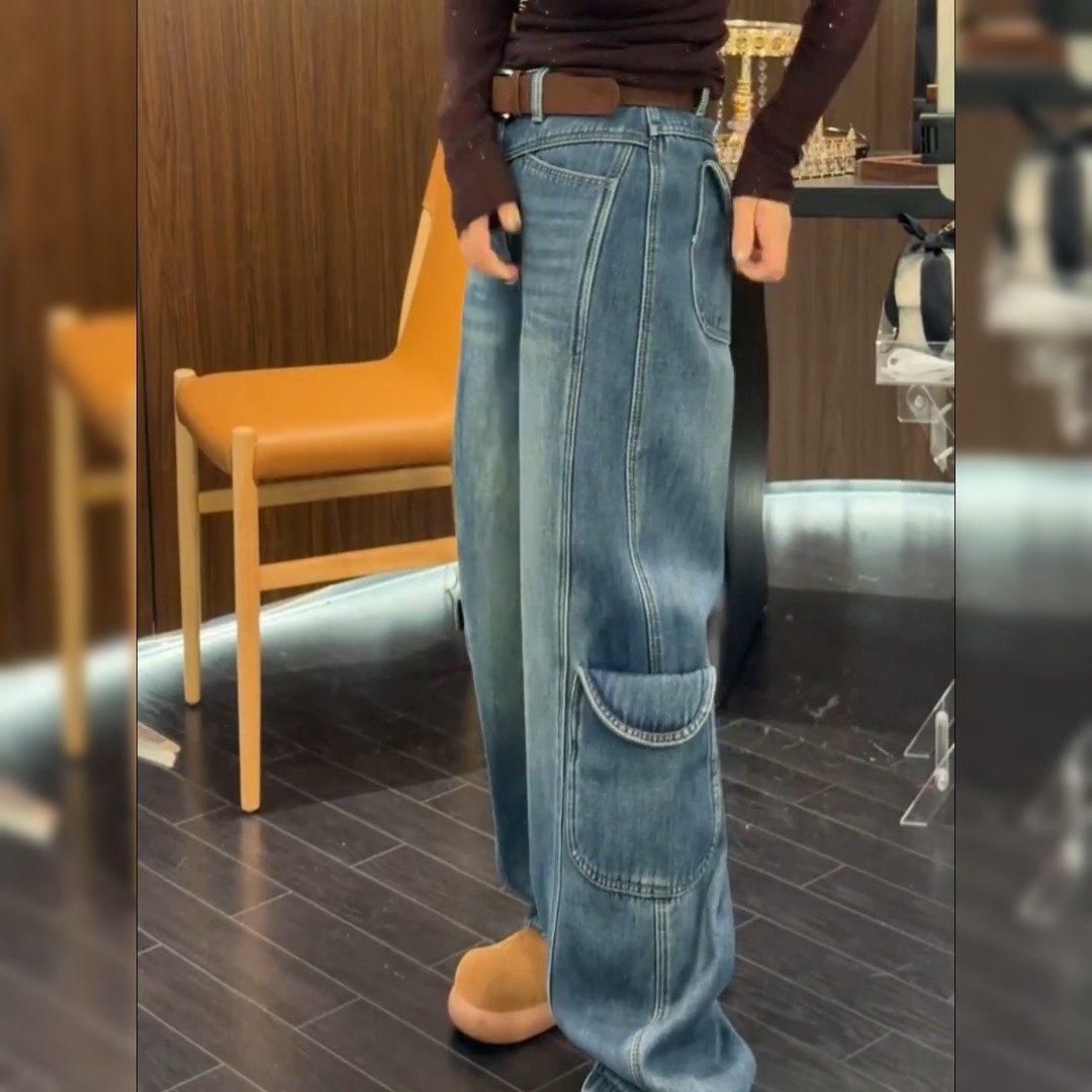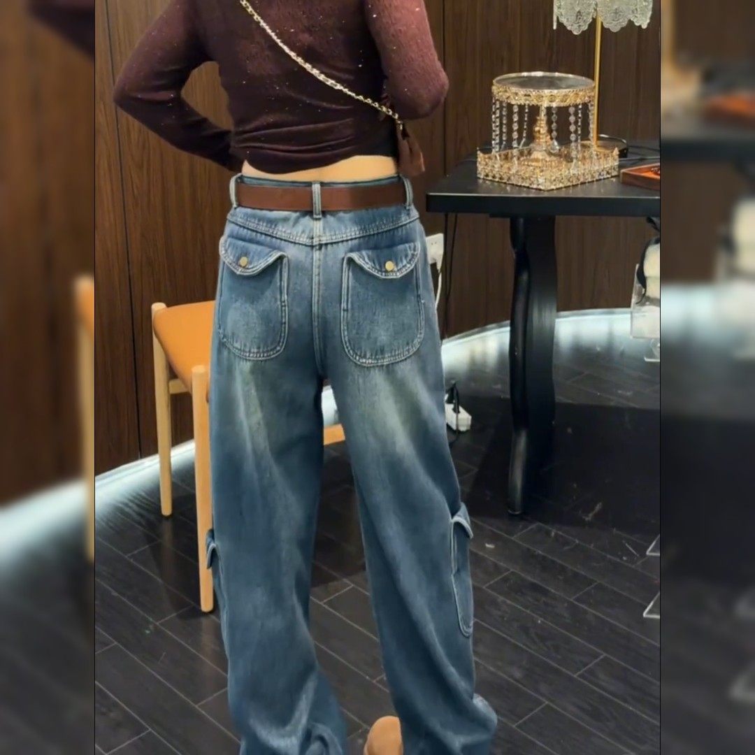 European-Style Plus-Size Workwear Knife-Cut Long Pants for Women, 2026 Spring New Style, Pear-Shaped Body Slimming Trendy Versatile Jeans