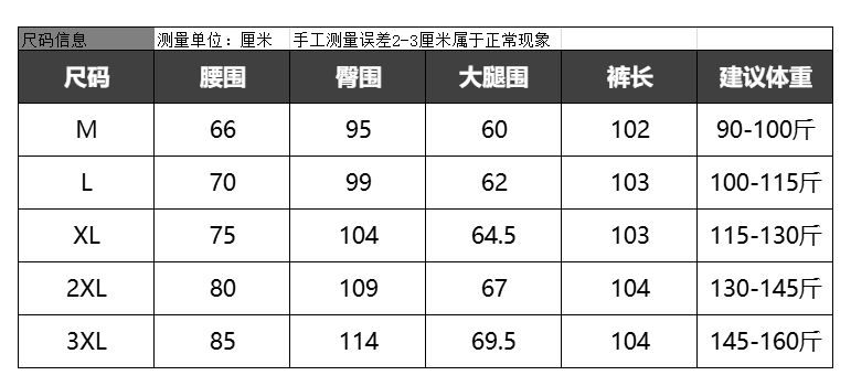 Outseam (cm) 99 cm 101.5 cm 104 cm 106.5 cm 109 cm