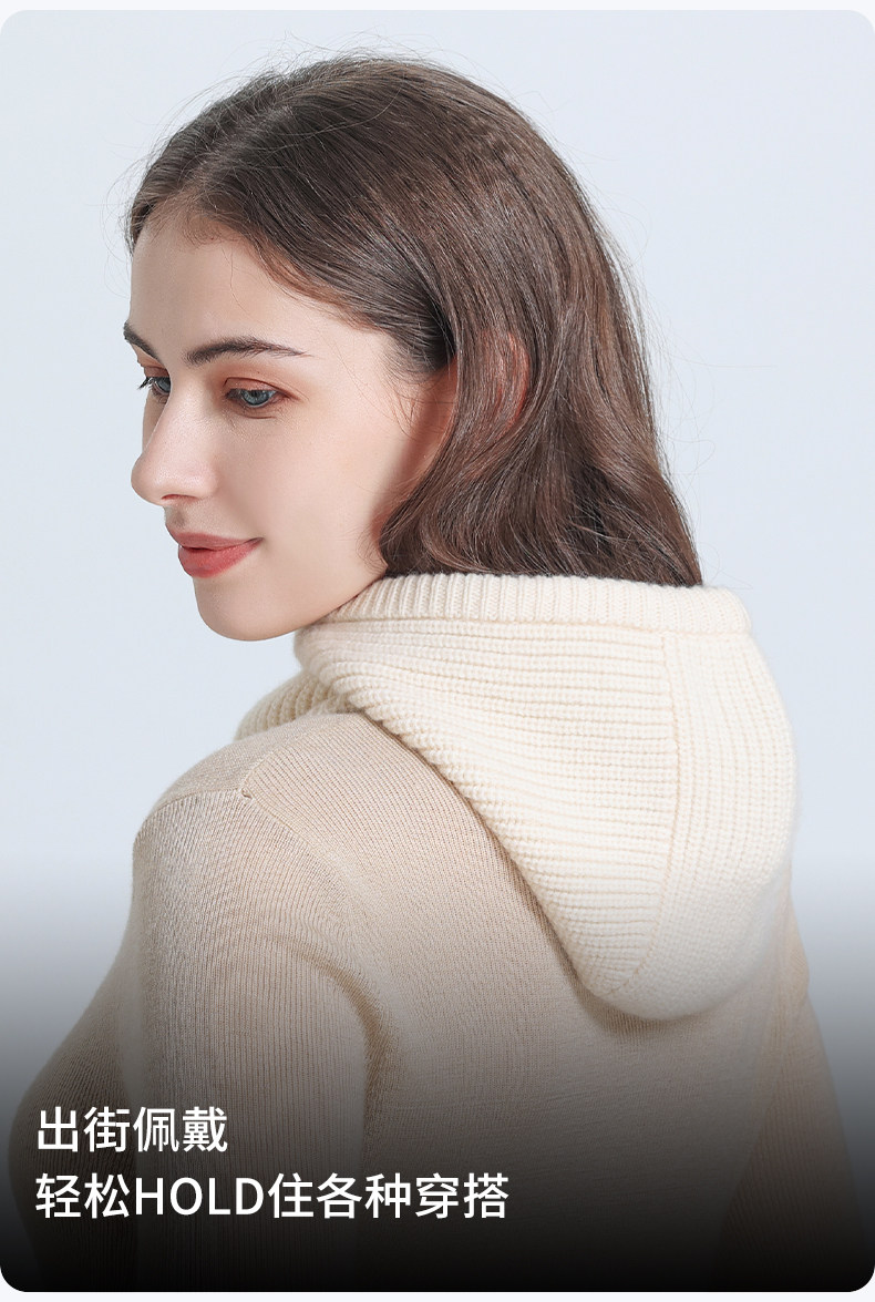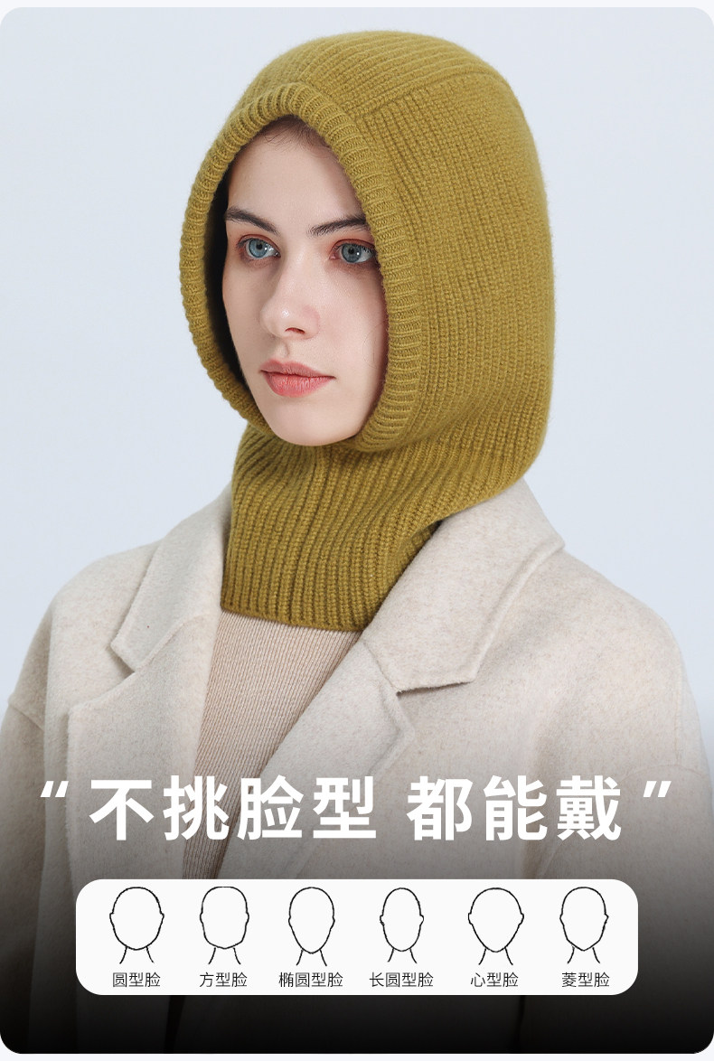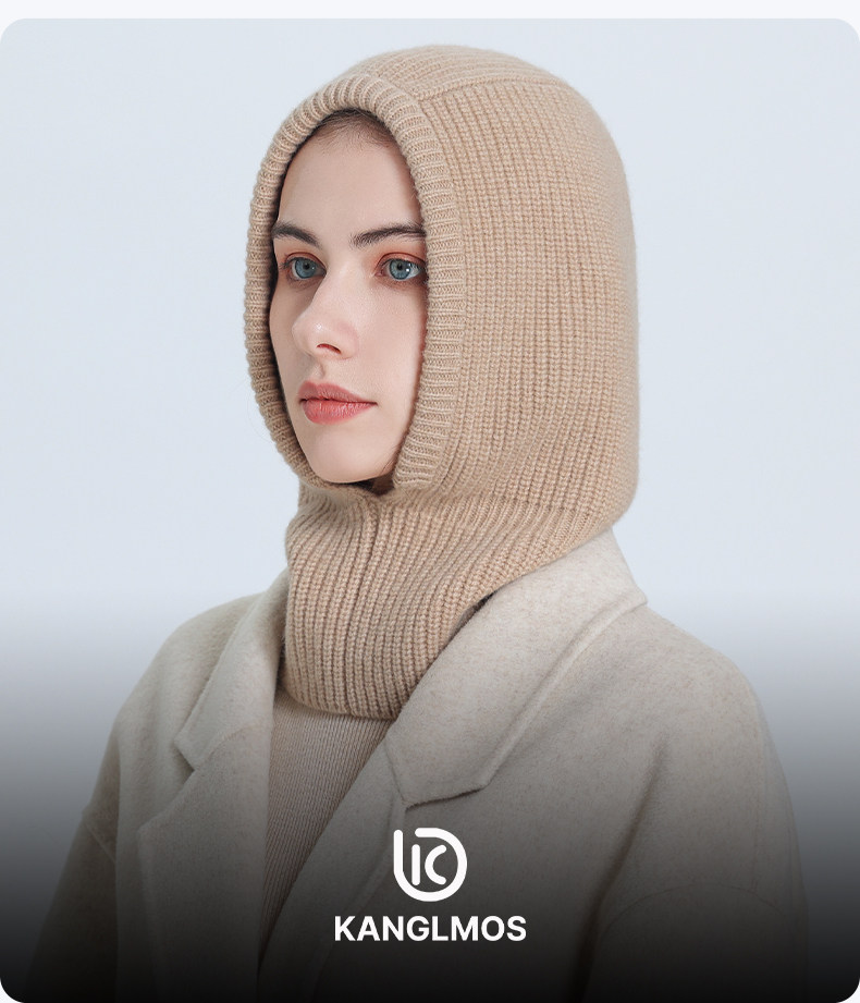 Kanglmos Pure Wool Knitted Pullover Hat for Women, Integrated Scarf Hat, Autumn and Winter Warm Ear Protection Scarf with Hood