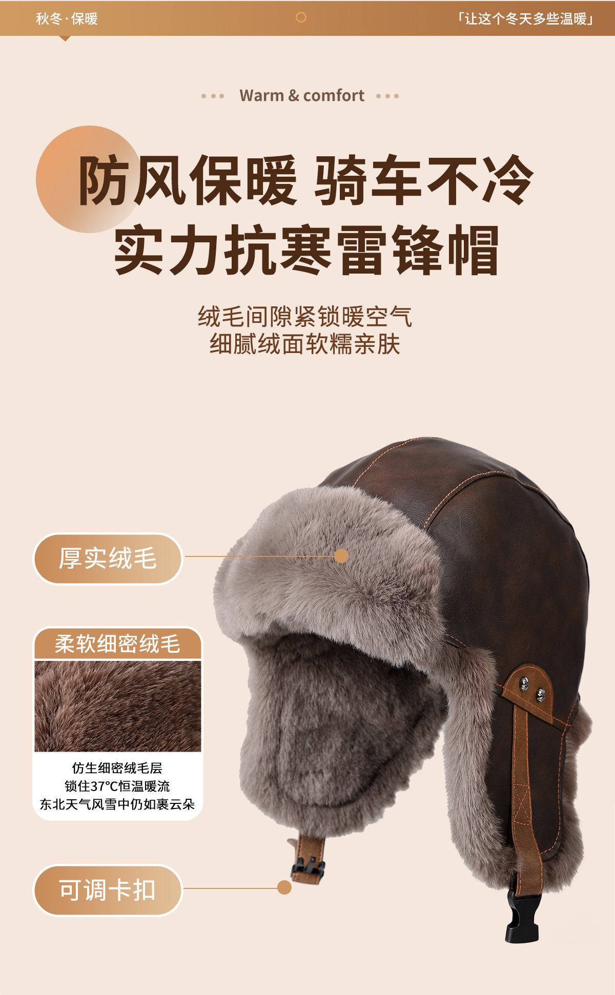 Men's Winter Hat with Fleece Lining, Thickened for Warmth, Cold-Proof for Northeast, Suitable for Cycling, Ear-Protecting, Windproof Aviator Hat