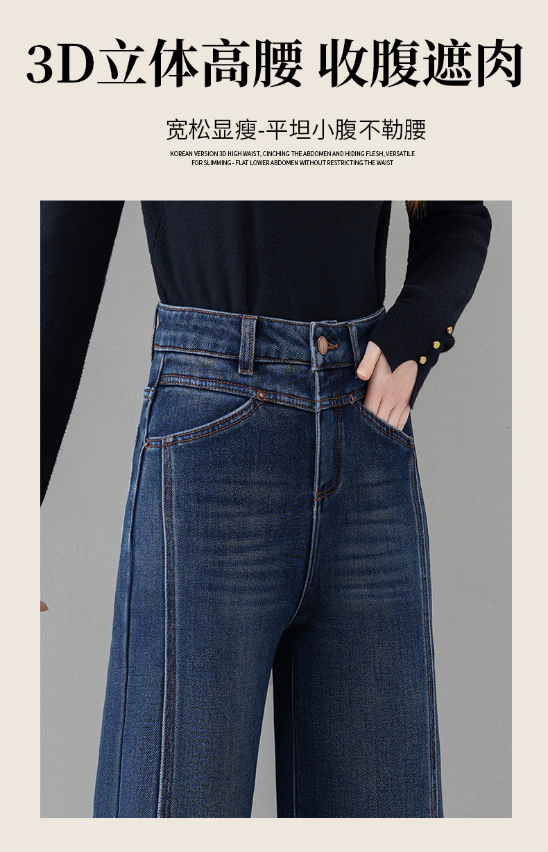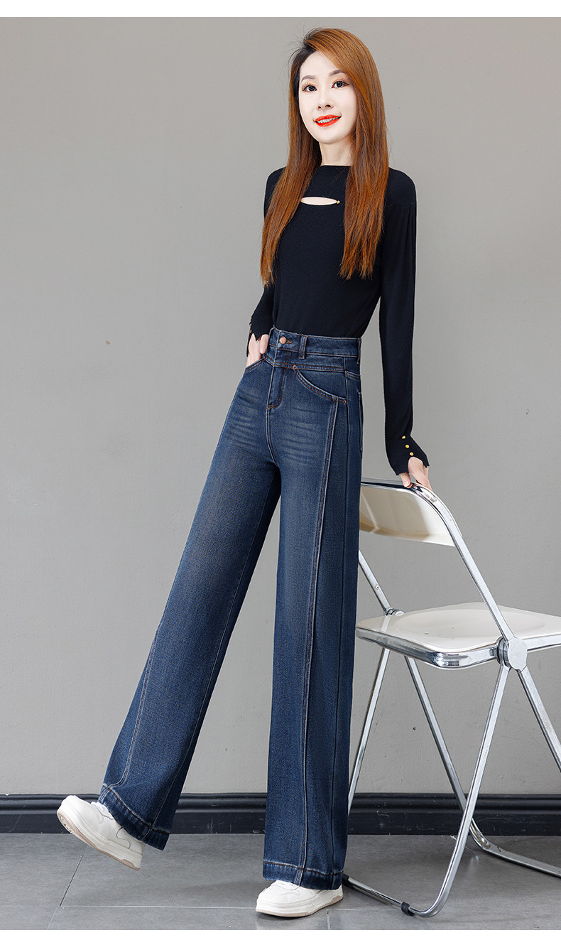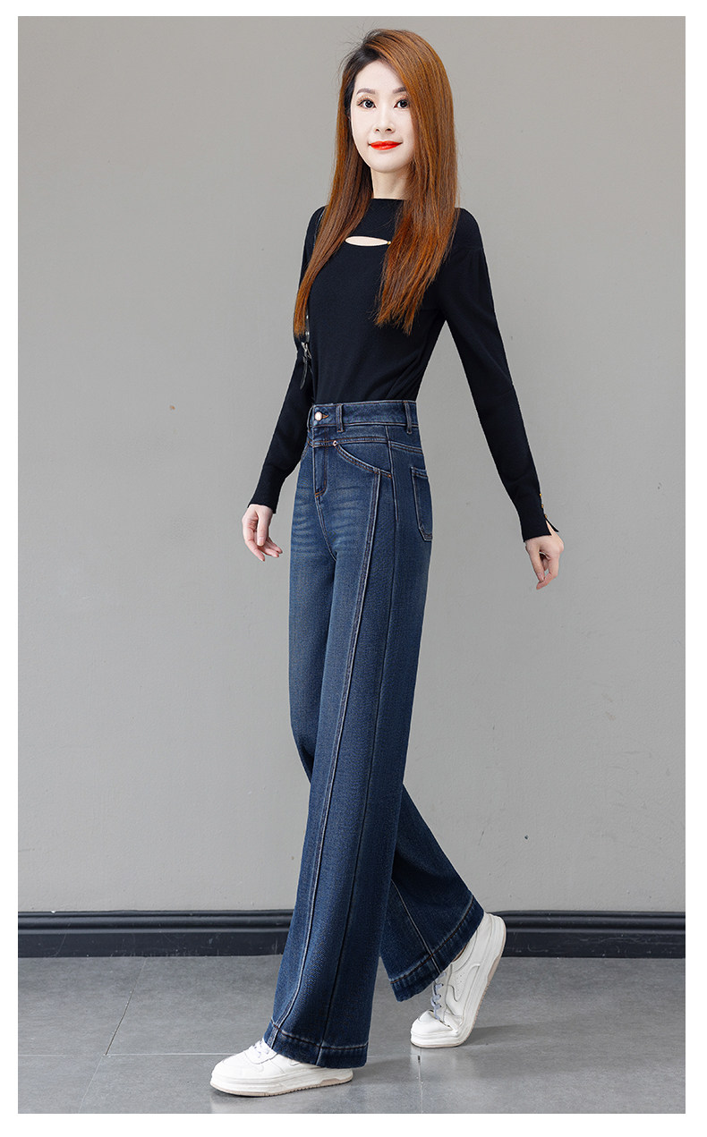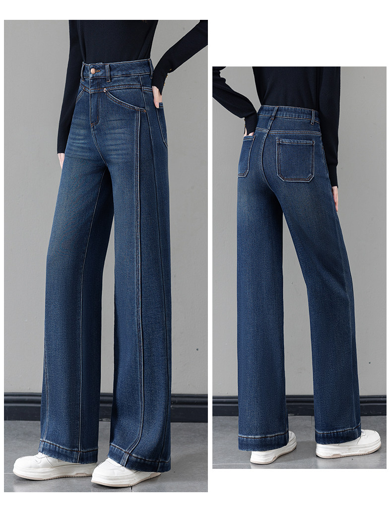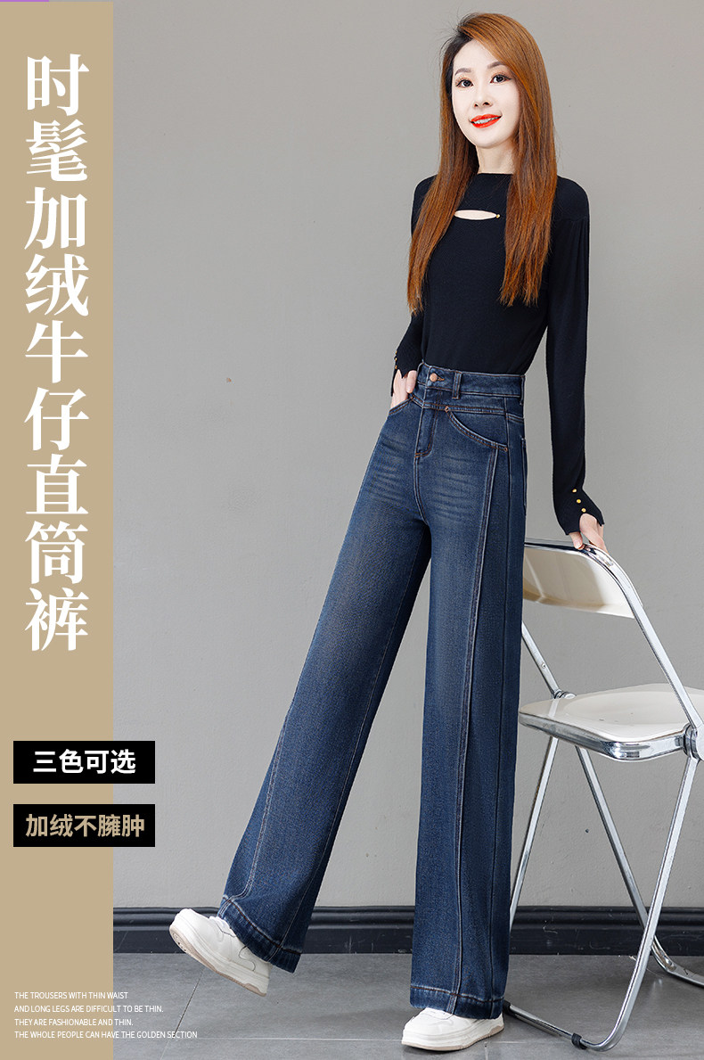 Retro blue velvet thickened wide-leg jeans for women 2025 autumn and winter new high-waisted versatile narrow-leg straight pants