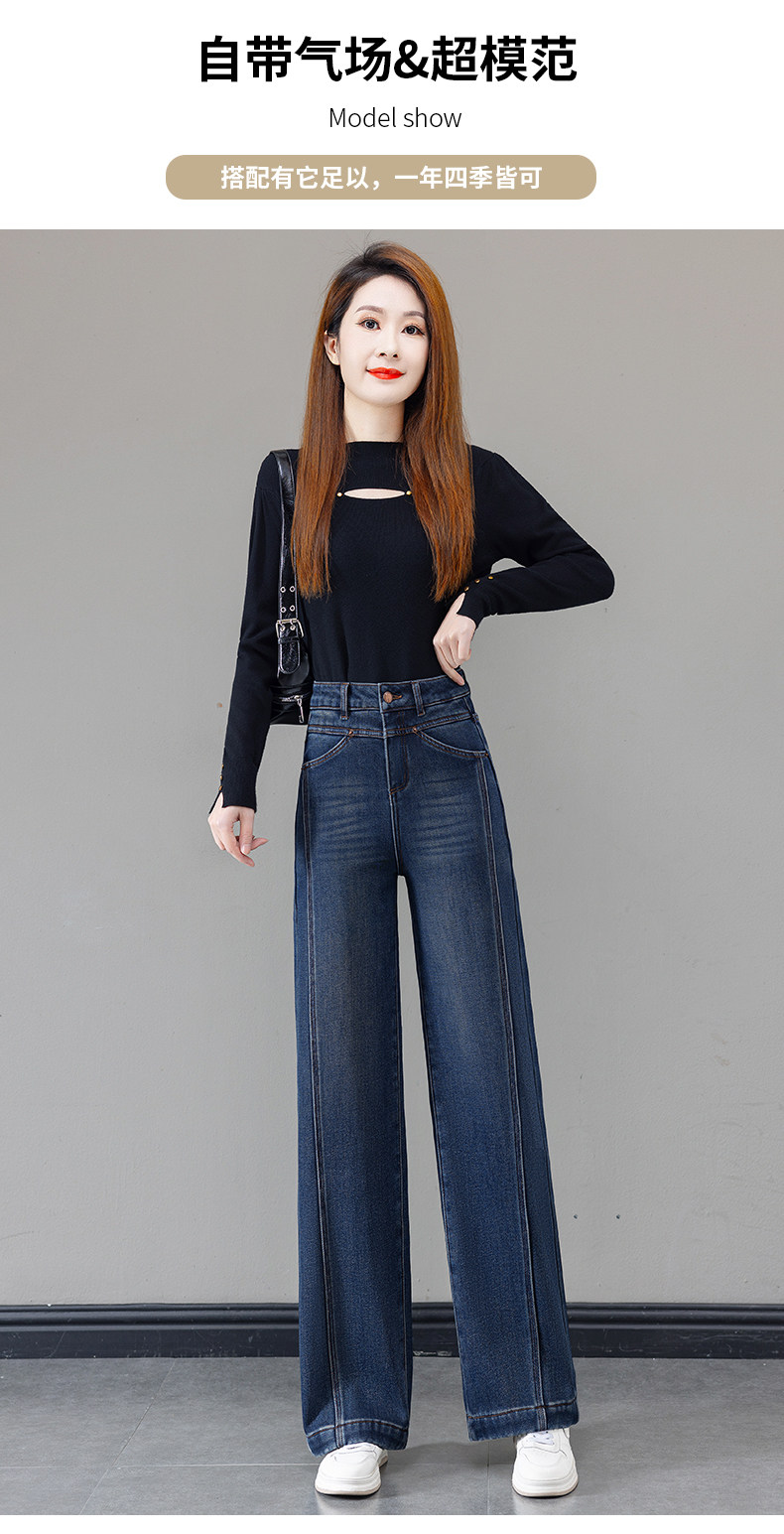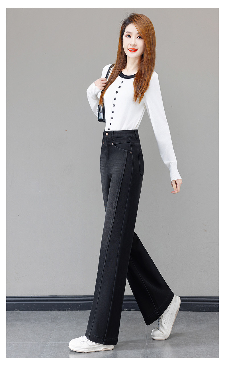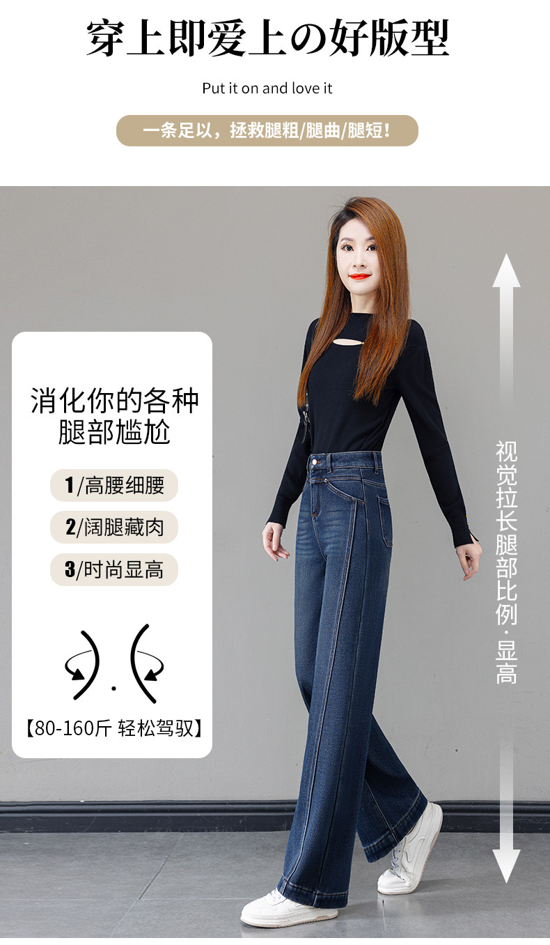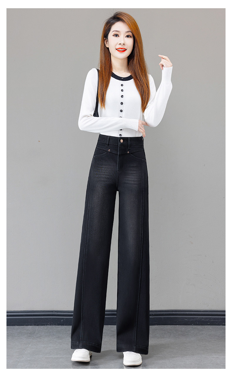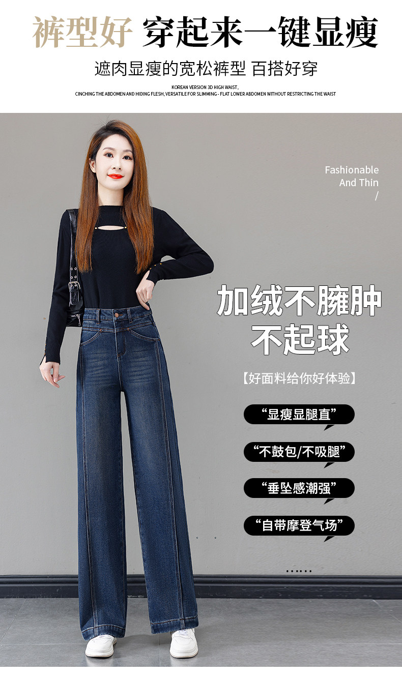 Retro blue velvet thickened wide-leg jeans for women 2025 autumn and winter new high-waisted versatile narrow-leg straight pants