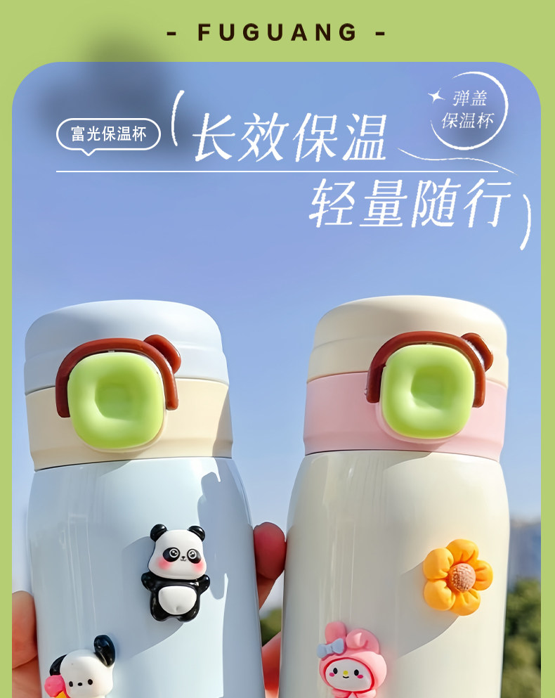 Fuguang Children's Thermos Cup for Girls, High-Looking Vacuum Portable Water Cup with a Pop-Up Lid, New Model Student Cup with Lid