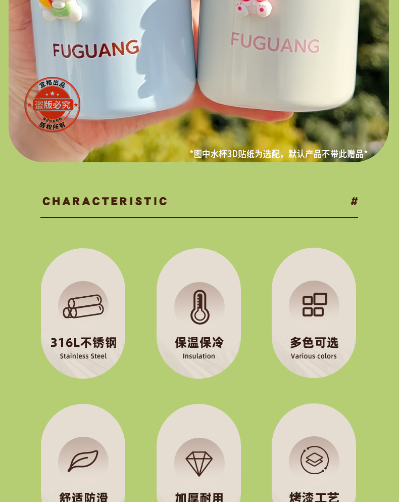 Color Classification Blue 300ml (Upgraded 316L Liner + Portable Pop-Up Cover + Lock + Free Engraving),Pink 300ml (Upgraded 316L Liner + Portable Pop-Up Lid + Lock + Free Engraving),Blue 300ml (Upgraded 316L Liner + Portable Pop-Up Cover + Lock + Free Engraving + Random 3D Sticker),Pink 300ml (Upgraded 316L Liner + Portable Pop-Up Cover + Lock + Free Engraving + Random 3D Sticker),Green 520ml [Upgraded 316L Liner + One-Click Pop-Up Lid + Portable Carrying Rope],Red 520ml [Upgraded 316L Liner + One-Click Pop-Up Lid + Portable Carrying Rope],Green 520ml [Upgraded 316L Liner + One-Click Pop-Up Lid + Portable Carrying Rope + Random 3D Stickers],Red 520ml [Upgraded 316L Liner + One-Click Pop-Up Lid + Portable Carrying Rope + Random 3D Stickers]