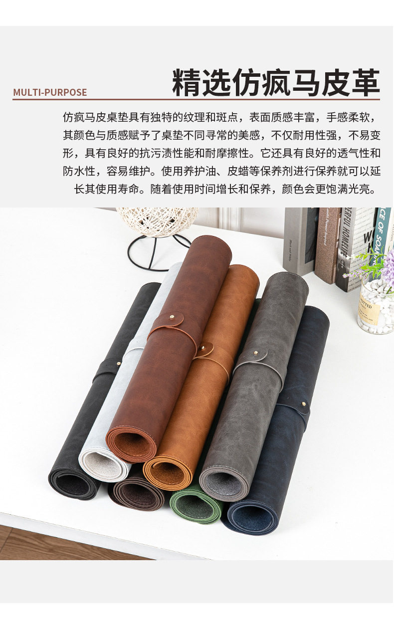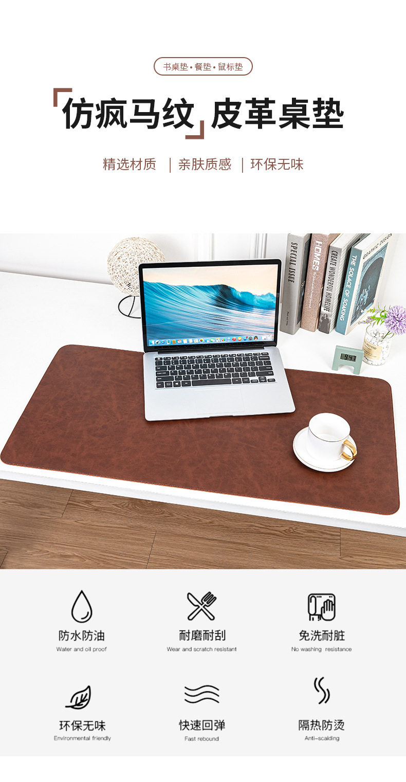 Retro Crazy Horse Pattern Leather Mouse Pad Extra Large Office Desktop Computer Desk Pad Keyboard Notebook Learning Desk Pad