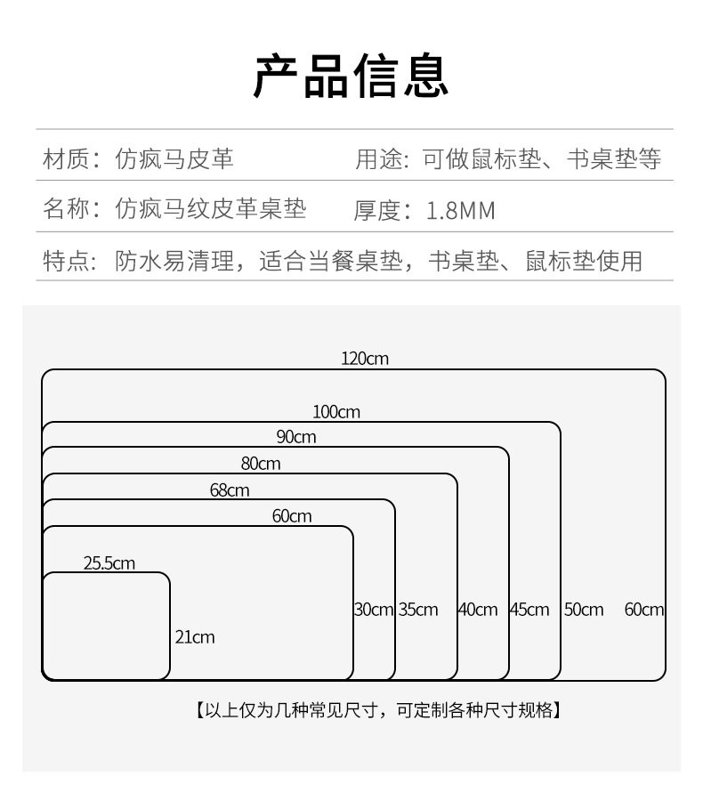 Specifications 60x30cm,60x40cm,70x40cm,80x40cm,90x40cm,90x45cm,100x50cm,100x60cm,120x60cm,140x70cm,For customized sizes, please contact customer service