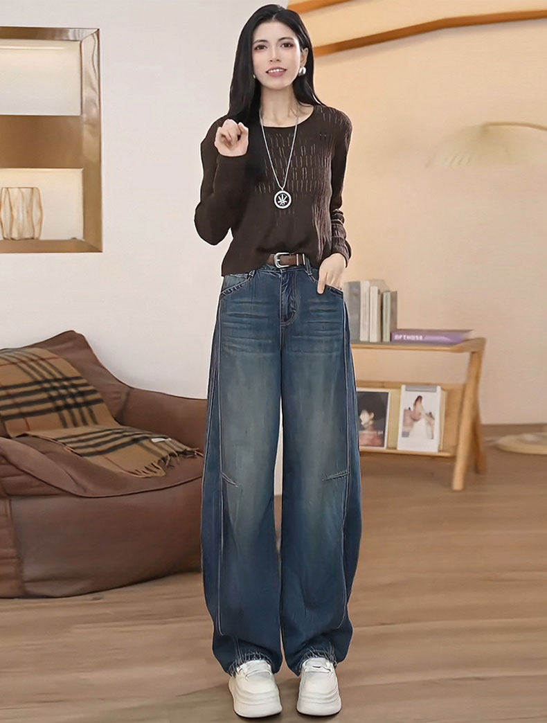 Sort by color Retro blue nine-point regular style,Retro blue trousers regular style,Retro blue nine-point plus velvet style,Retro blue trousers plus velvet