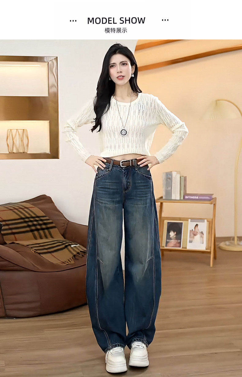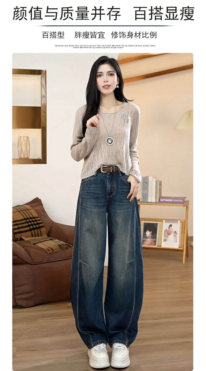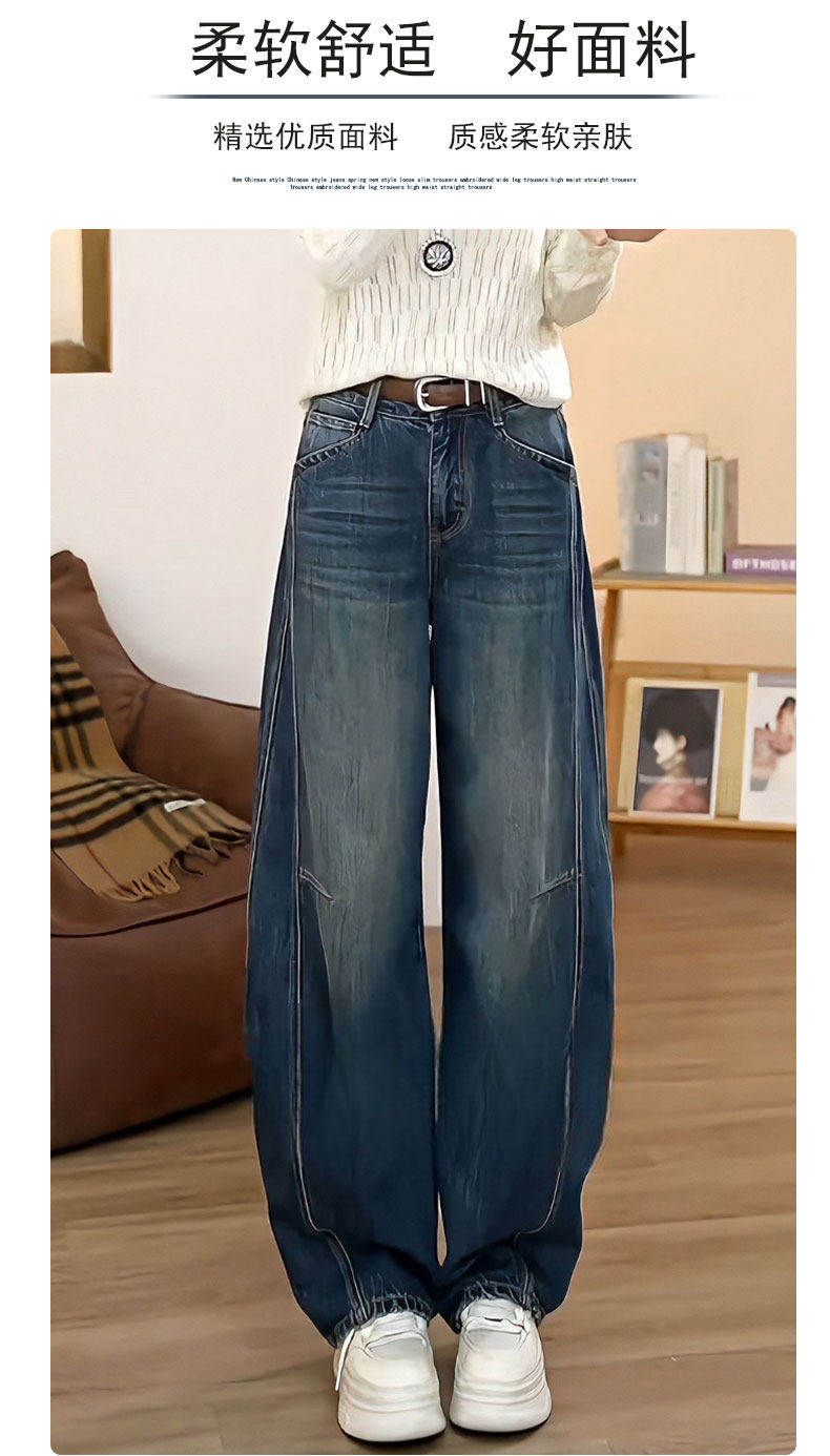 Velvet thickened retro blue denim scimitar pants for women 2025 autumn and winter new high-waisted pear-shaped figure sickle pants