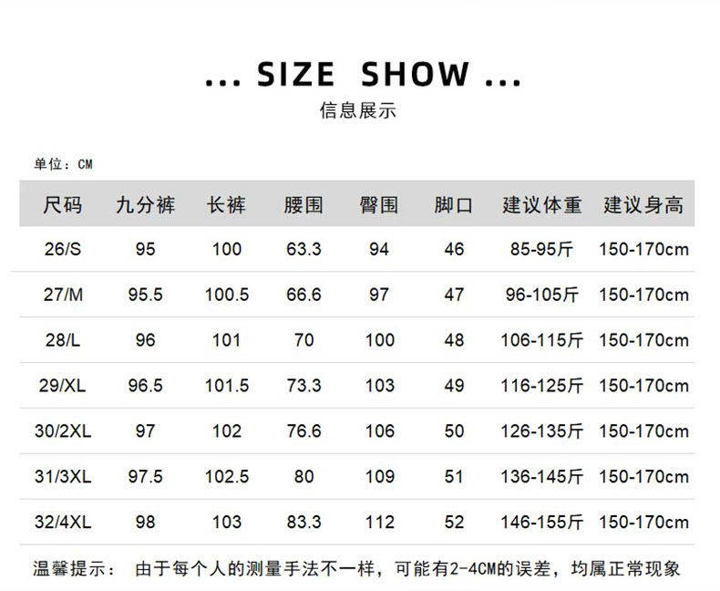 Size 26/S,27/M,28/L,29/XL,30/2XL,31/3XL,32/4XL