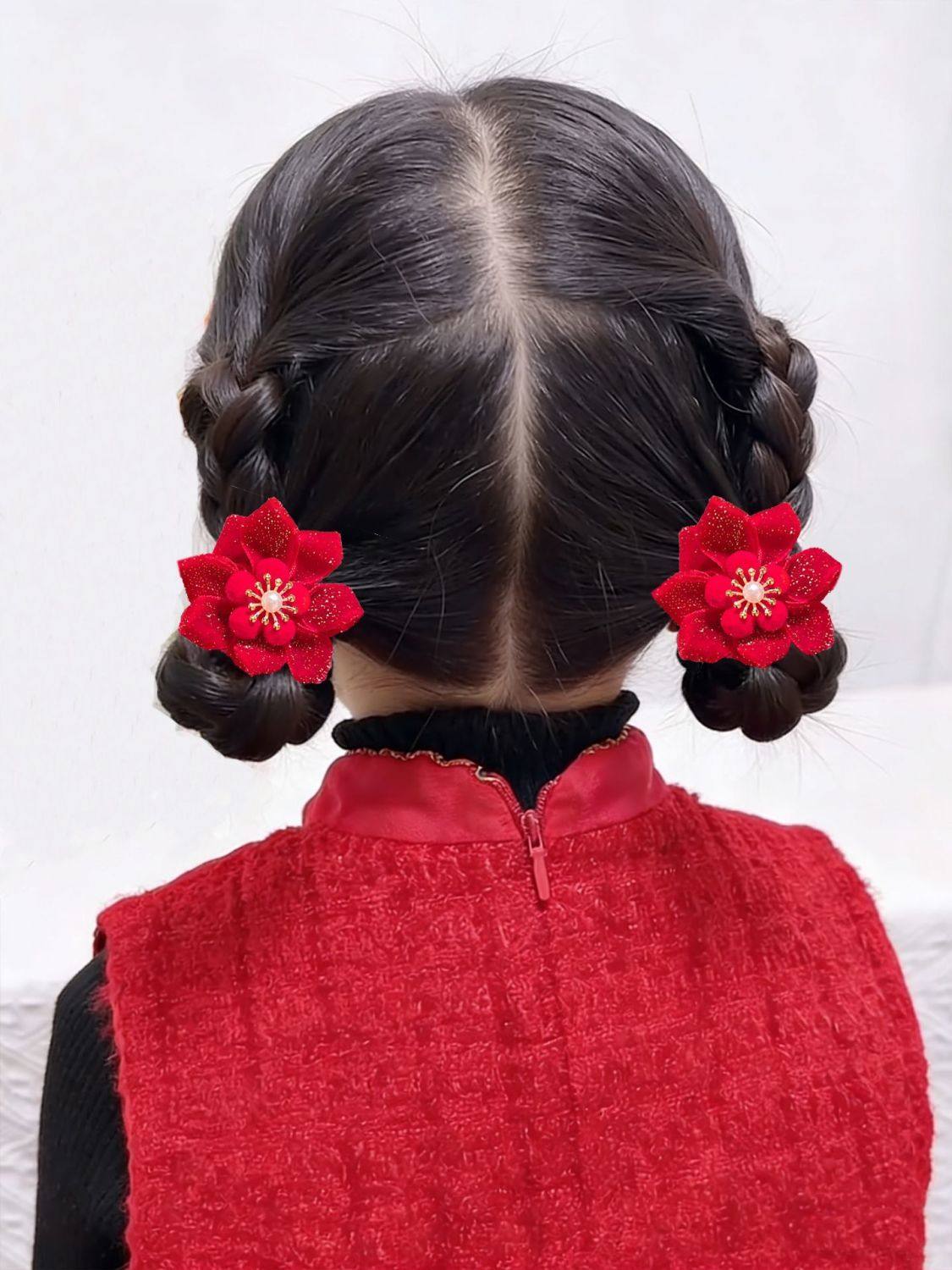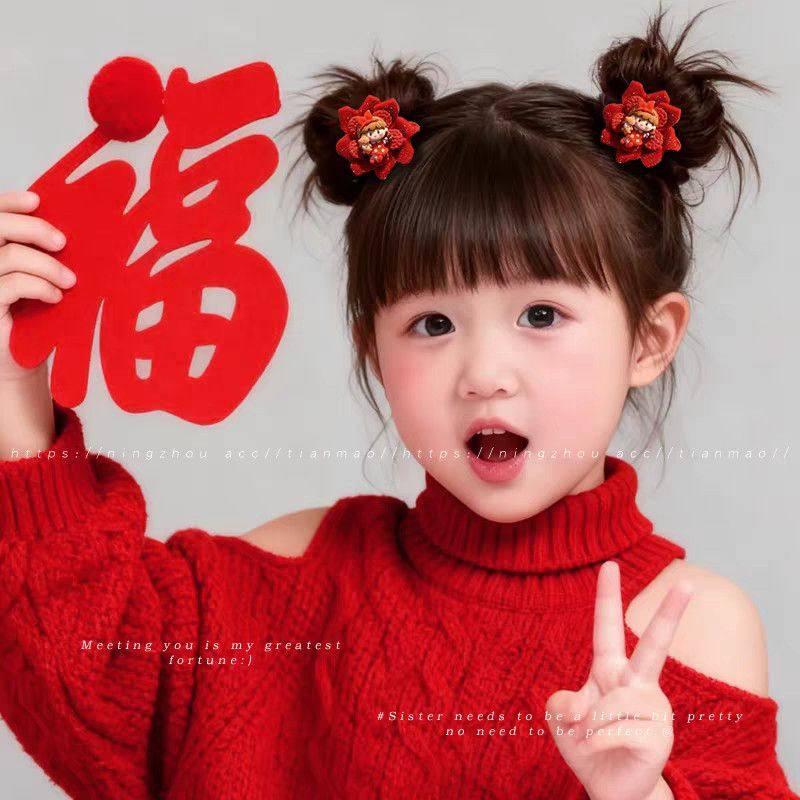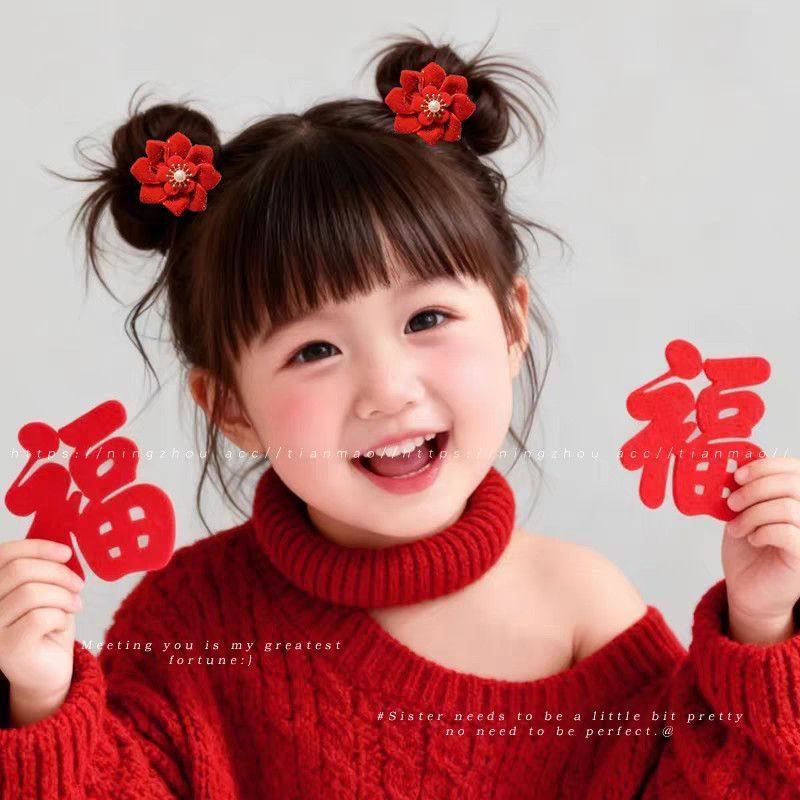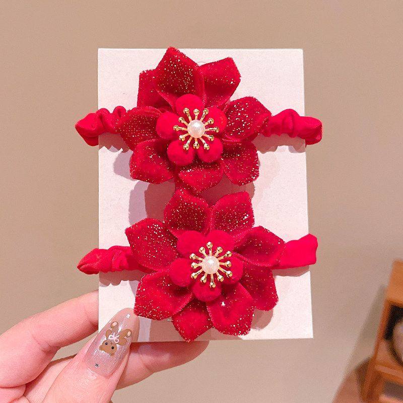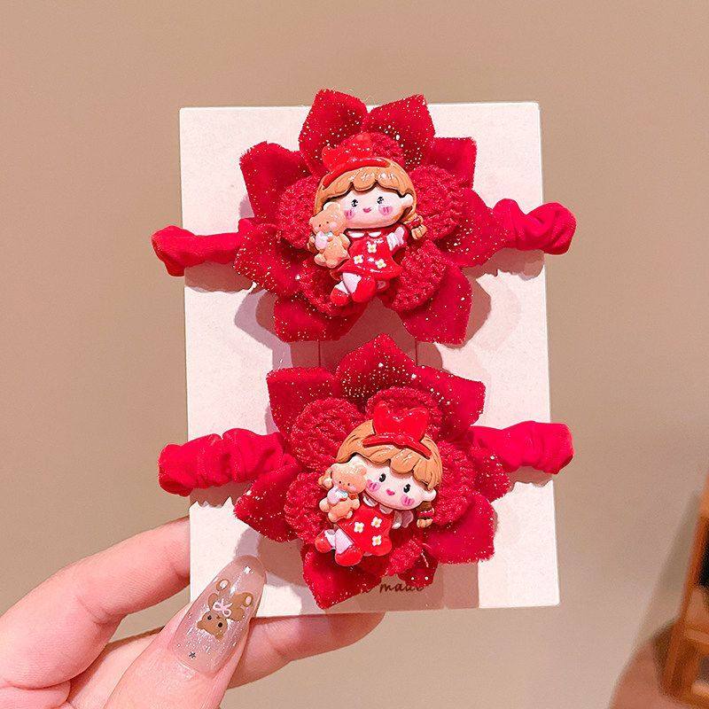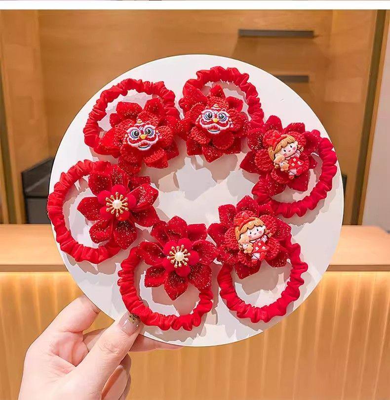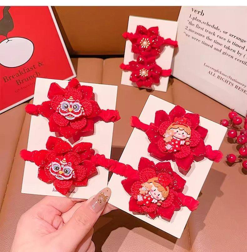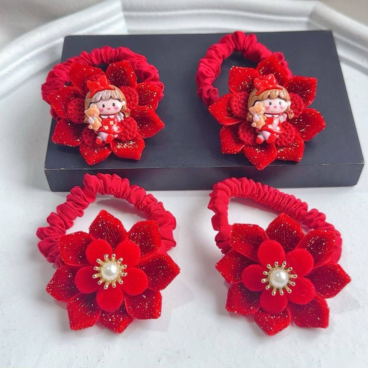Детские красные резинки для волос, не повреждающие волосы, с изображением маленьких львят, цветами в китайском стиле, милые и праздничные новогодние аксессуары для волос.