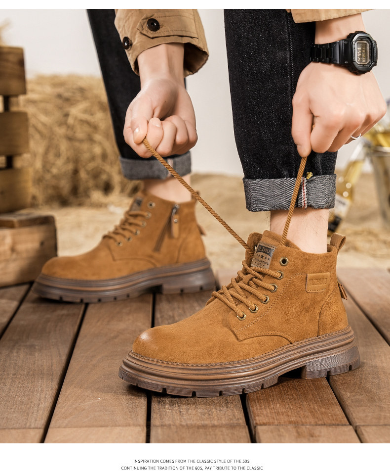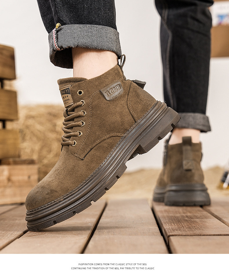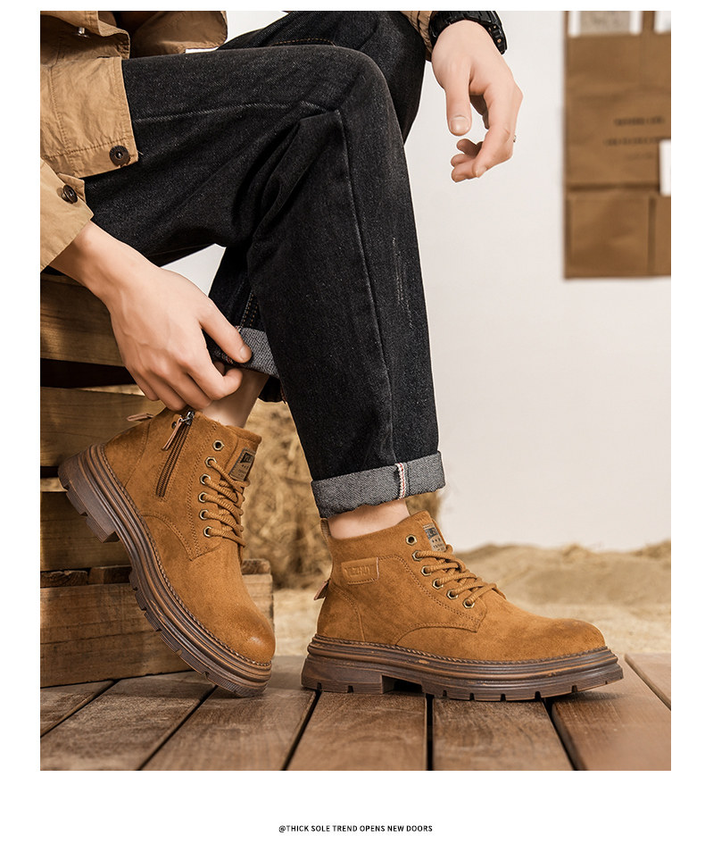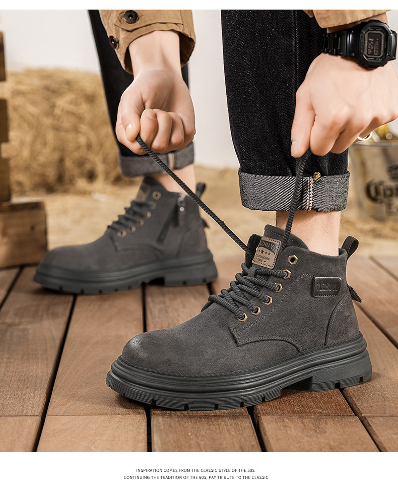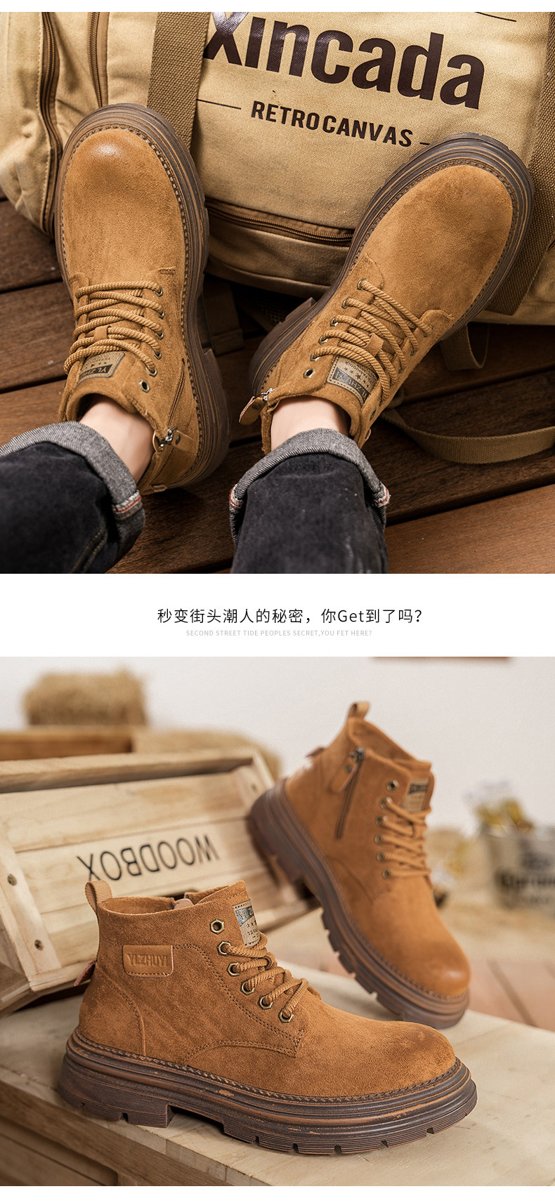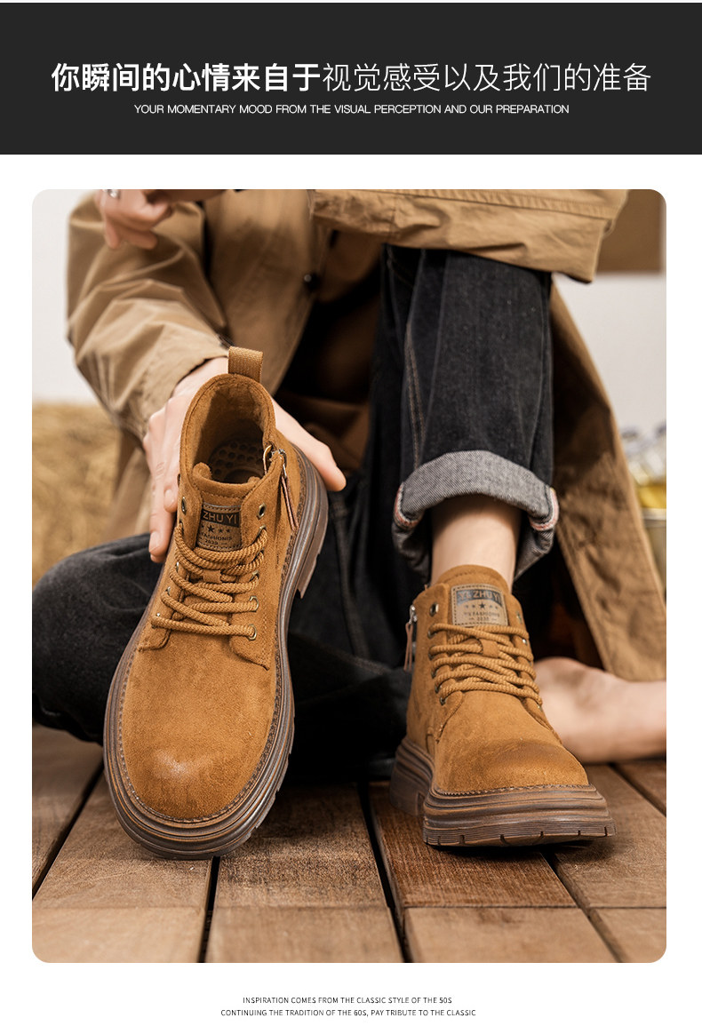 Men's Snow Boots, Winter British Retro Style, Mid-Top Work Boots, Yellow Boots, Fleece-Lined, Thickened, Warm, Cold-Resistant, Northeast Cotton Shoes
