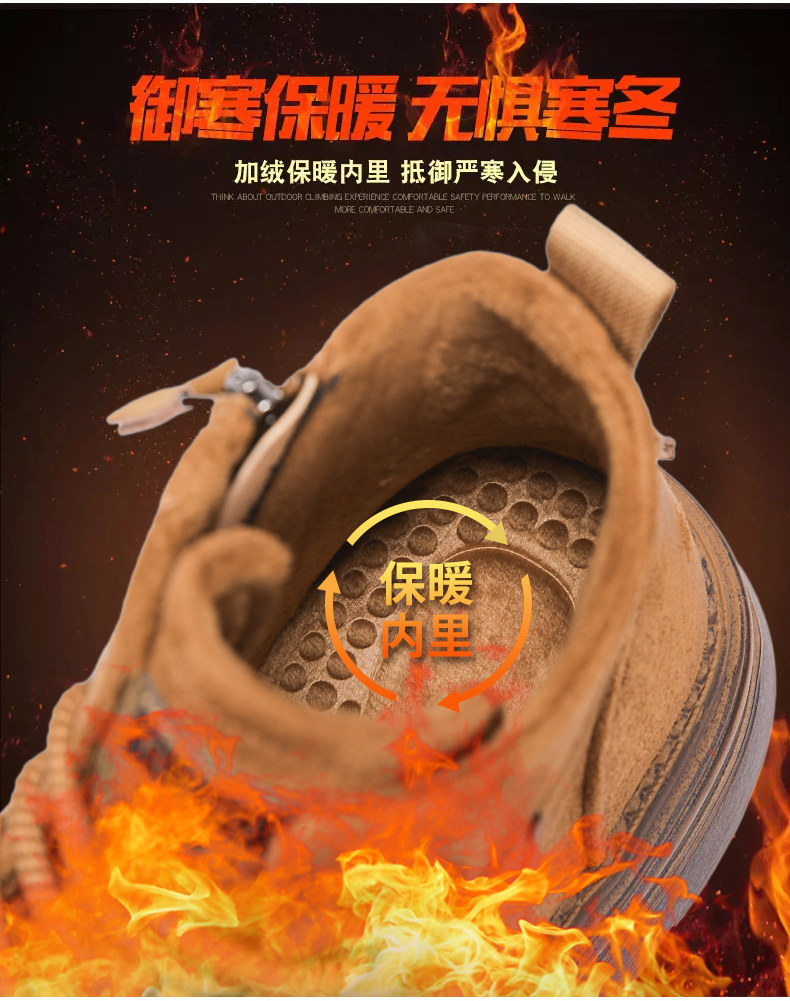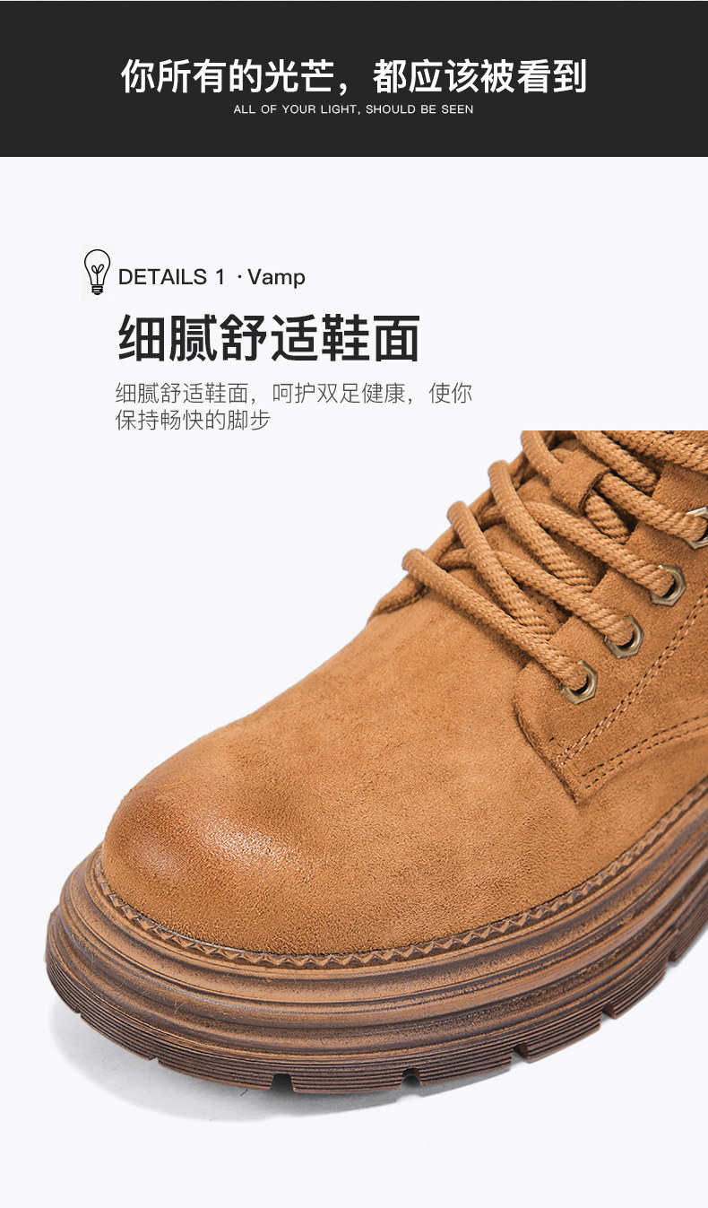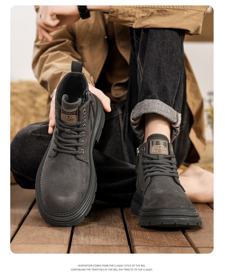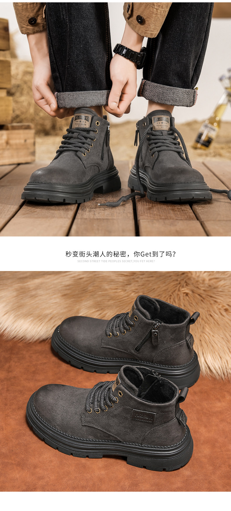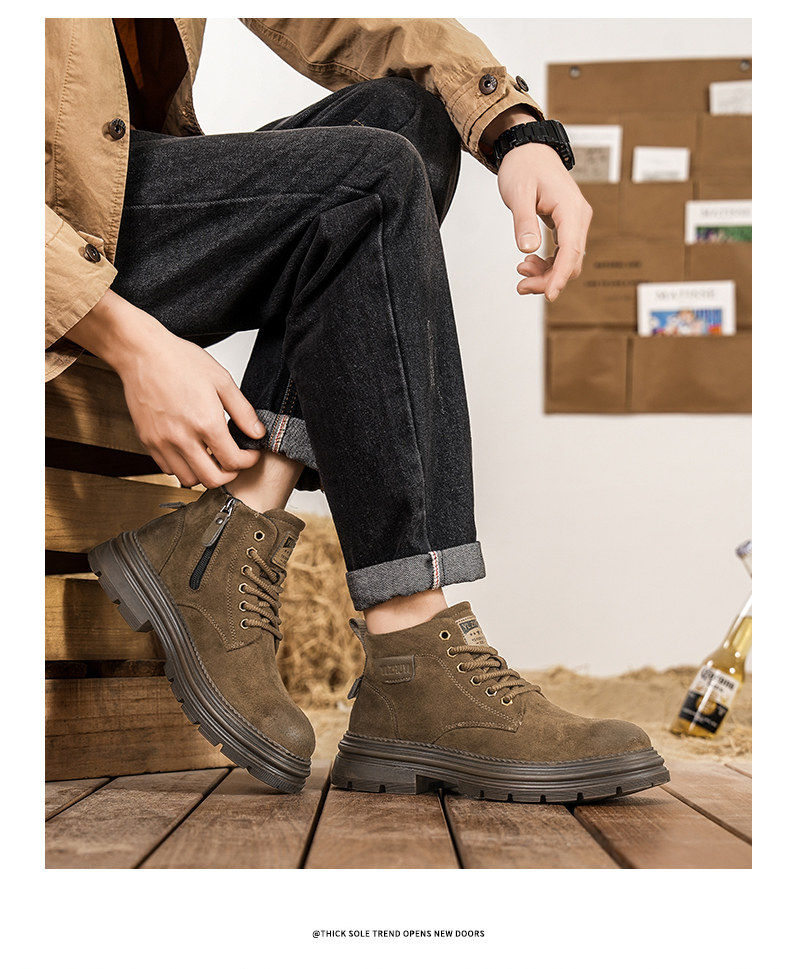 Men's Snow Boots, Winter British Retro Style, Mid-Top Work Boots, Yellow Boots, Fleece-Lined, Thickened, Warm, Cold-Resistant, Northeast Cotton Shoes