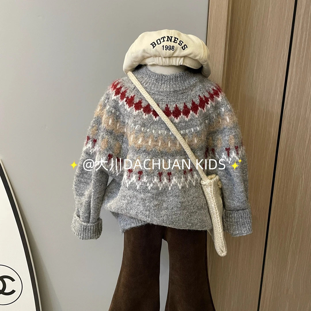 Girls' Super Good-looking Korean Sweater Heavy Industry Handmade Winter Style New Children's Fair Isle Jacquard Anti-pilling Sweater