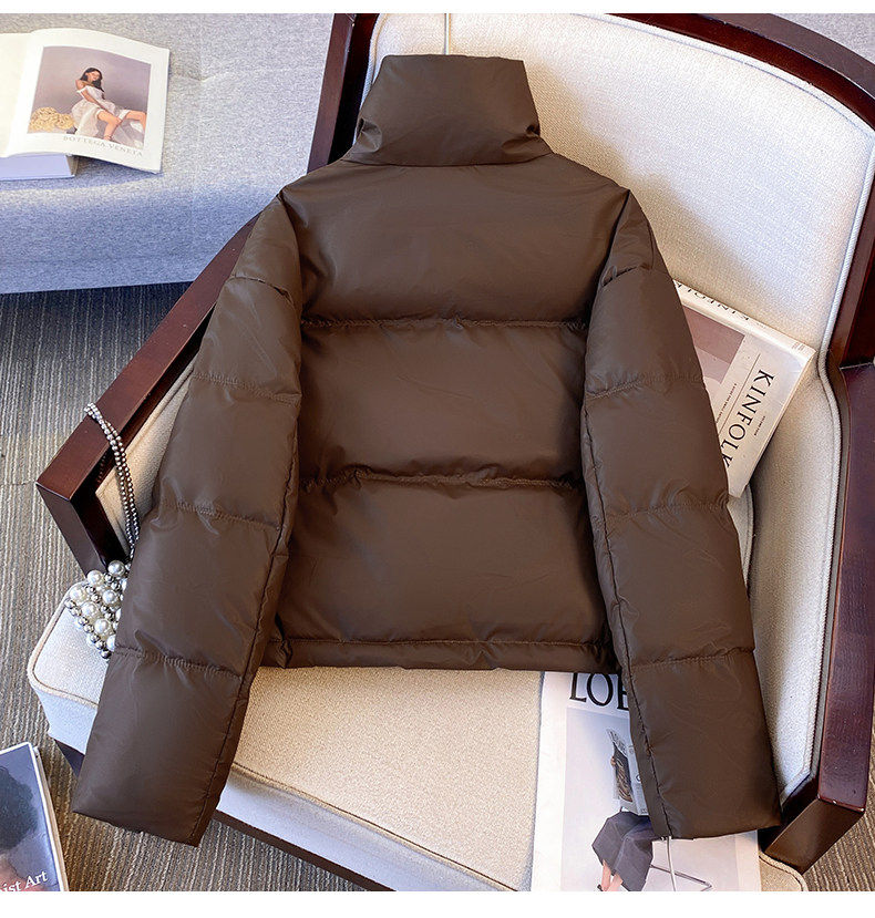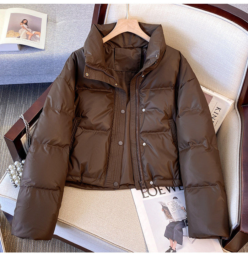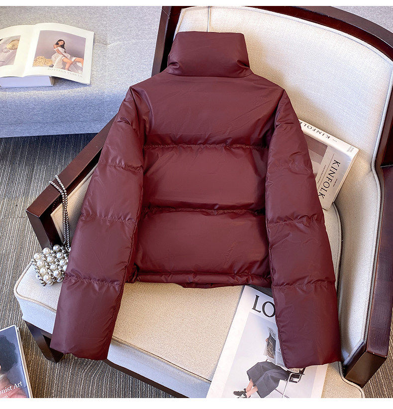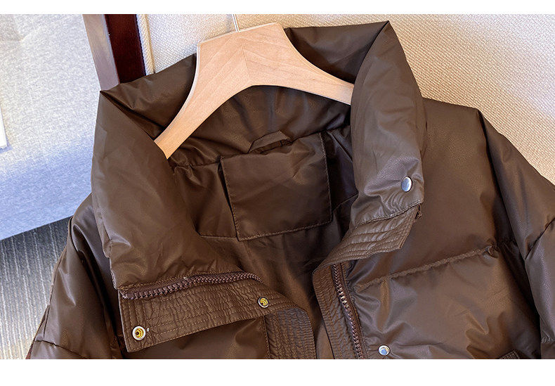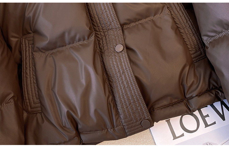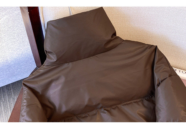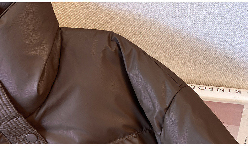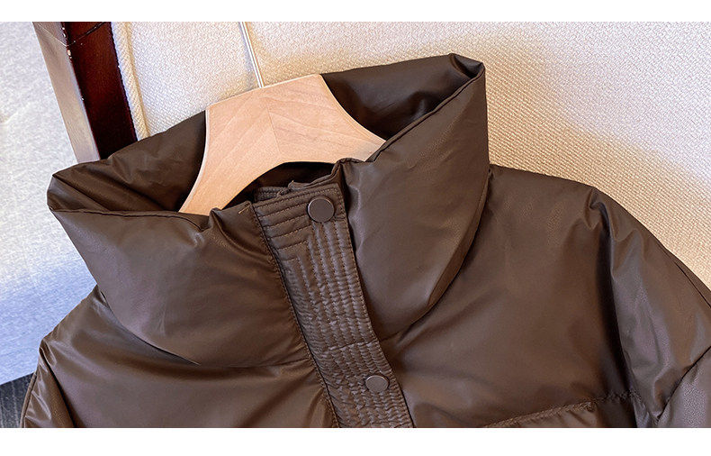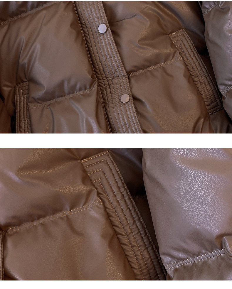 Maillard brown brown no-wash Pu leather down jacket women's short 2025 winter new small stand-up collar thick coat