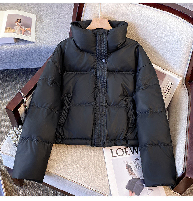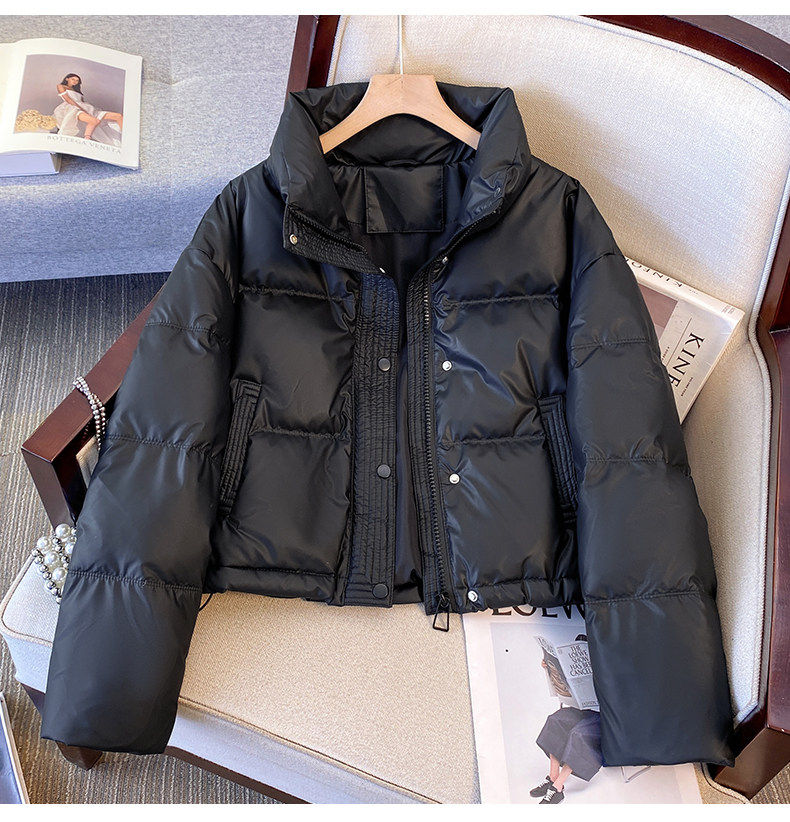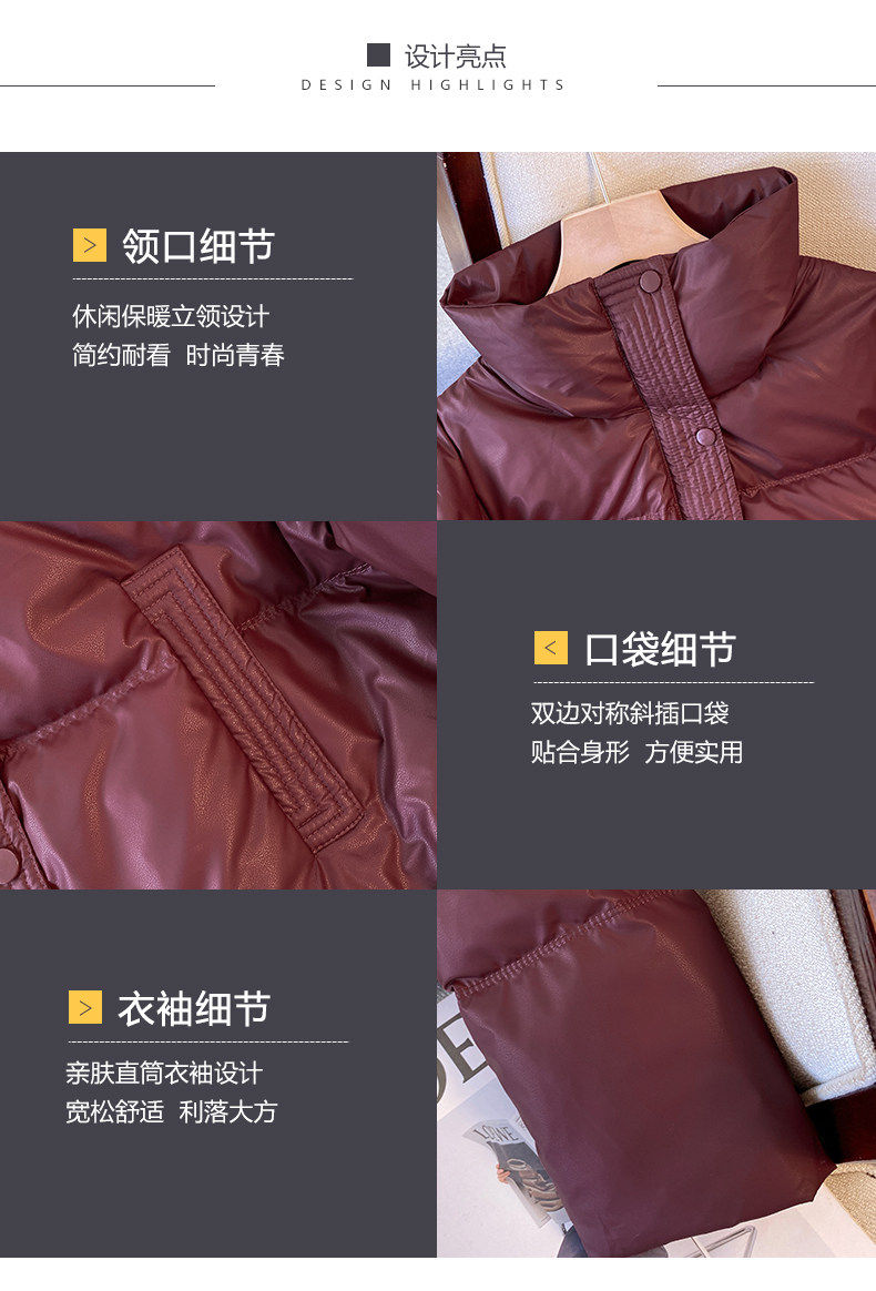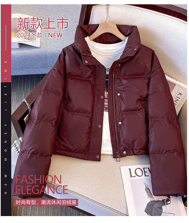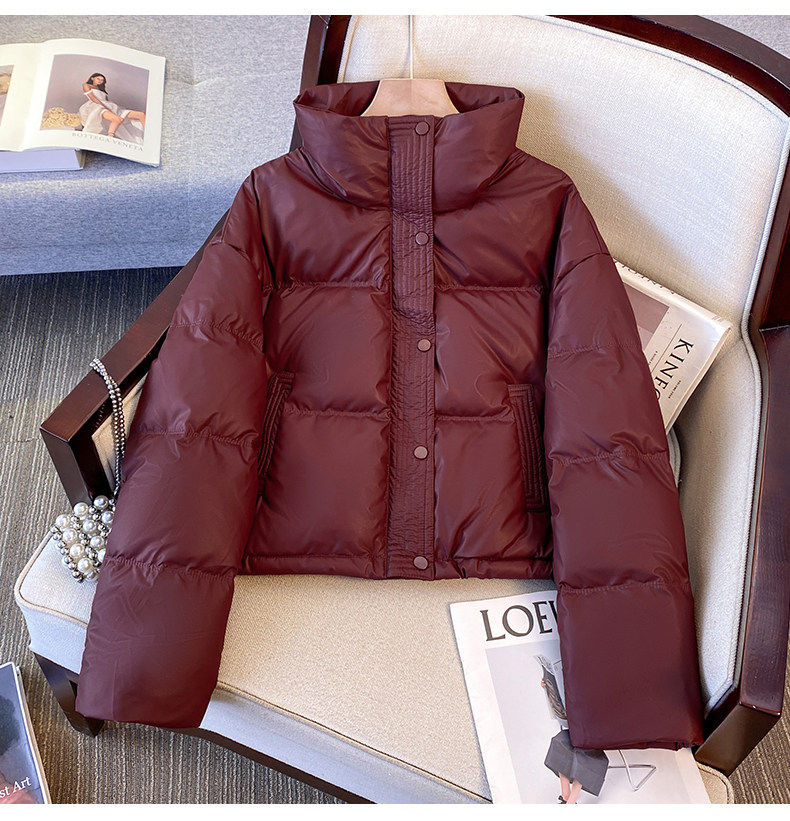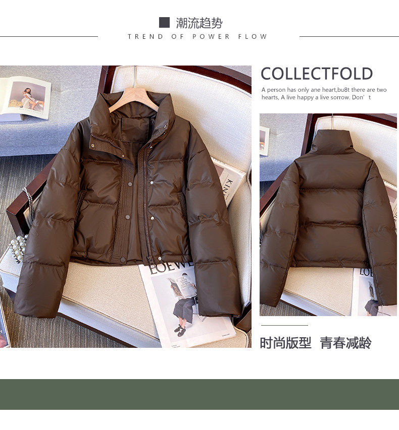 Maillard brown brown no-wash Pu leather down jacket women's short 2025 winter new small stand-up collar thick coat