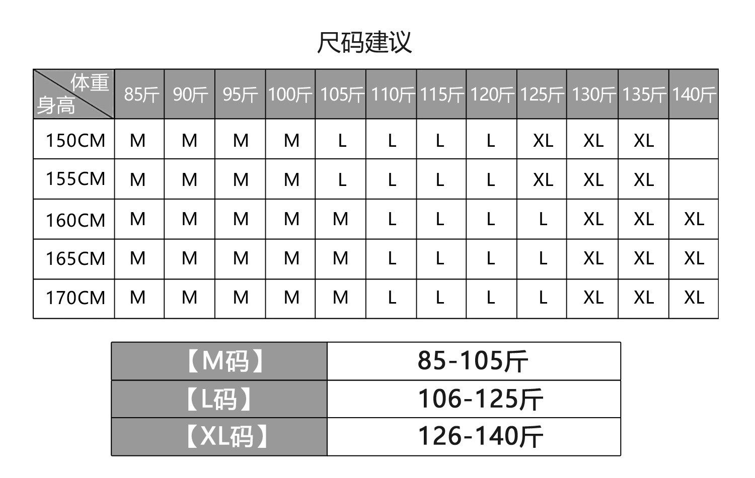 China (cm) 160-165/84-86 165-170 / 88-90 167-172 / 92-96 168-173 / 98-102 170-176 / 106-110
