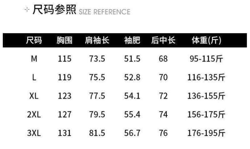 China (cm) 165 / 88-90 170 / 96-98 175 / 108-110 180 / 118-122 185 / 126-130
