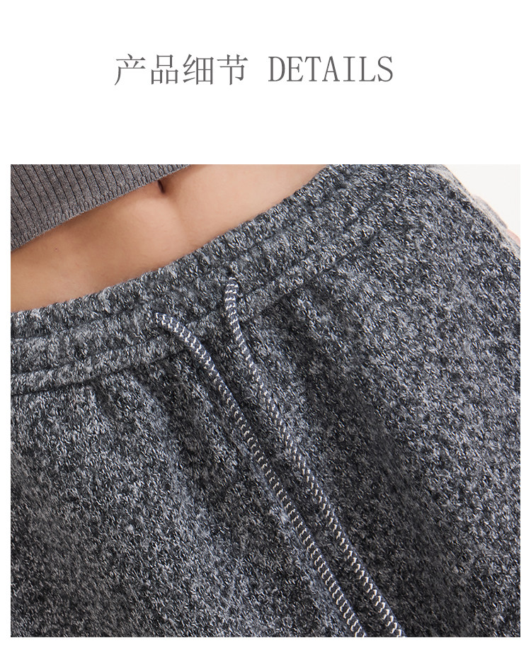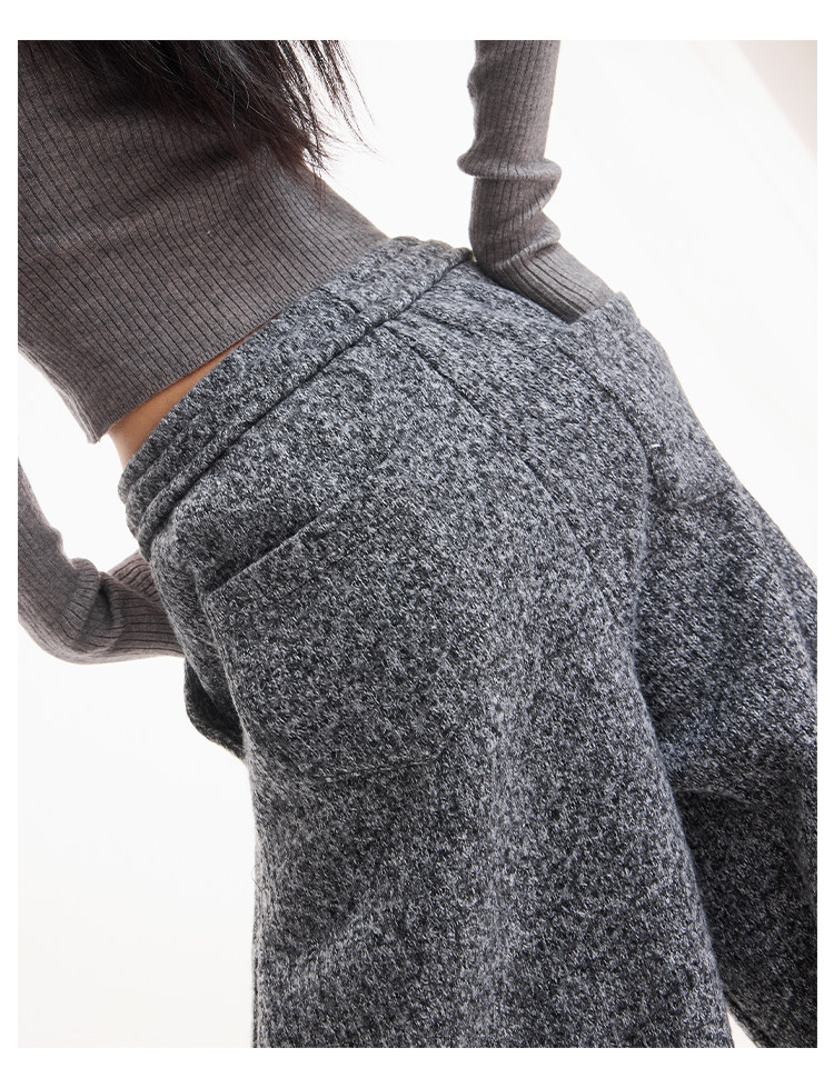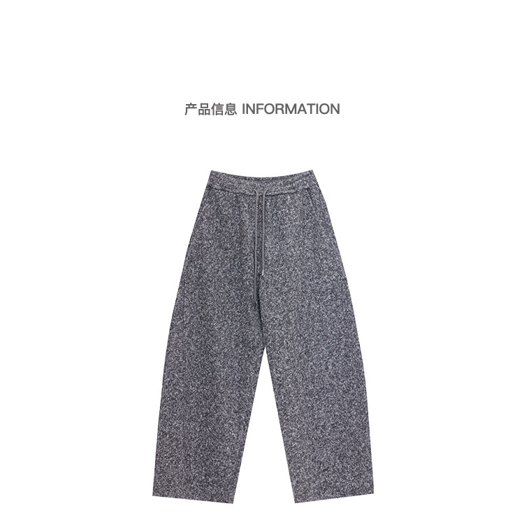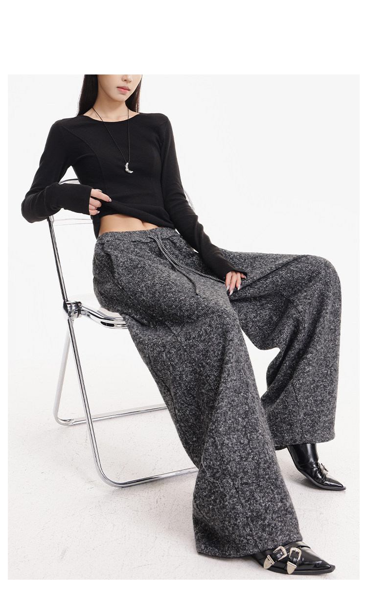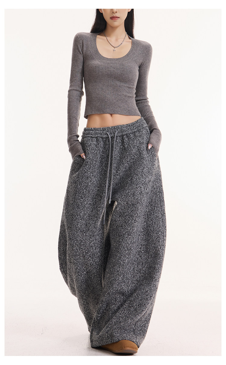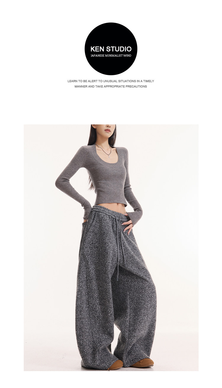 Kenabstudio Autumn and Winter New Gray Wide-Leg Casual Pants for Women, Thickened and Fleece-Lined, Elastic Waist Scimitar Pants