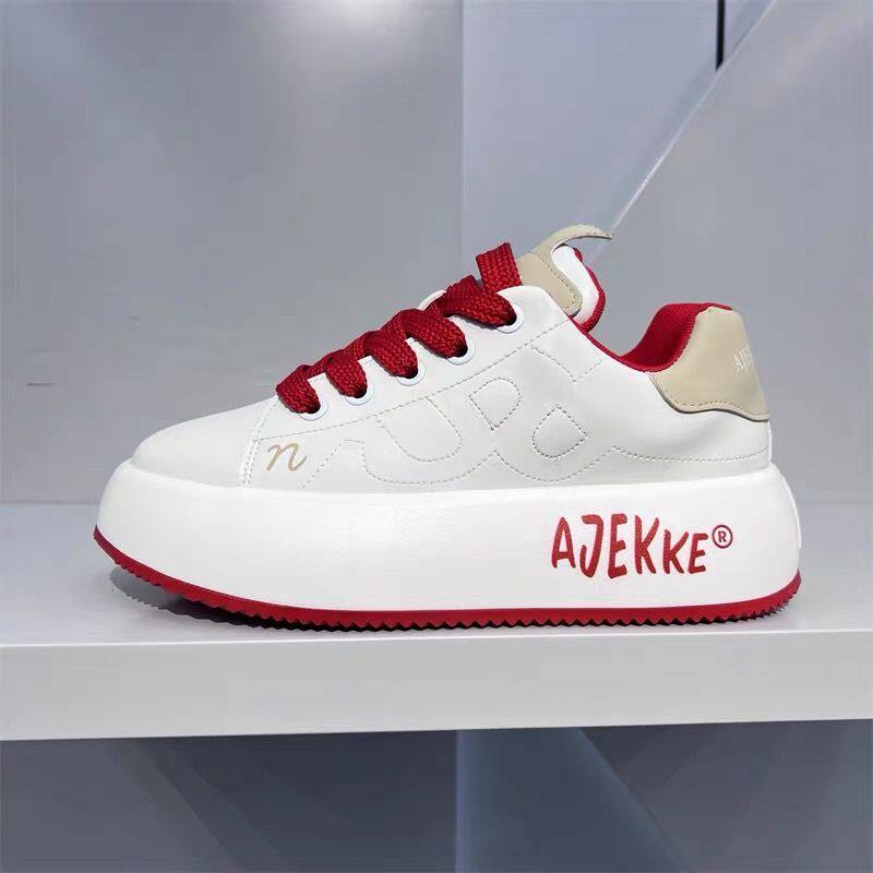 Shoes for junior high school boys, winter casual sports shoes, non-slip white shoes, soft soles, increased height, red Forrest Gump breadboard shoes