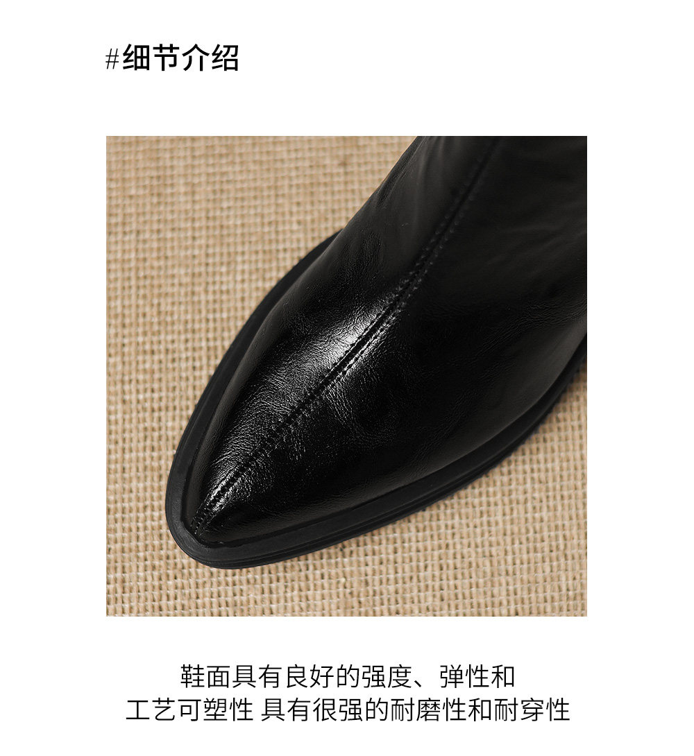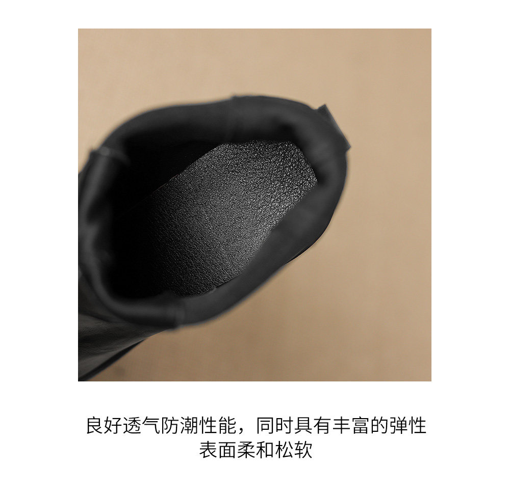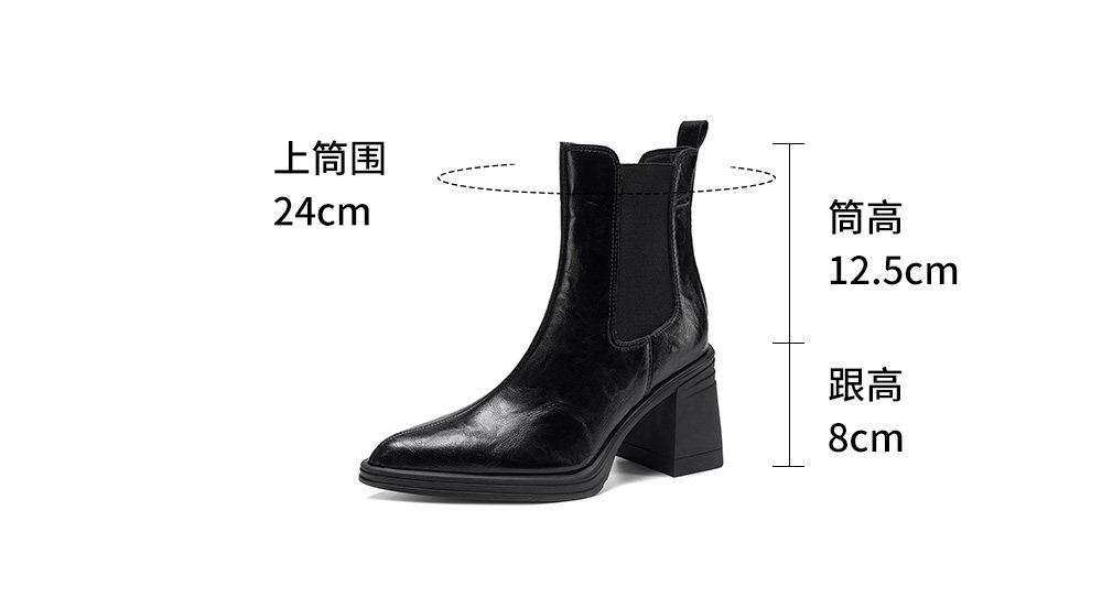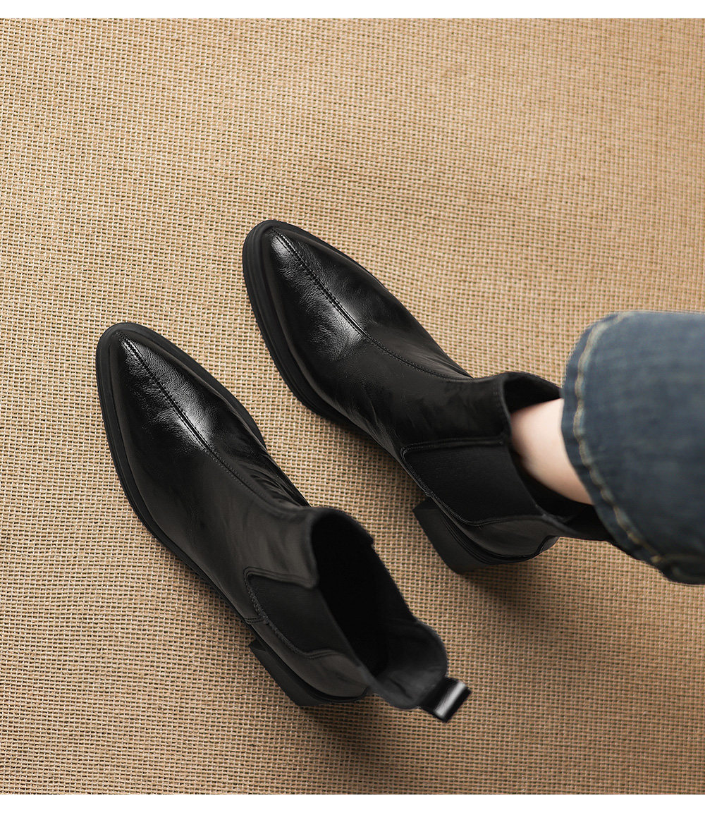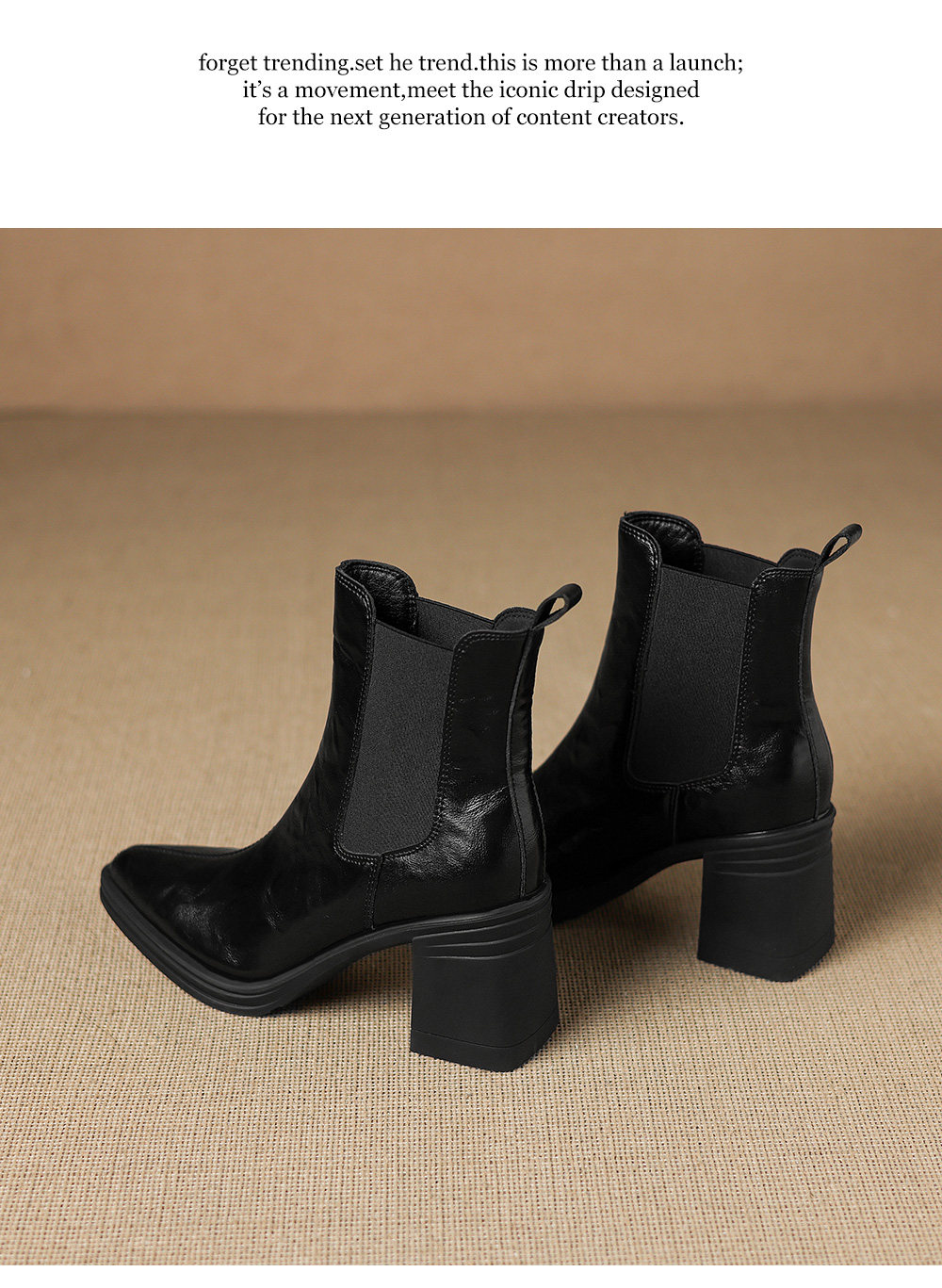 Genuine leather, good-looking, stylish, super popular, short boots for women, winter pointed-toe Chelsea coffee-colored thick-heeled high-heeled shoes