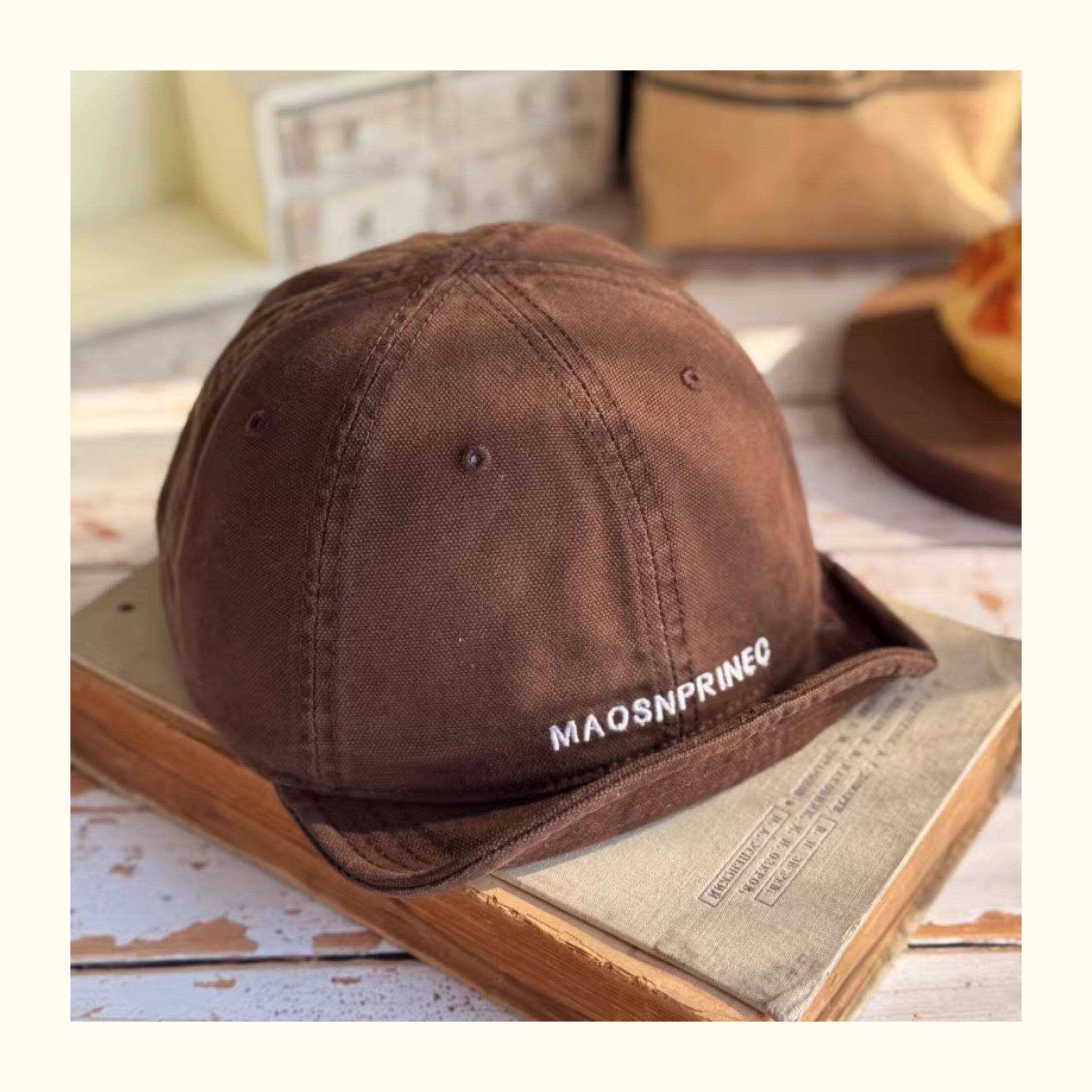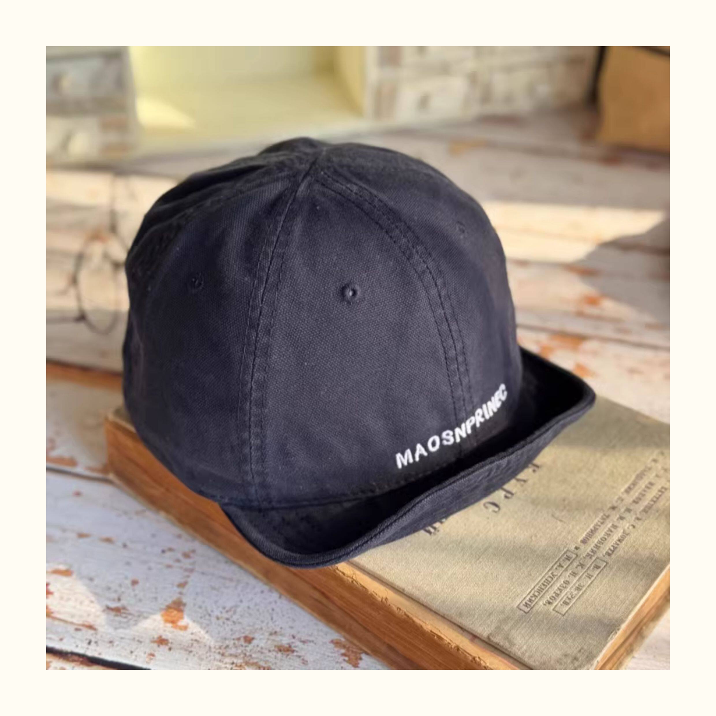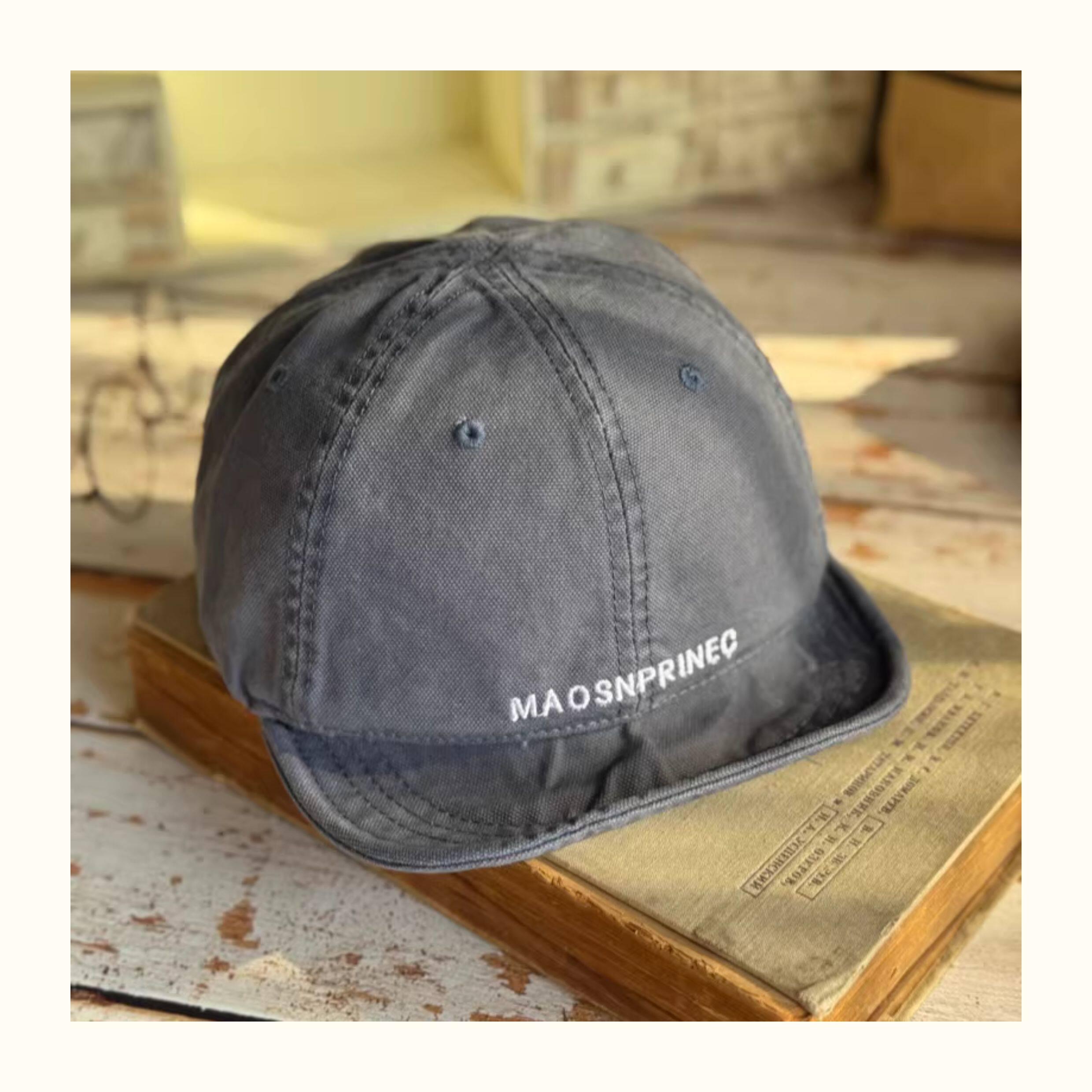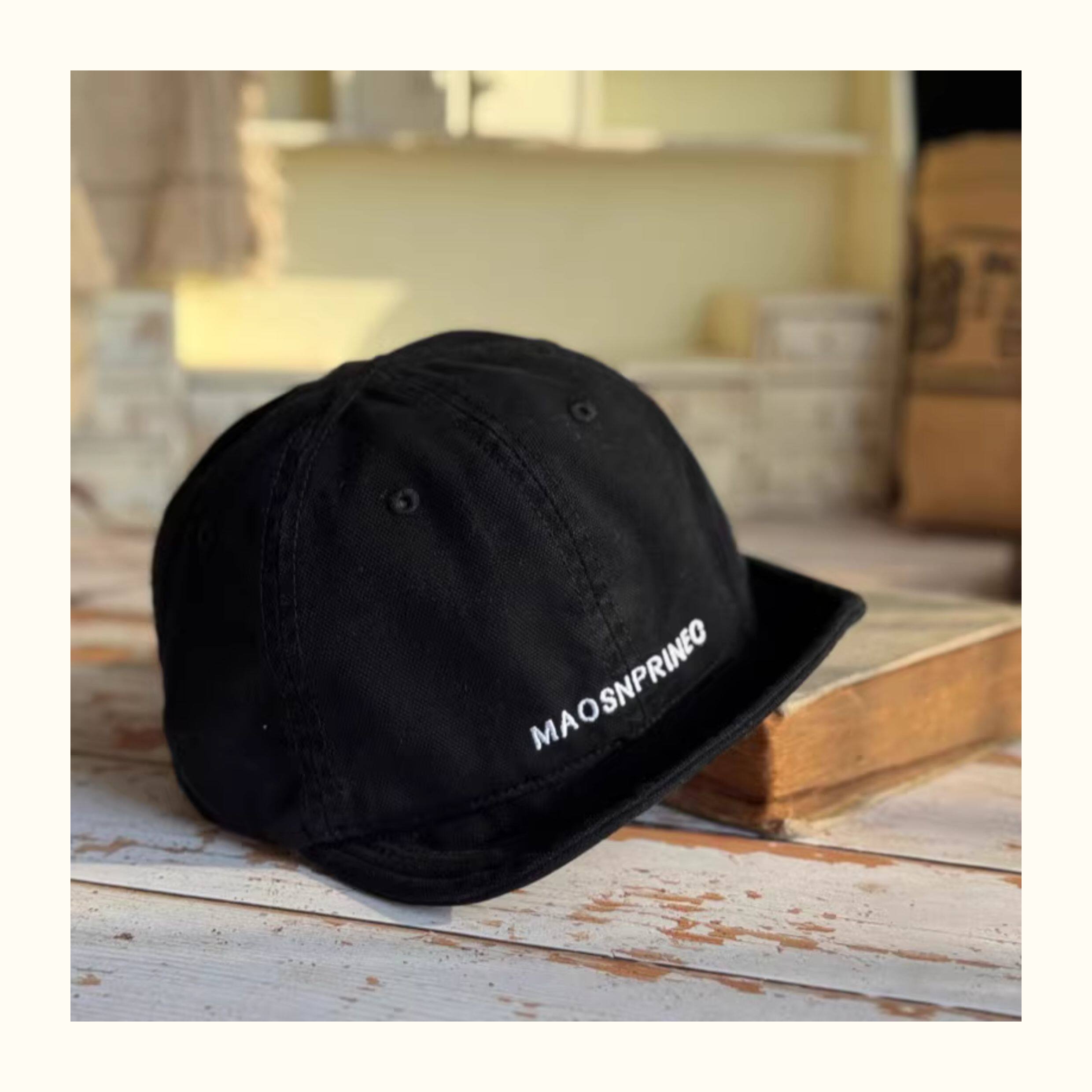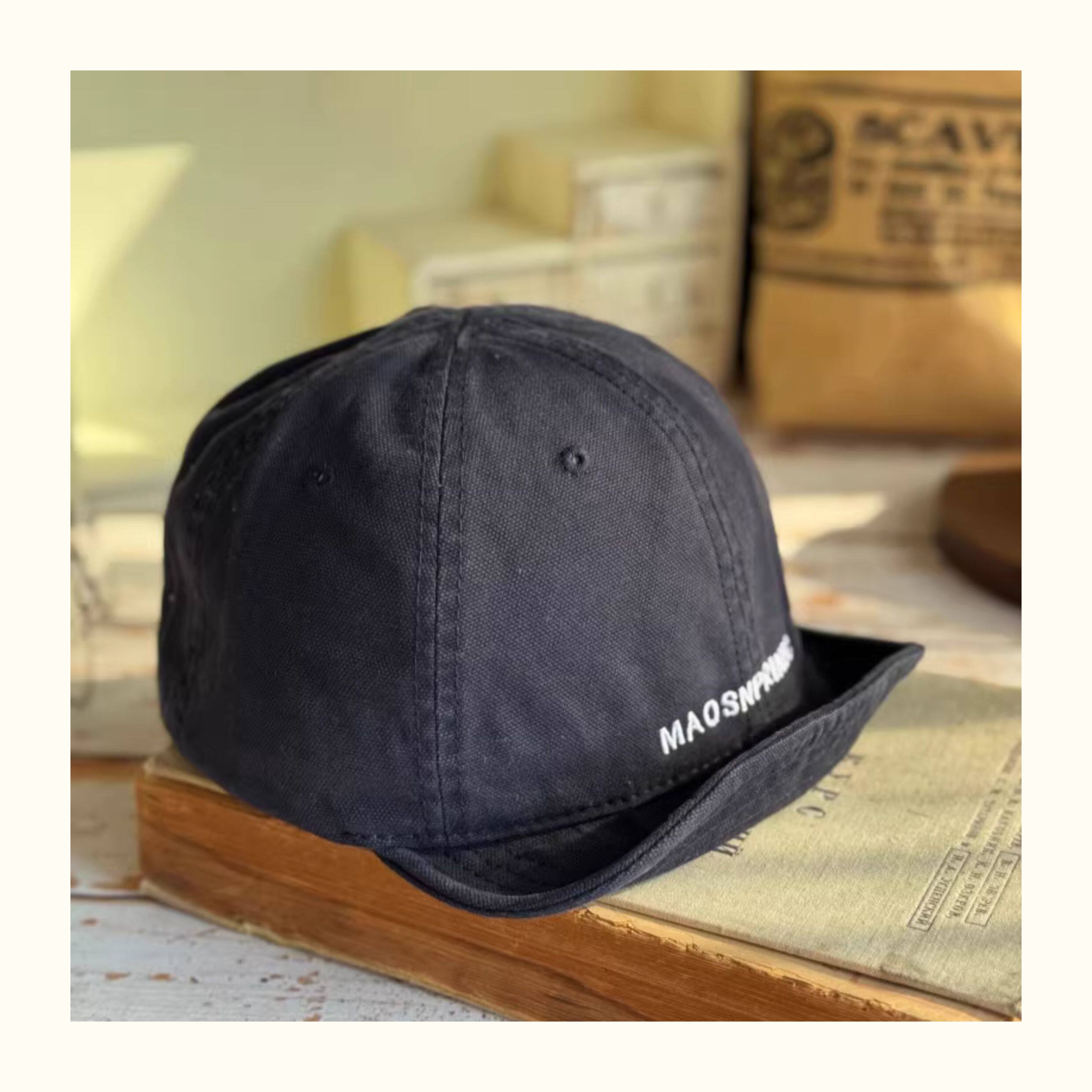 Japanese-Style Vintage Short-Brim Maos Stylish Embroidered Baseball Cap with Soft Brim, Canvas Workwear All-Season Duckbill Cap Trendy