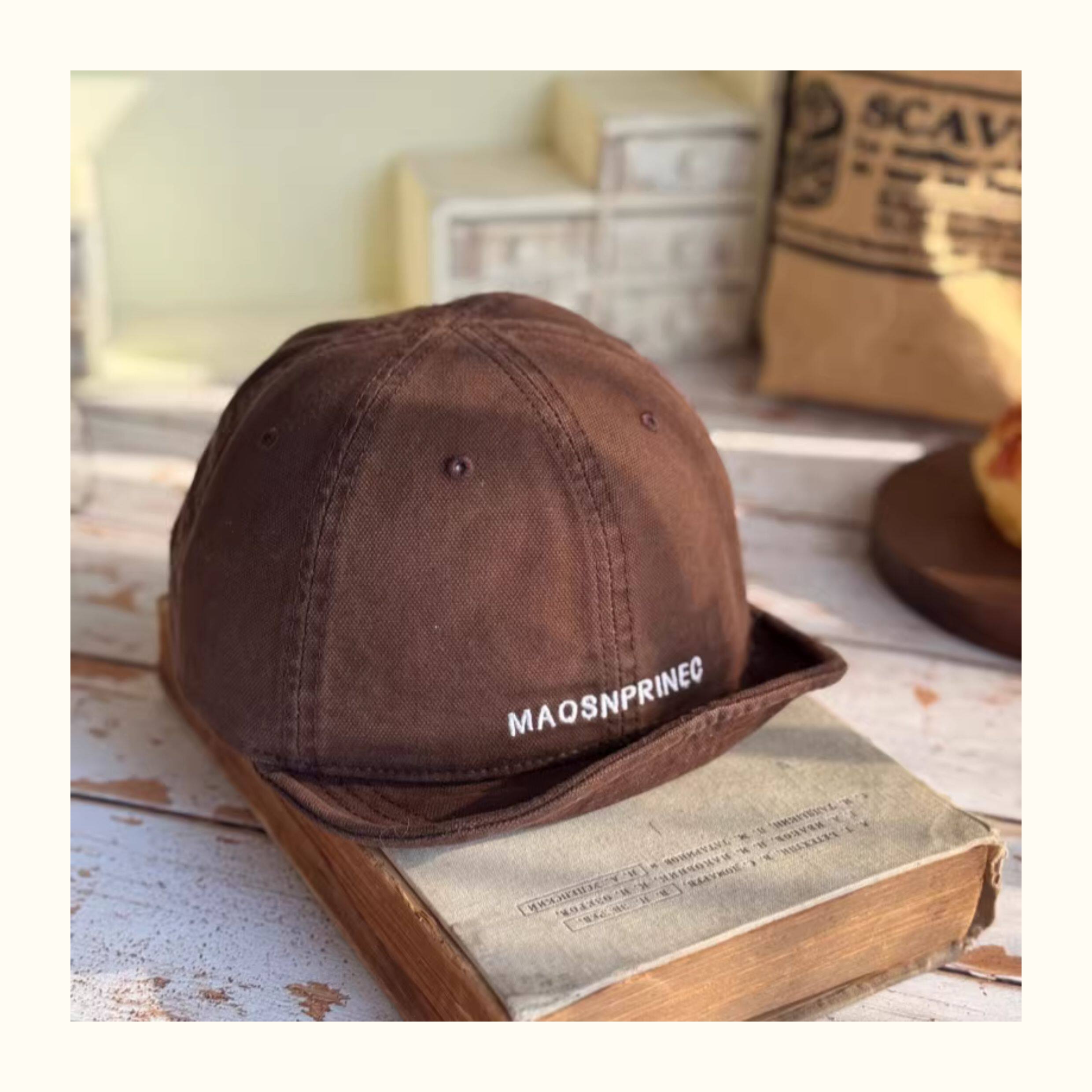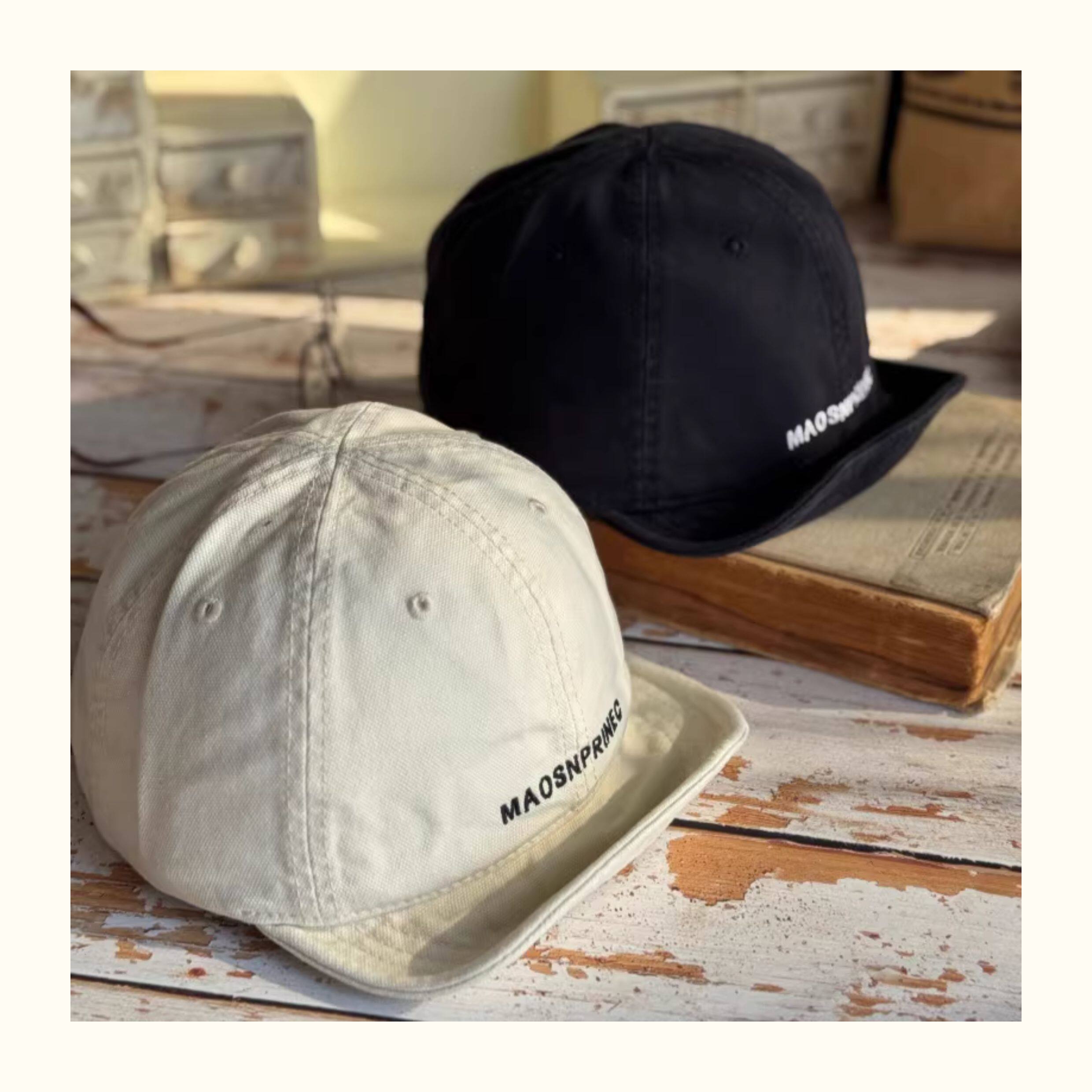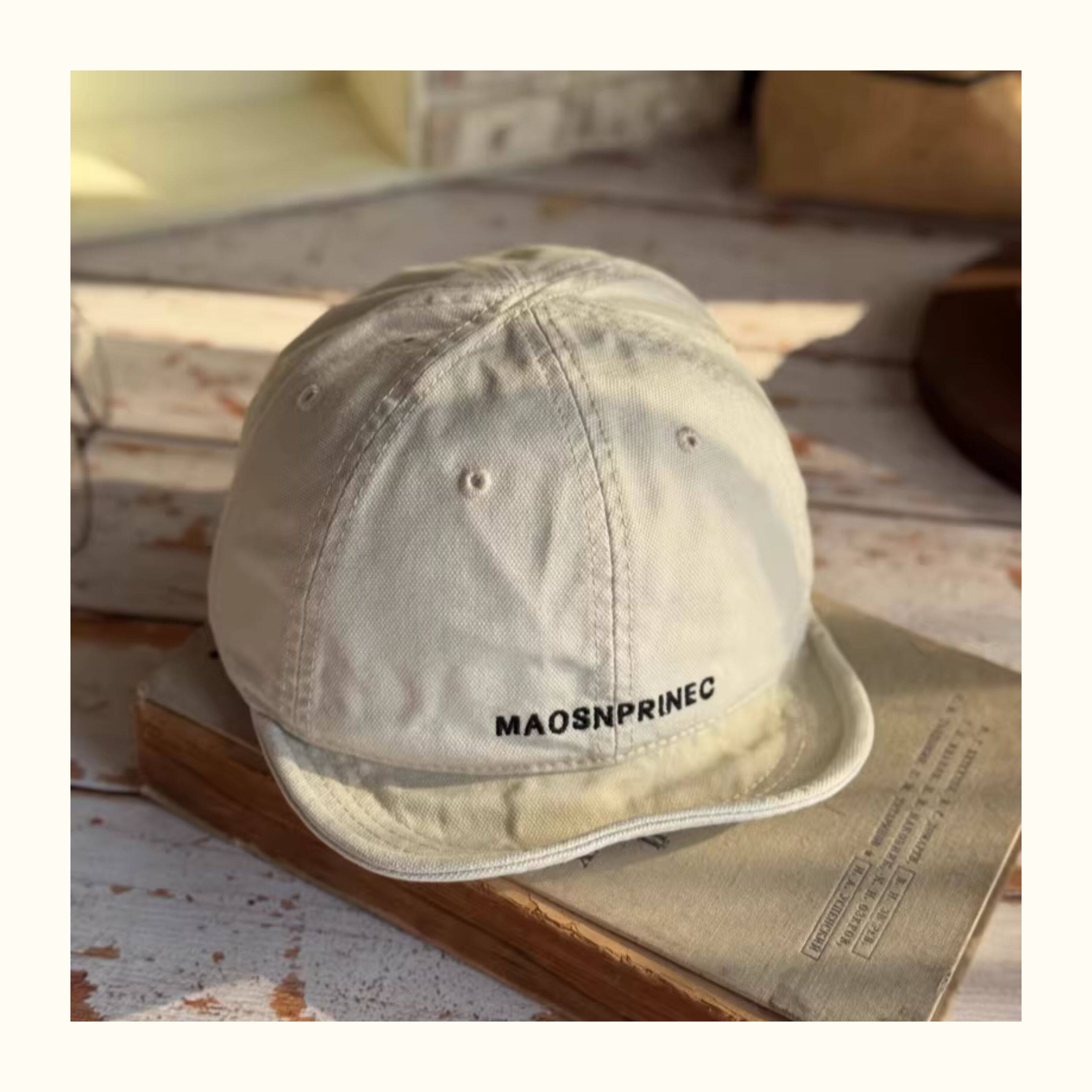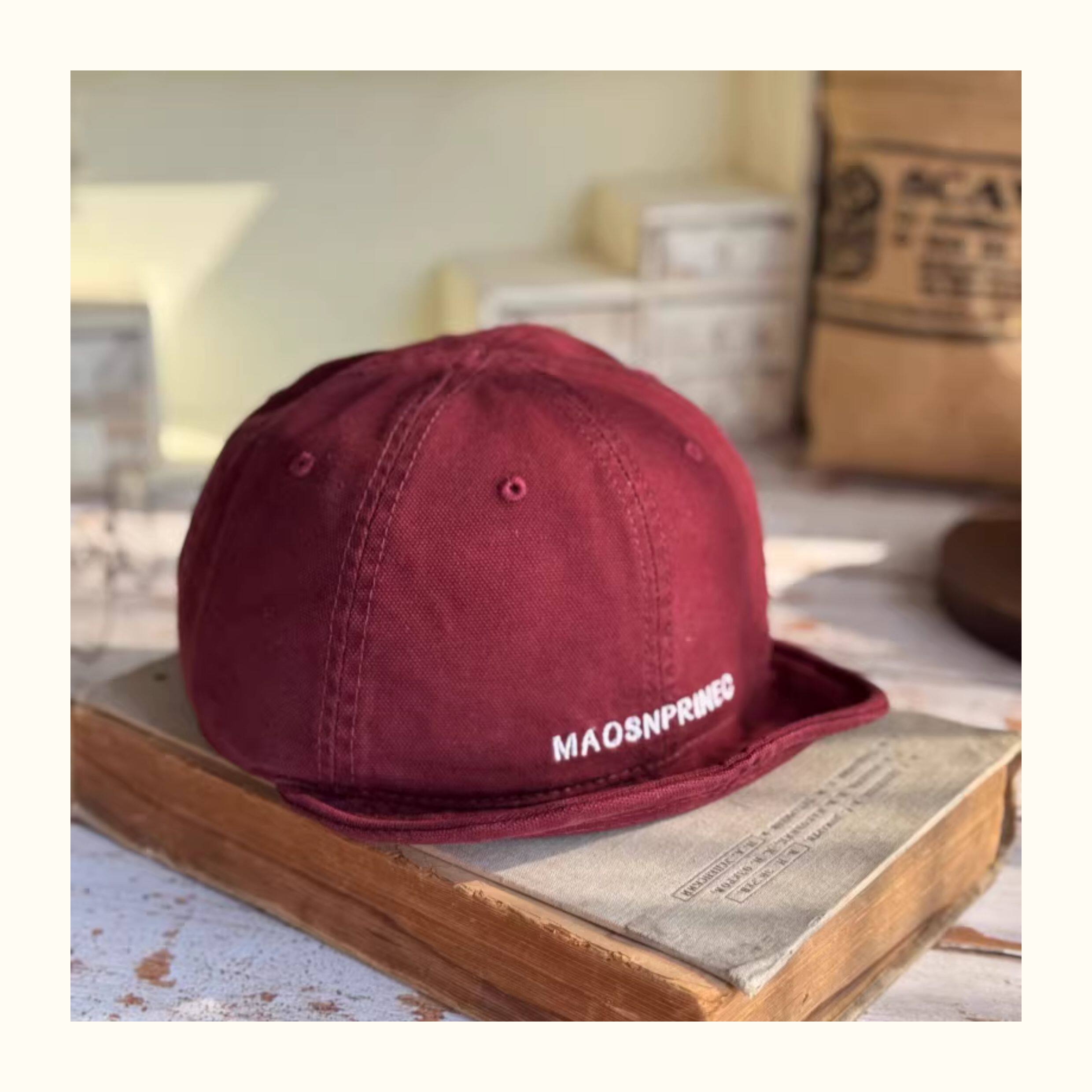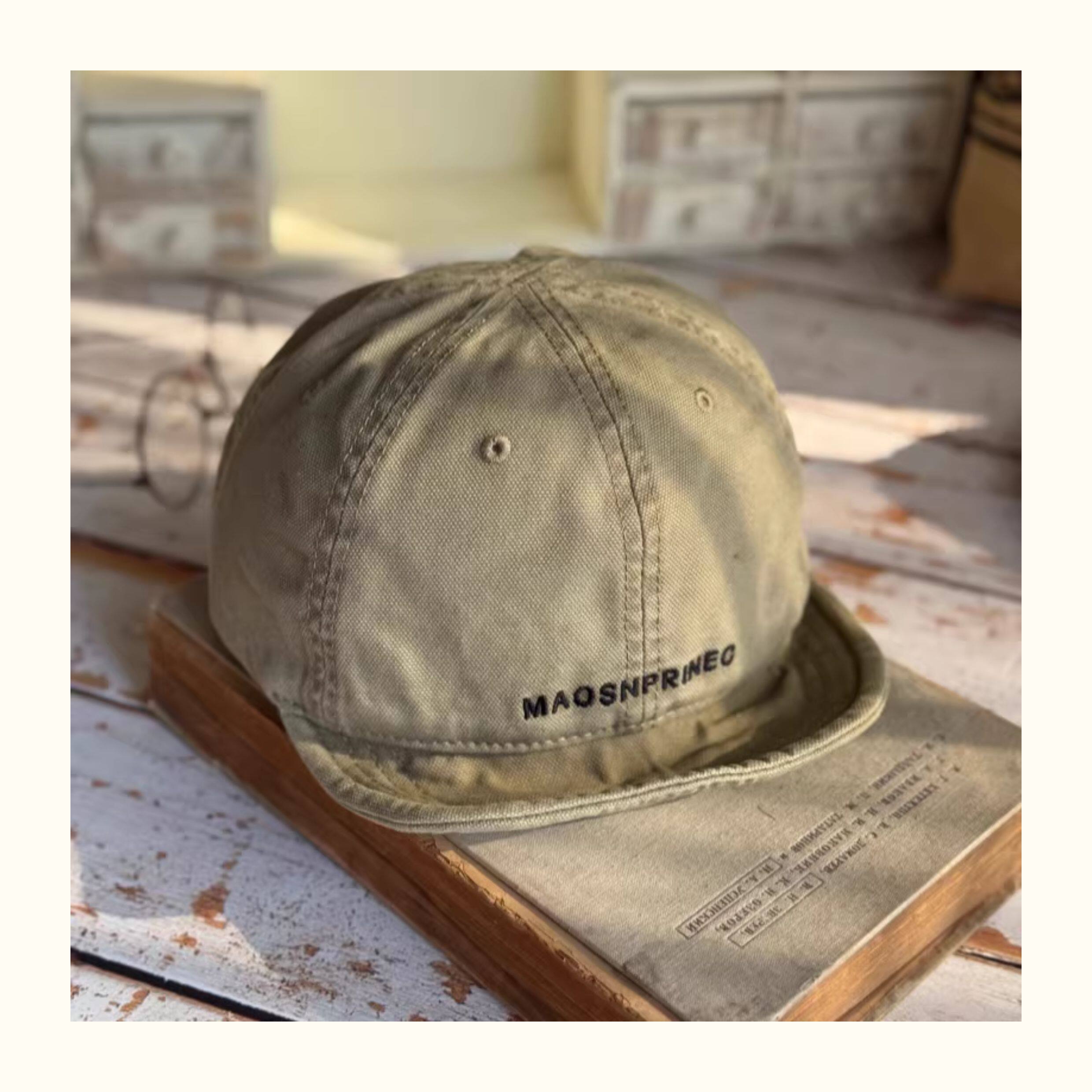Japanese-Style Vintage Short-Brim Maos Stylish Embroidered Baseball Cap with Soft Brim, Canvas Workwear All-Season Duckbill Cap Trendy
