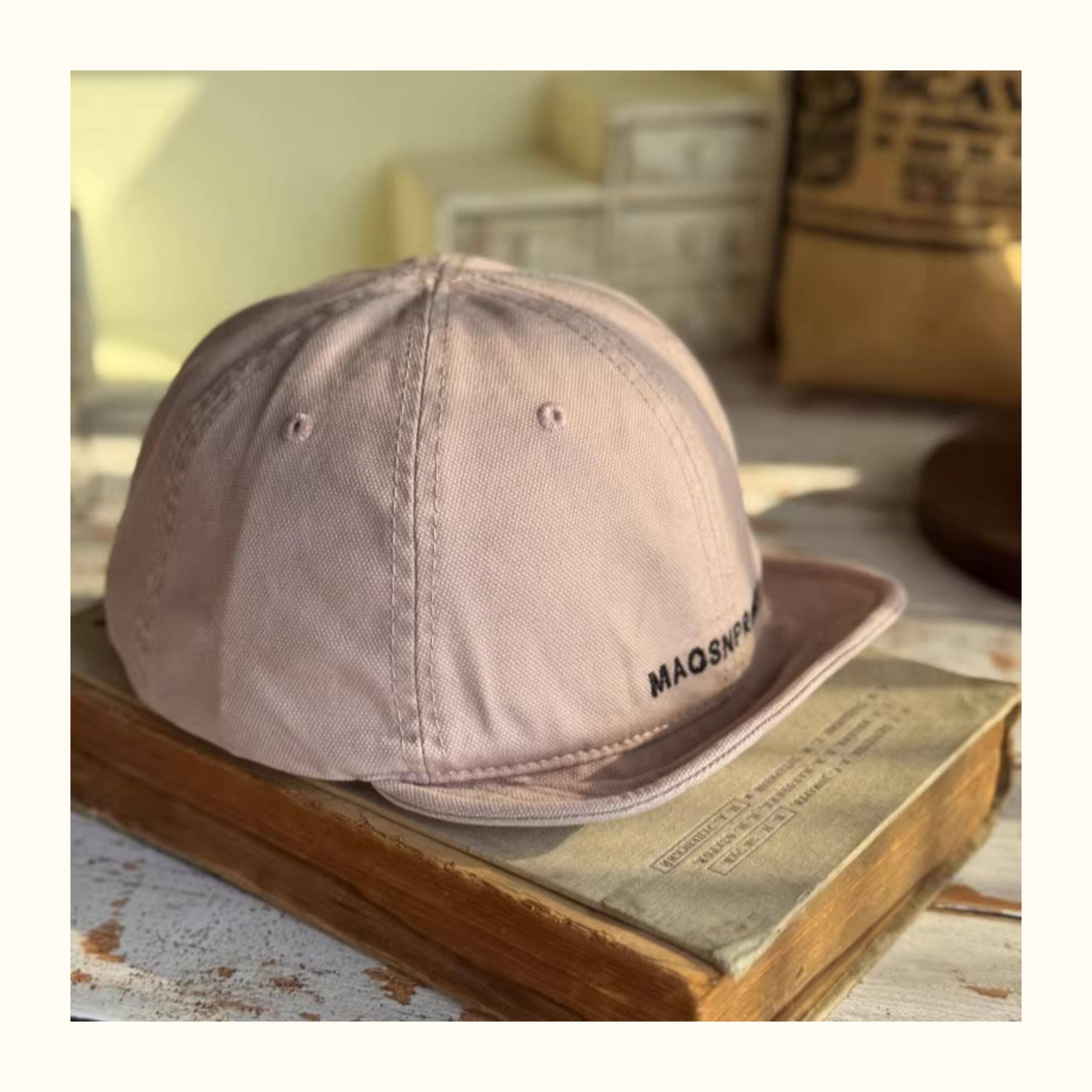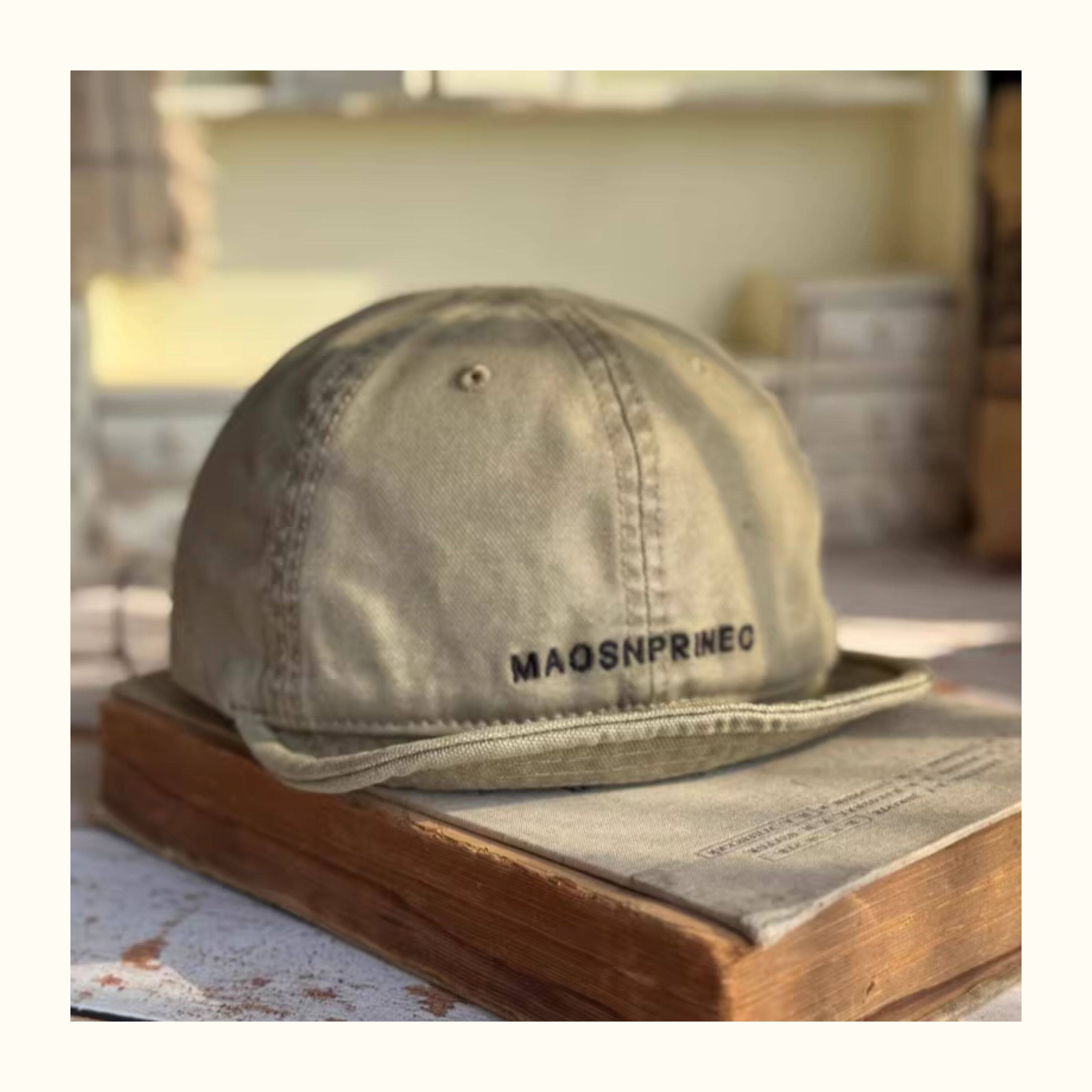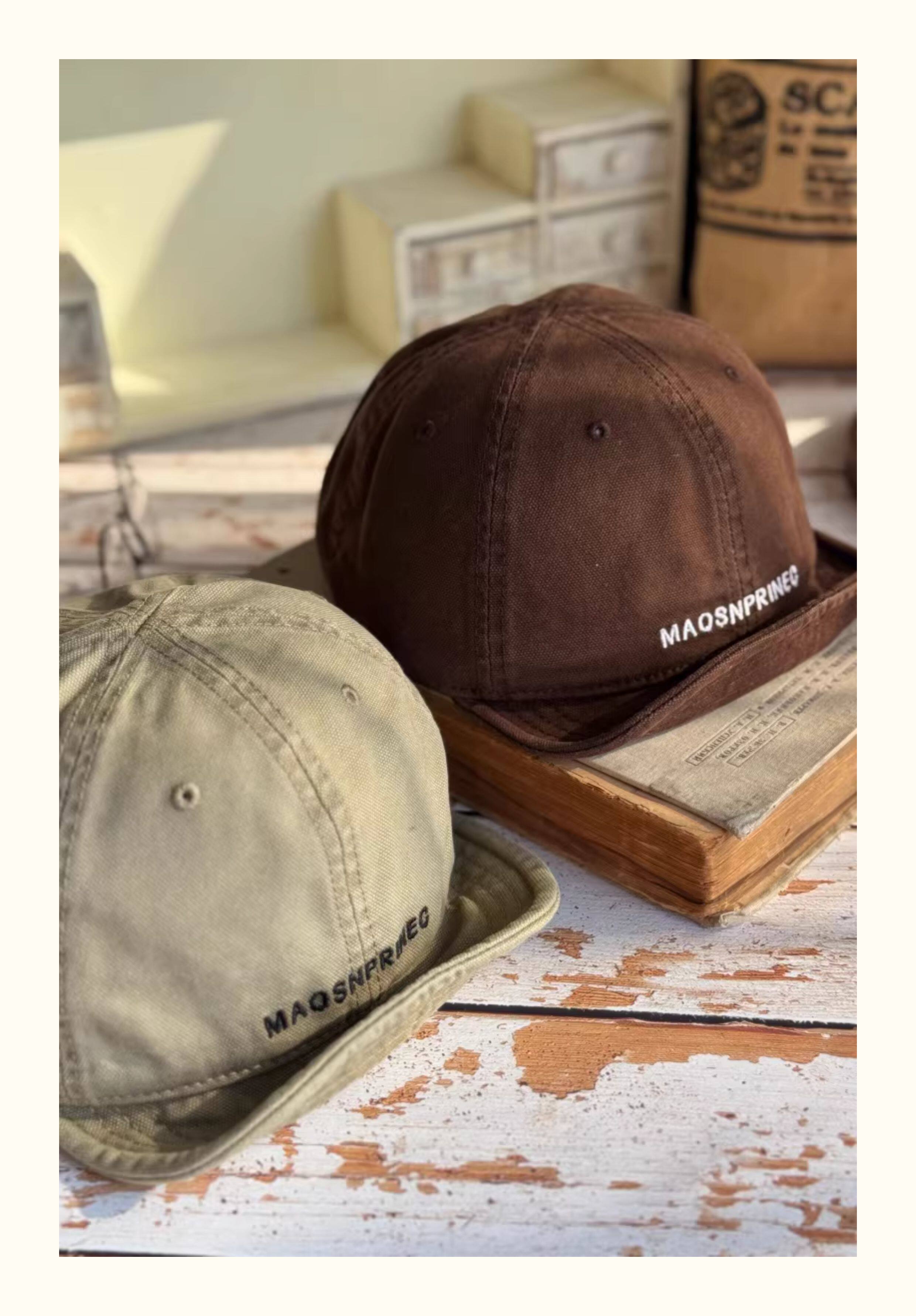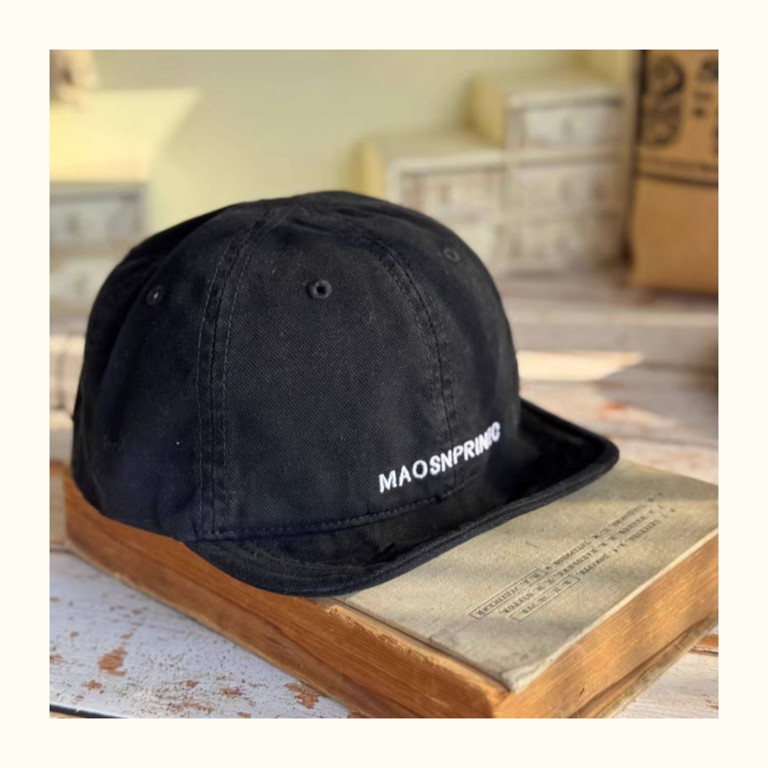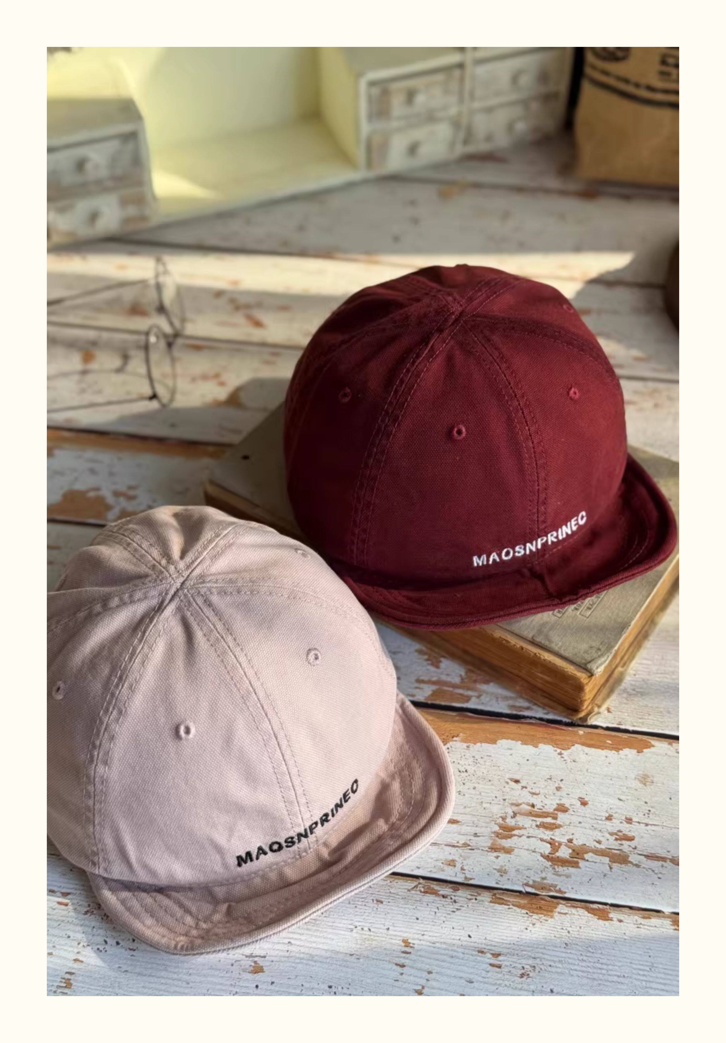Japanese-Style Vintage Short-Brim Maos Stylish Embroidered Baseball Cap with Soft Brim, Canvas Workwear All-Season Duckbill Cap Trendy
