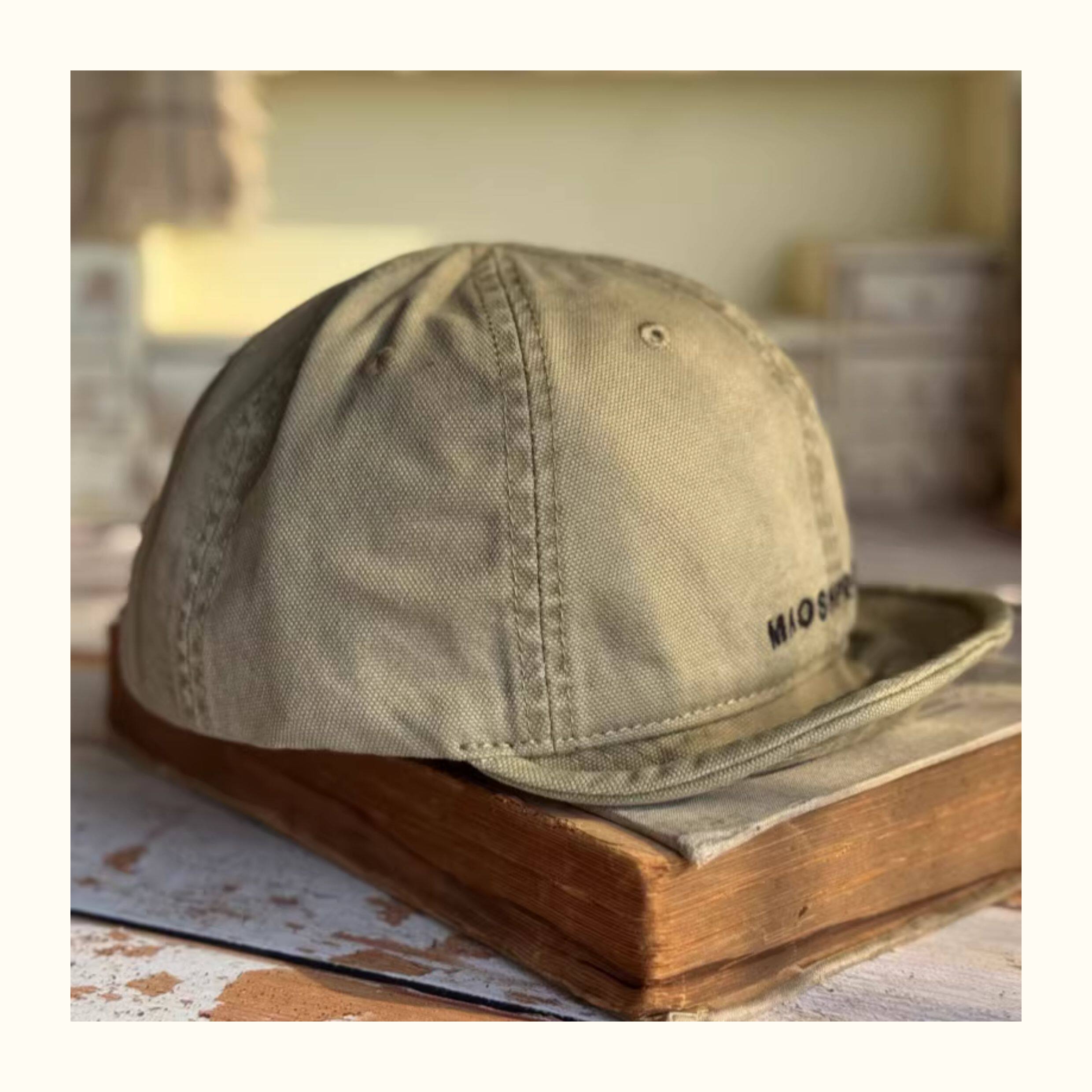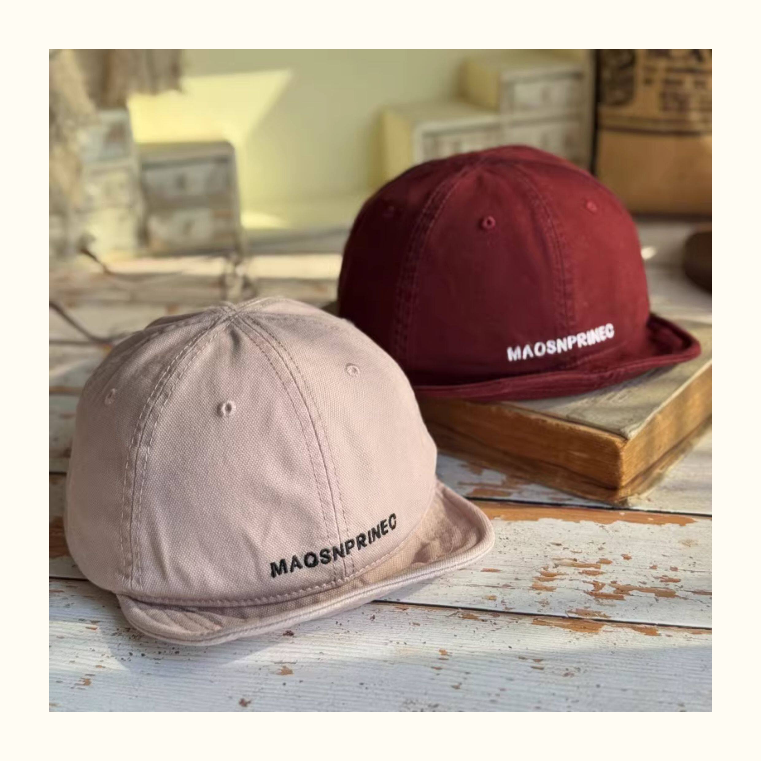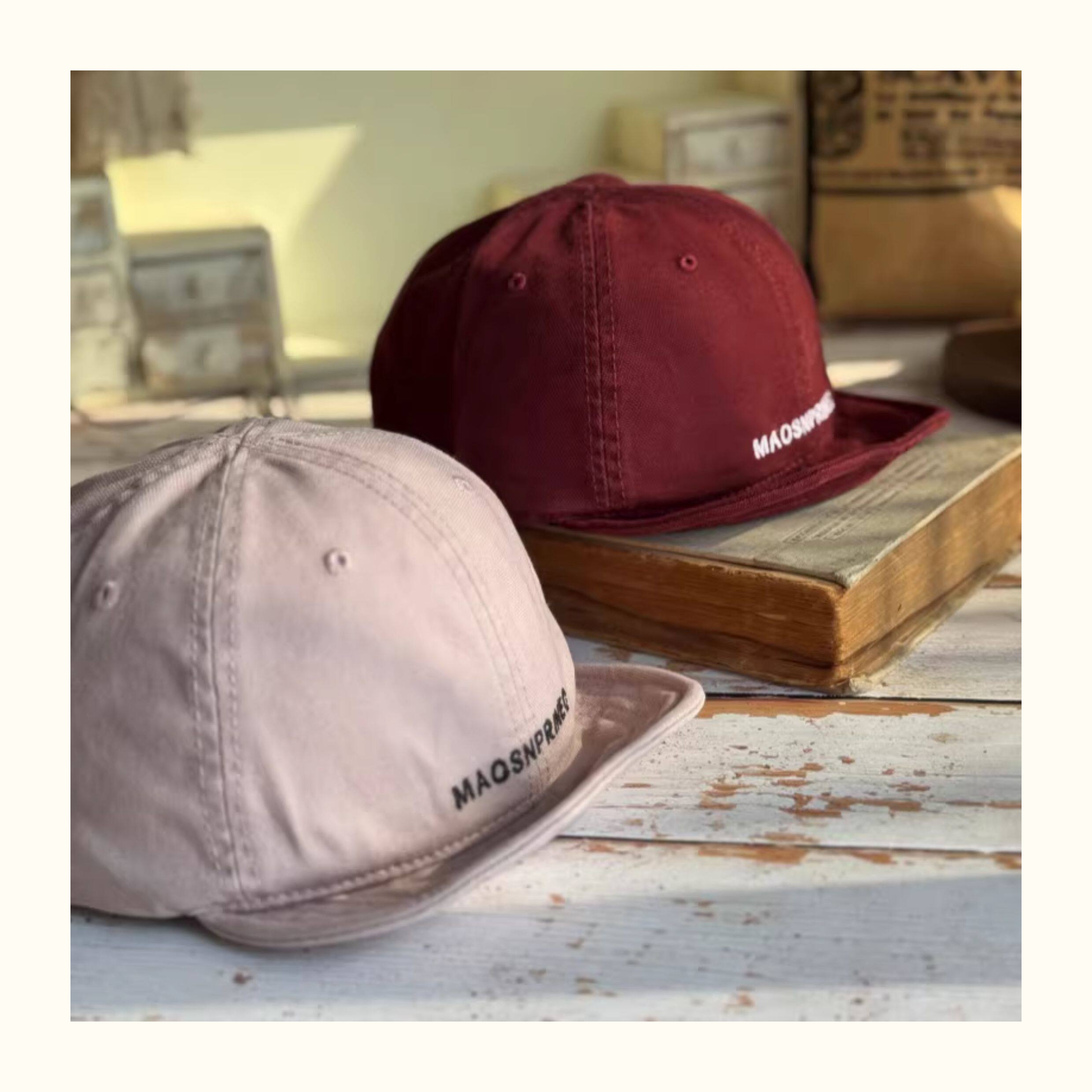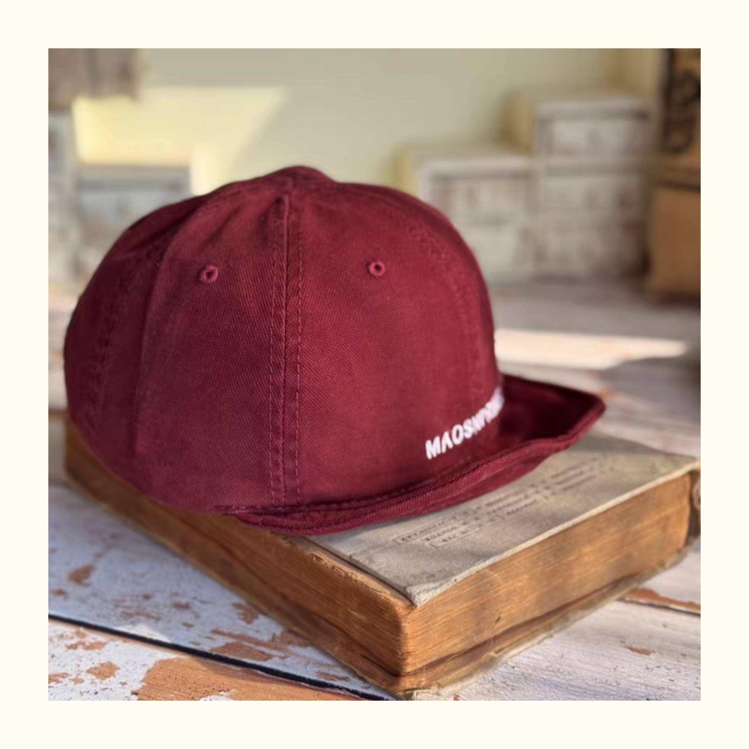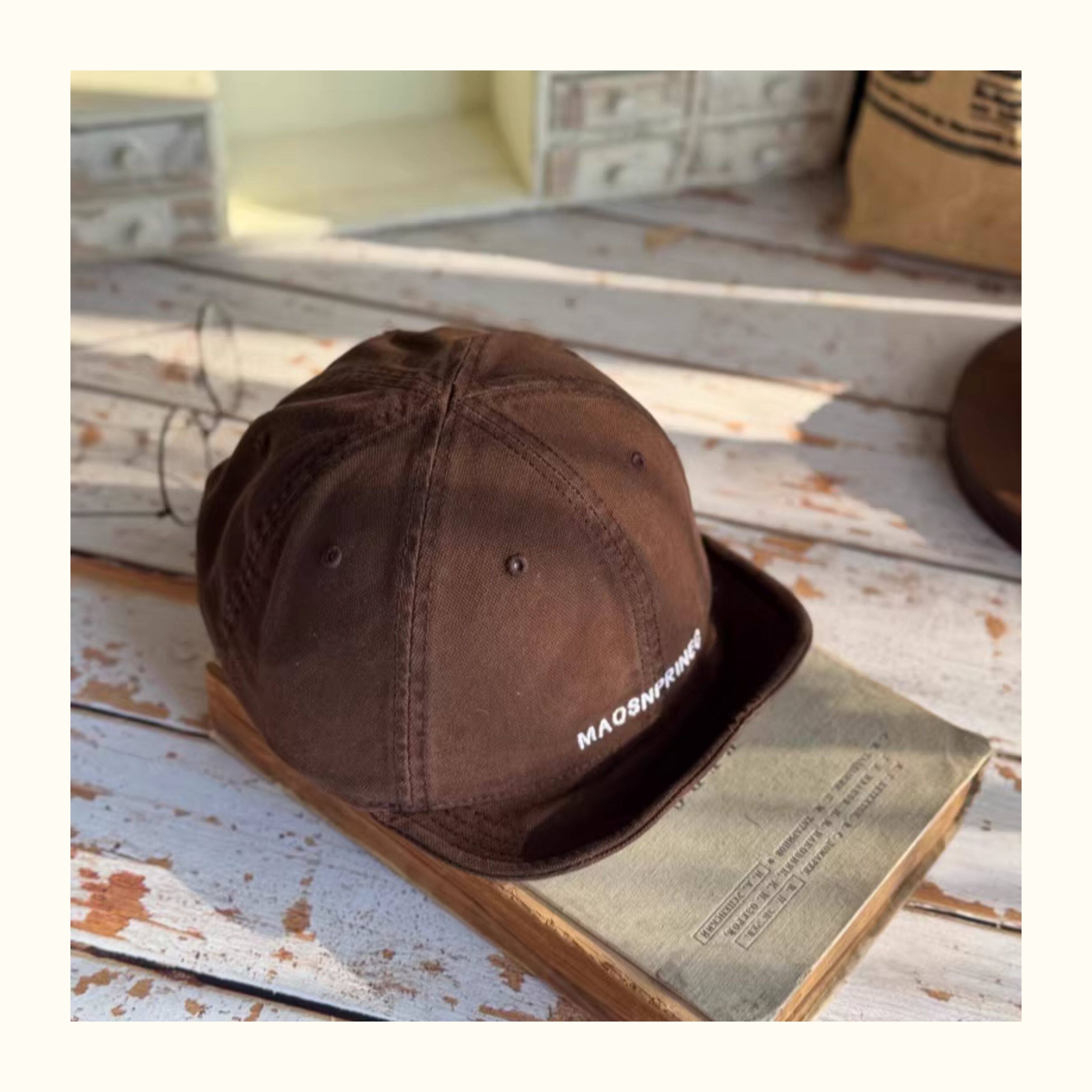 Japanese-Style Vintage Short-Brim Maos Stylish Embroidered Baseball Cap with Soft Brim, Canvas Workwear All-Season Duckbill Cap Trendy