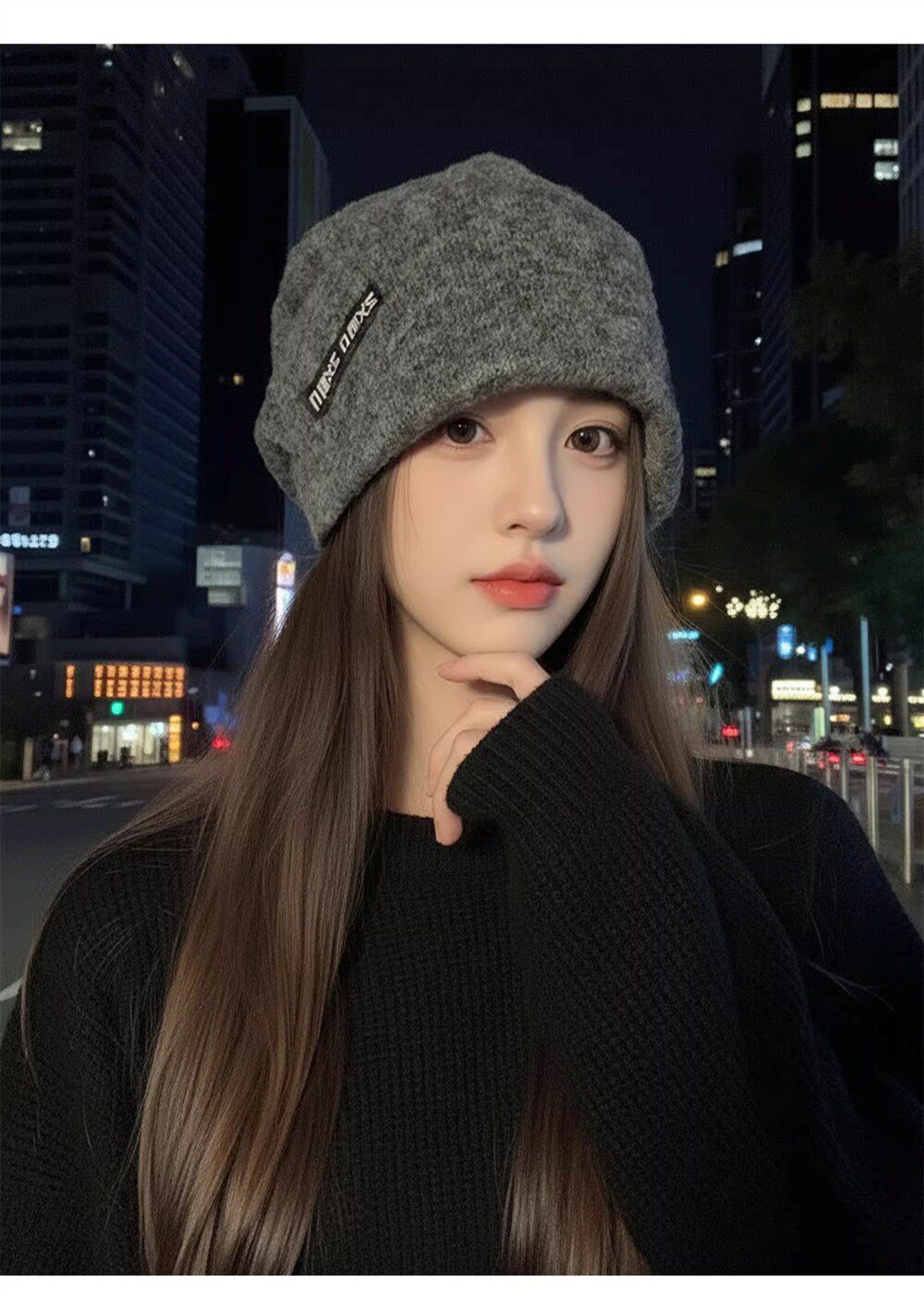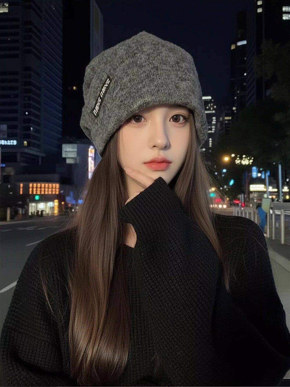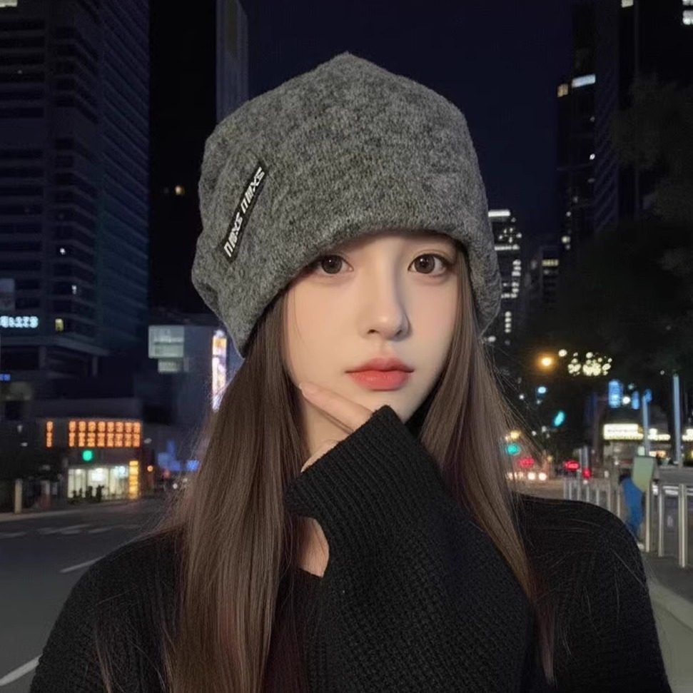 Korean style fashionable knitted pile hat for girls in autumn and winter, versatile cold-proof and warm woolen toe-cap cold hat that looks smaller