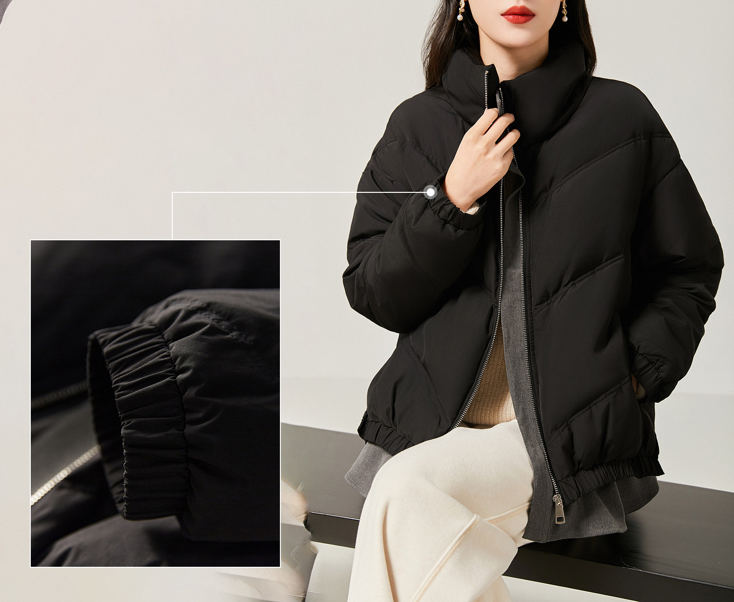 髙密羽绒面料,手感软糯,自带低调光泽感